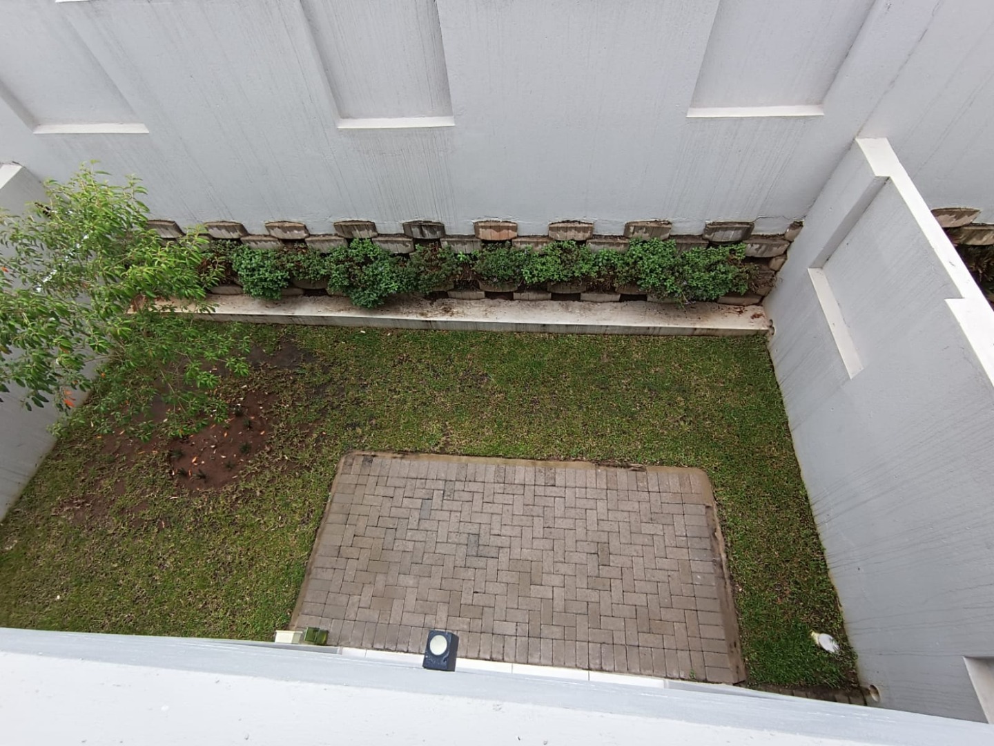 Outdoor living is a delight with a private paved patio, perfect for al fresco entertaining or quiet relaxation, leading to a small, manicured garden. Residents also enjoy access to a shared swimming pool, providing a refreshing escape within the secure confines of the complex. A single garage and an additional parking space offer convenience, while the complex benefits from a security post and fibre connectivity, ensuring peace of mind and modern living.