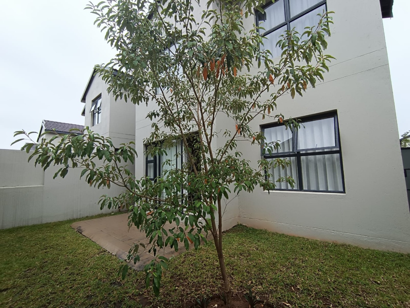 Discover an exquisite modern townhouse nestled within a prestigious complex in Nelspruit Ext 37, offering a sophisticated lifestyle in the heart of Nelspruit, South Africa. This residence immediately captivates with its contemporary architectural lines, featuring a light grey exterior complemented by striking black-framed windows and sliding doors, exuding an undeniable kerb appeal.