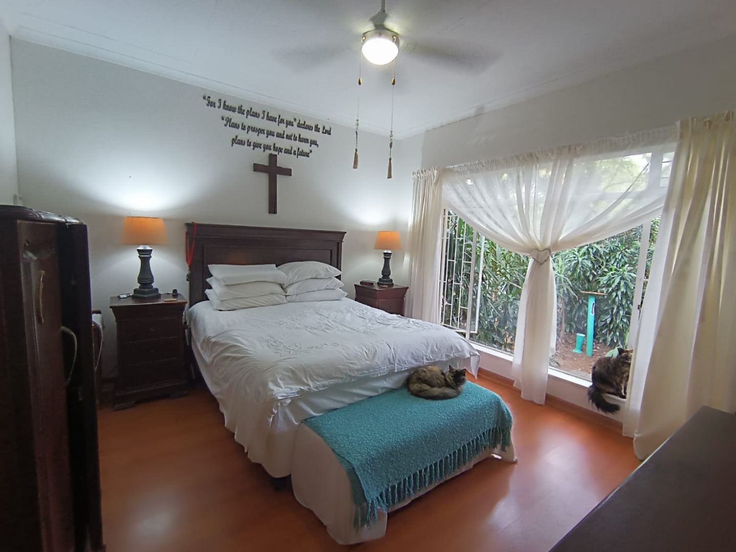 Nestled within the tranquil suburban enclave of West Acres Ext 7, Nelspruit, this distinguished residence presents an impressive façade, hinting at the refined living within. A private, paved driveway leads to an integrated double garage, offering ample secure parking. The property is enveloped by mature trees and lush greenery, creating a secluded oasis on a generous 1123 sqm erf, fully walled for ultimate privacy. A private patio invites al fresco entertaining, overlooking a magnificent, lush garden and a sparkling swimming pool, promising endless leisure and relaxation. This outdoor haven, where pets are allowed, is perfect for families seeking a harmonious blend of indoor comfort and natural beauty. Step inside to discover an expansive interior spanning 1039 sqm, where an inviting entrance hall sets the tone for sophisticated living. The open-plan design seamlessly connects the spacious lounge, a dedicated dining room, and a versatile family TV room, all bathed in natural light. Pristine tiled flooring flows throughout, leading to a well-appointed kitchen, ready to inspire culinary pursuits. This home offers an exceptional canvas for bespoke customisation, blending eclectic charm with functional elegance. The residence boasts four generously proportioned bedrooms, providing serene sanctuaries for rest and rejuvenation. Two luxurious bathrooms, including a private ensuite, cater to comfort and convenience, complemented by an additional guest toilet for visitors. Each space is designed to offer privacy and tranquility, ensuring a harmonious living experience. Ensuring utmost peace of mind, the property is equipped with an advanced alarm system and robust burglar bars. Modern living is further enhanced by high-speed fibre connectivity, catering to all contemporary digital needs. This secure and connected environment offers a truly aspirational lifestyle in a sought-after suburban setting.
