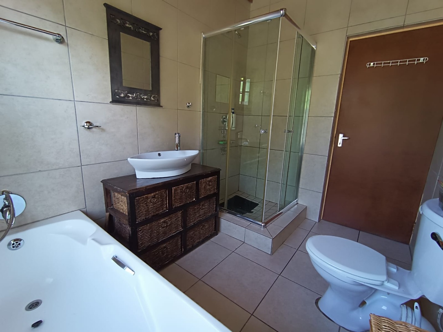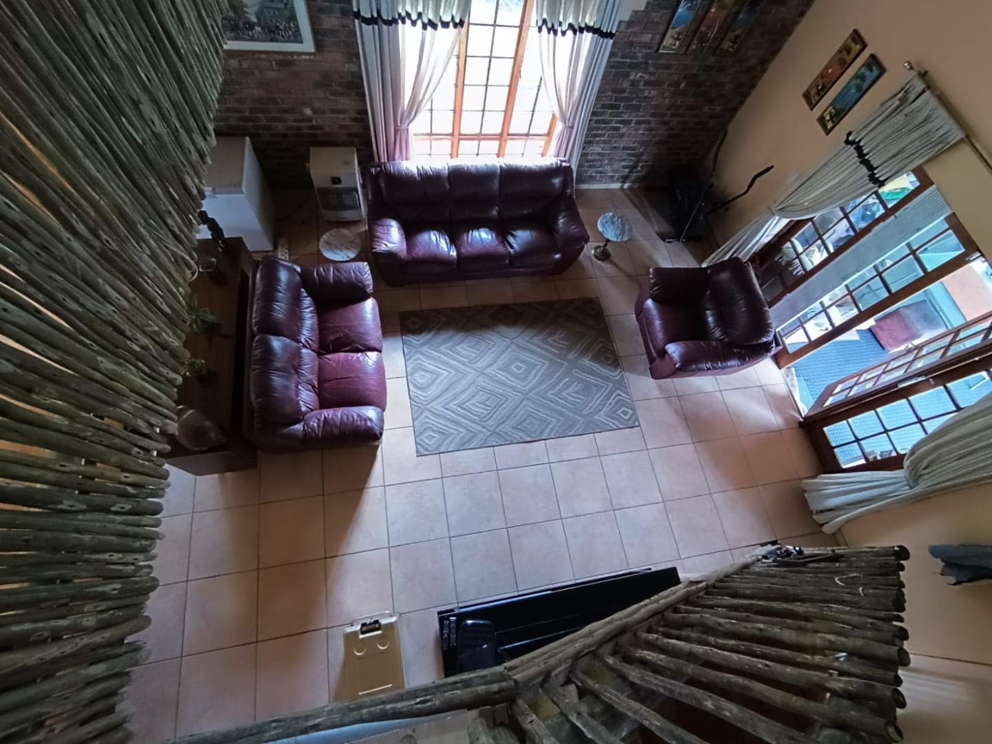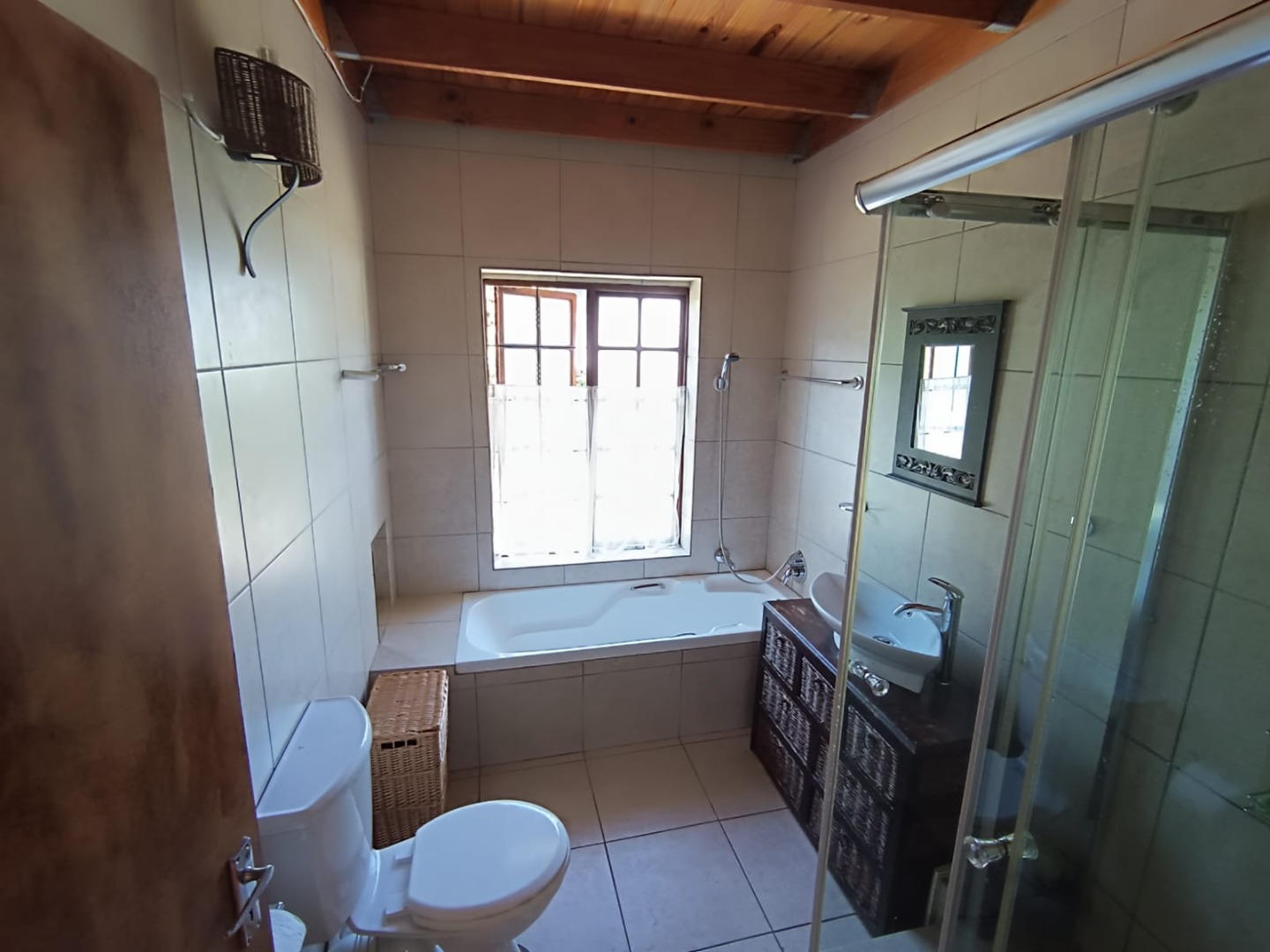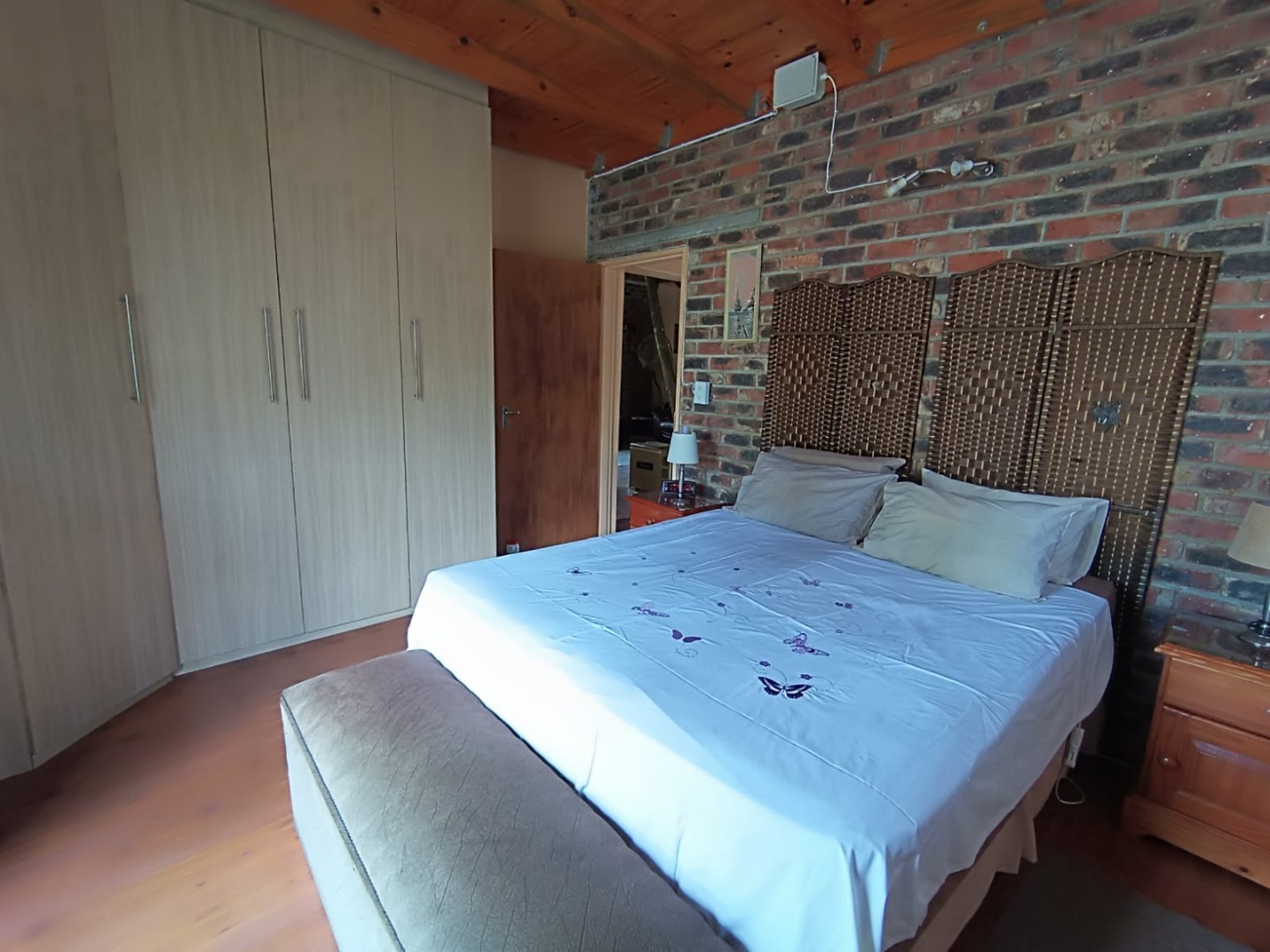 Outdoor living is a highlight, with multiple spaces to embrace the South African climate. A spacious deck and patio provide ideal spots for entertaining or unwinding, while the lapa and built-in braai promise memorable gatherings. The property boasts a well-maintained garden with an irrigation system, offering scenic views and a serene backdrop. Practical amenities include a laundry room, ample storage, two garages, and four additional parking spaces, ensuring convenience for residents and guests.