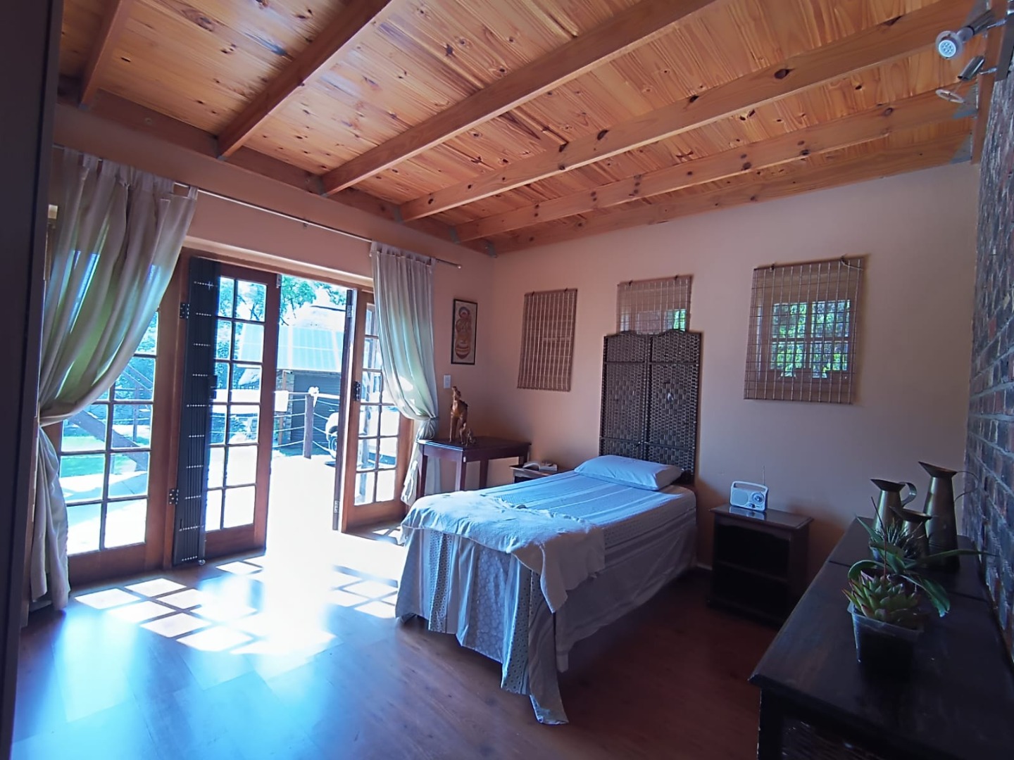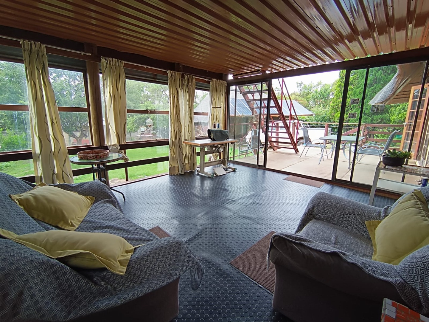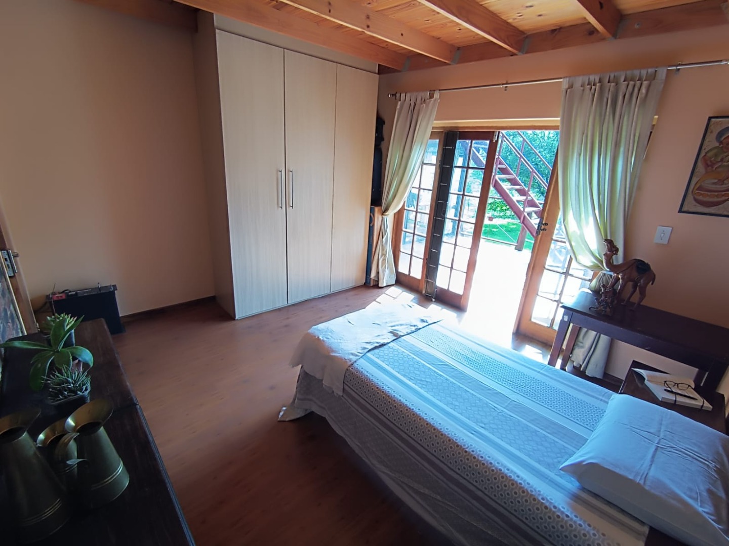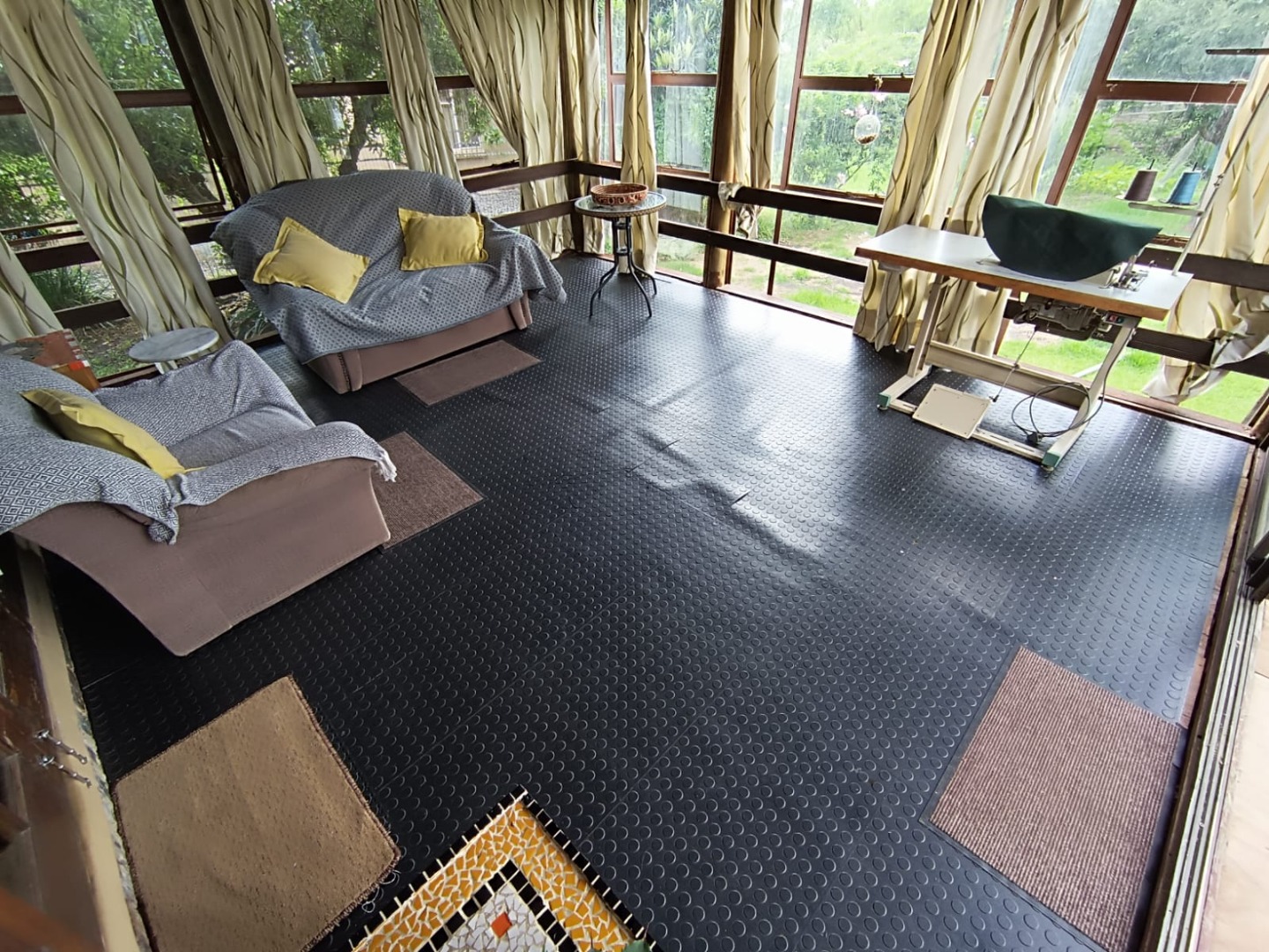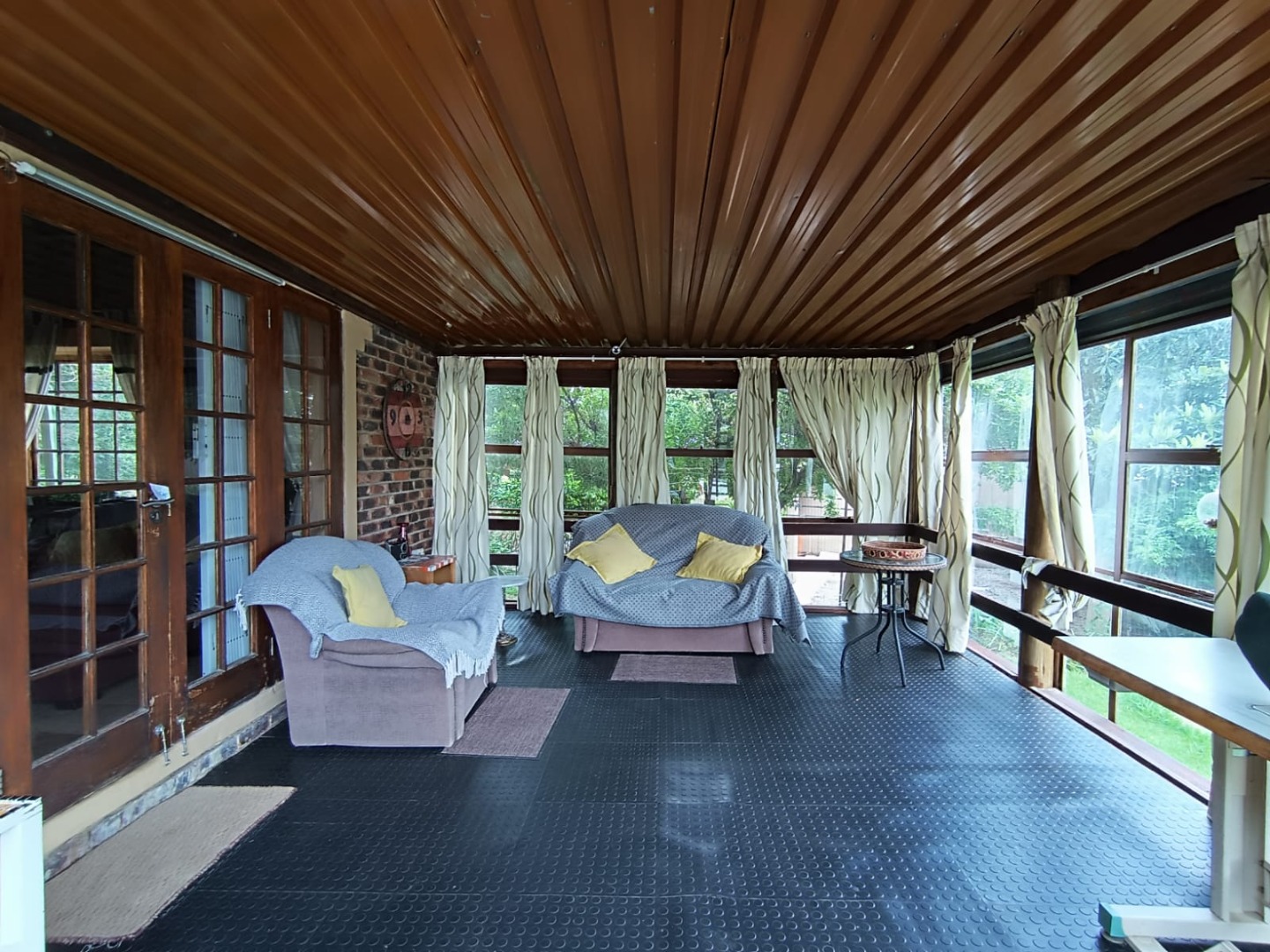Outdoor living is a highlight, with multiple spaces to embrace the South African climate. A spacious deck and patio provide ideal spots for entertaining or unwinding, while the lapa and built-in braai promise memorable gatherings. The property boasts a well-maintained garden with an irrigation system, offering scenic views and a serene backdrop. Practical amenities include a laundry room, ample storage, two garages, and four additional parking spaces, ensuring convenience for residents and guests.