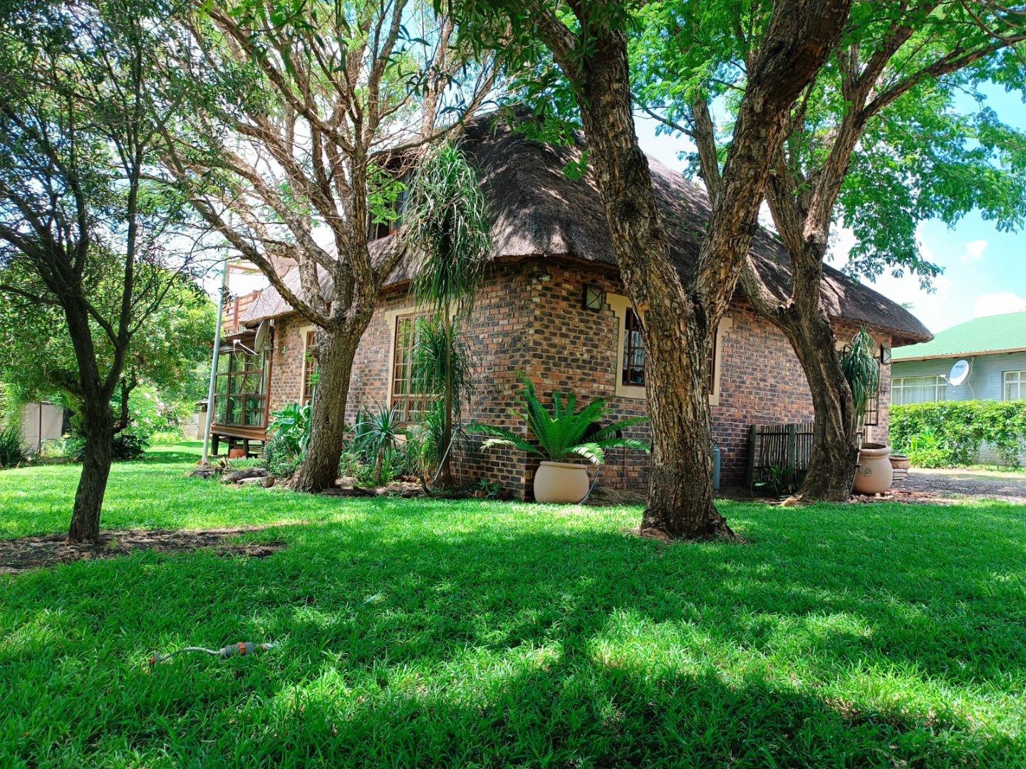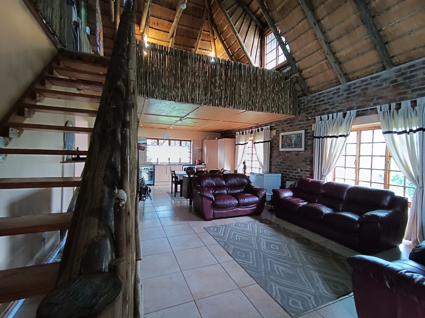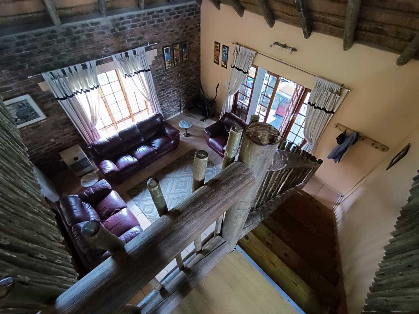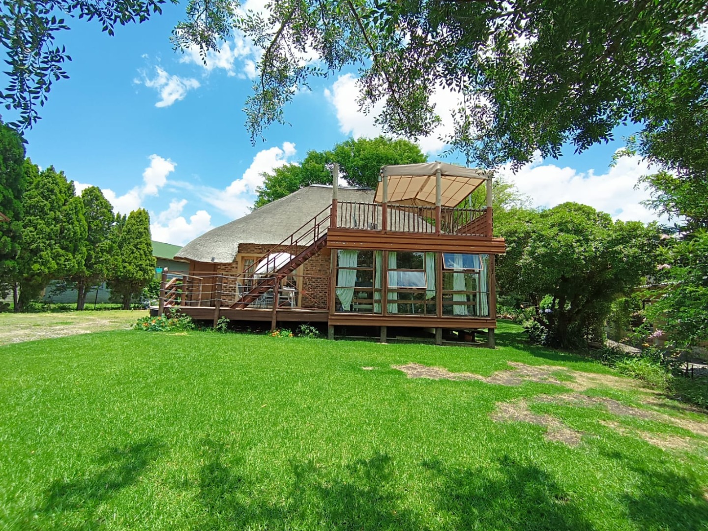 Discover a charming holiday home nestled in the tranquil setting of Oranjeville, offering a unique blend of rustic appeal and comfortable living. This delightful property, set on a generous 1115 sqm erf with a floor size of 285 sqm, immediately captivates with its distinctive thatched roof and sturdy brick exterior, exuding a timeless character that blends seamlessly with the lush natural surroundings.