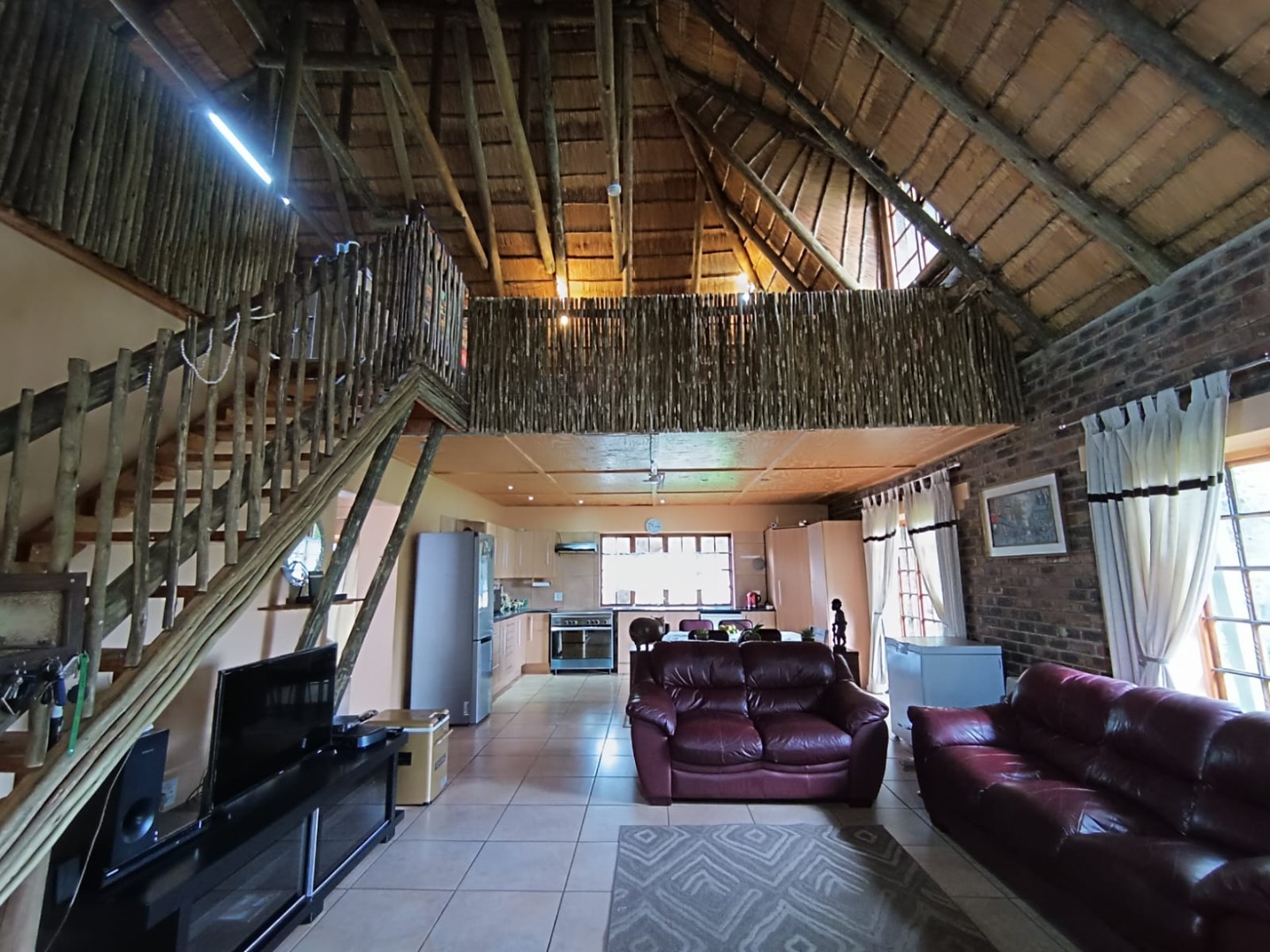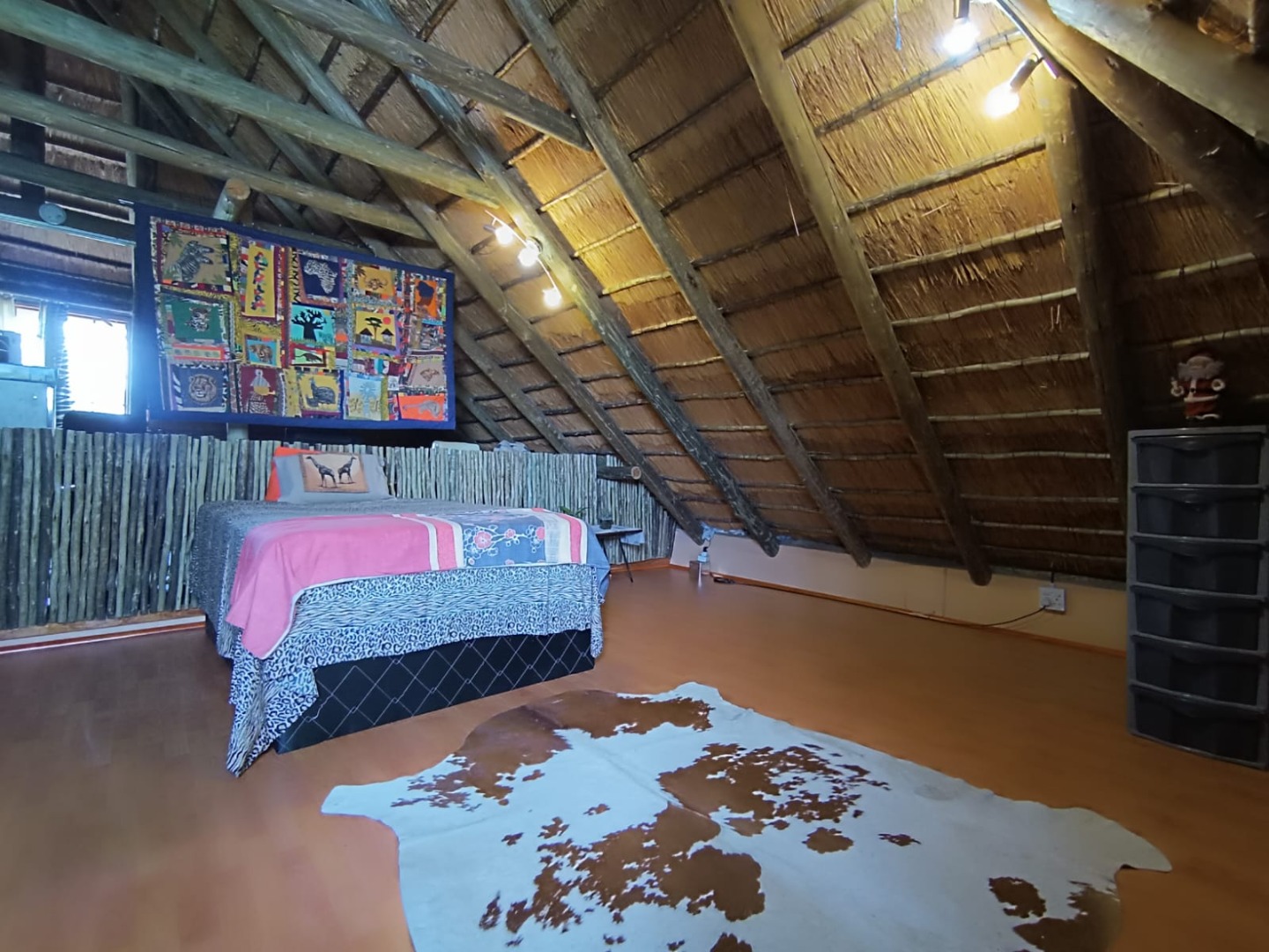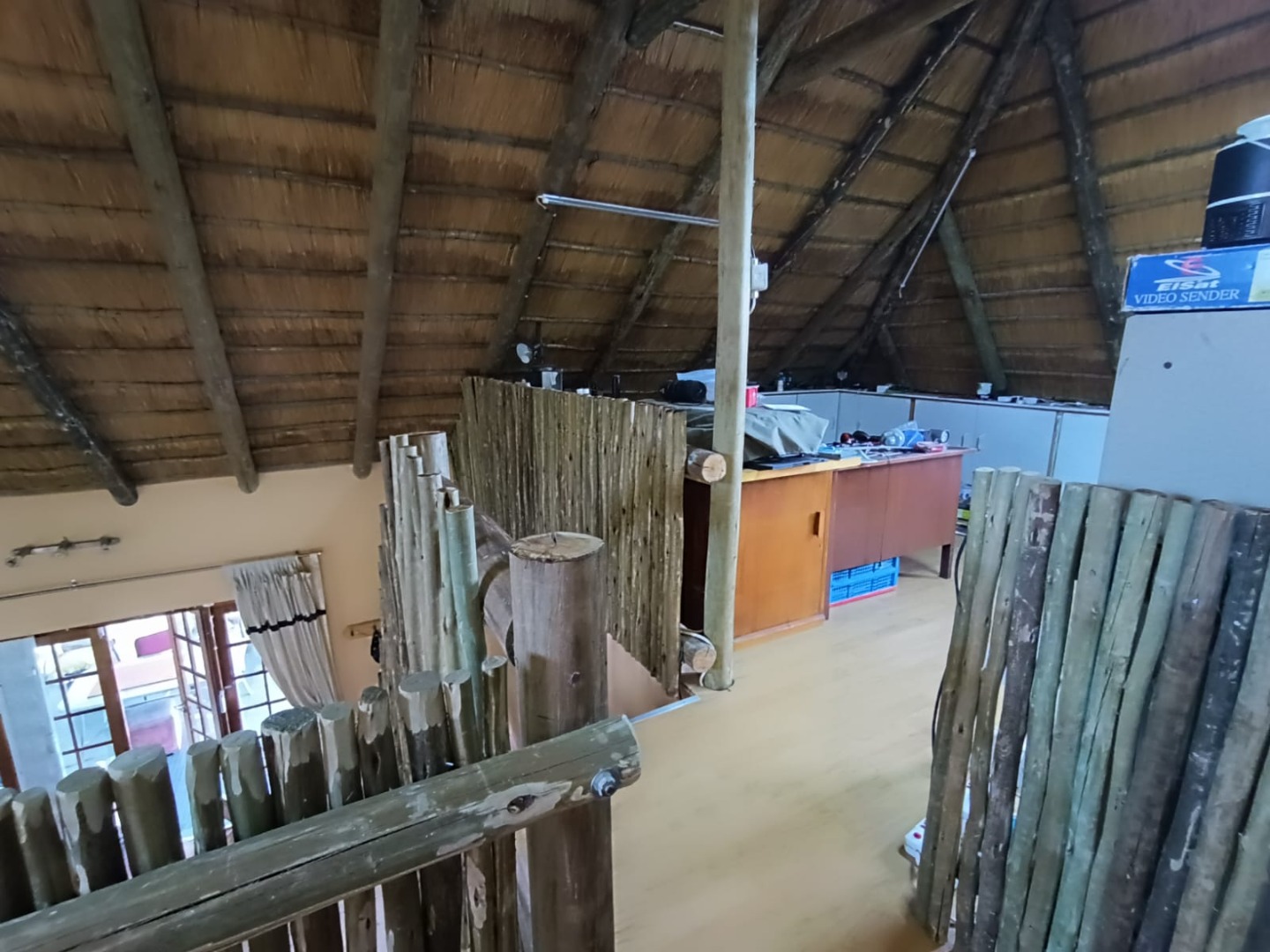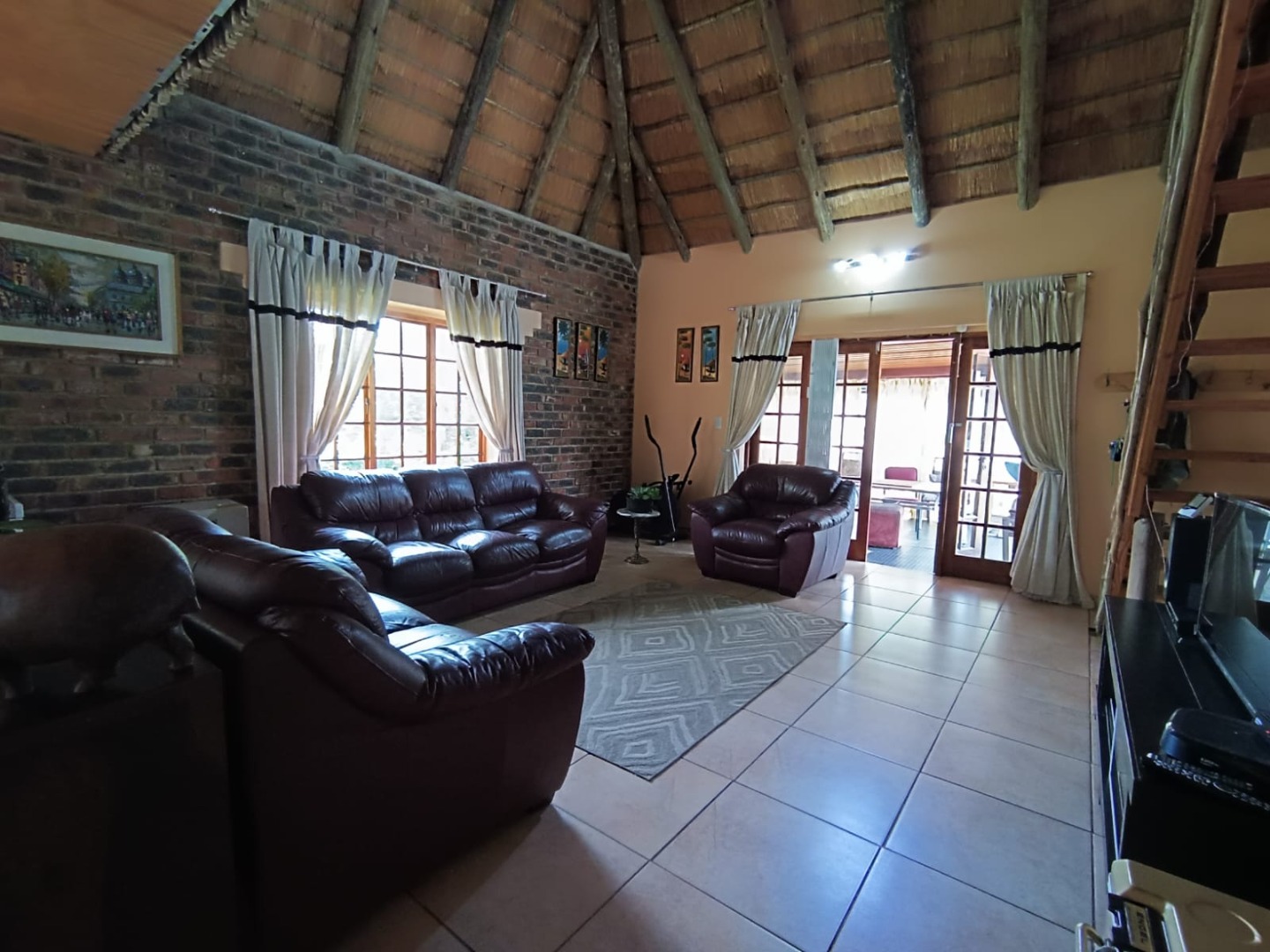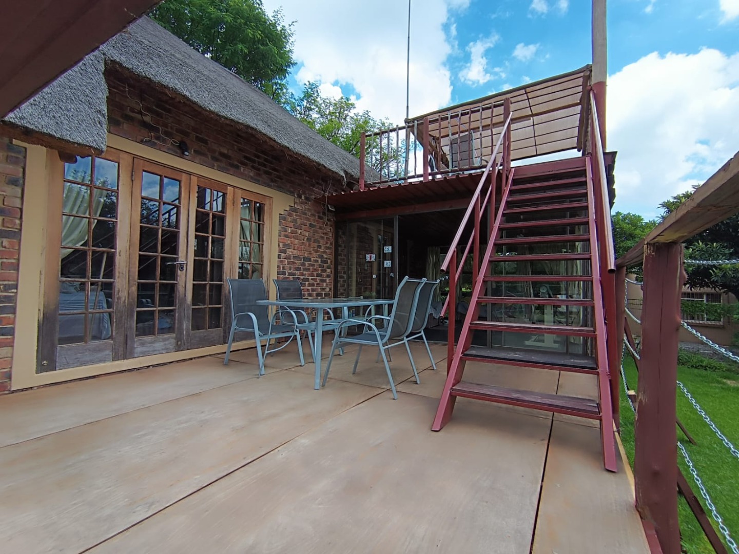 Discover a charming holiday home nestled in the tranquil setting of Oranjeville, offering a unique blend of rustic appeal and comfortable living. This delightful property, set on a generous 1115 sqm erf with a floor size of 285 sqm, immediately captivates with its distinctive thatched roof and sturdy brick exterior, exuding a timeless character that blends seamlessly with the lush natural surroundings.