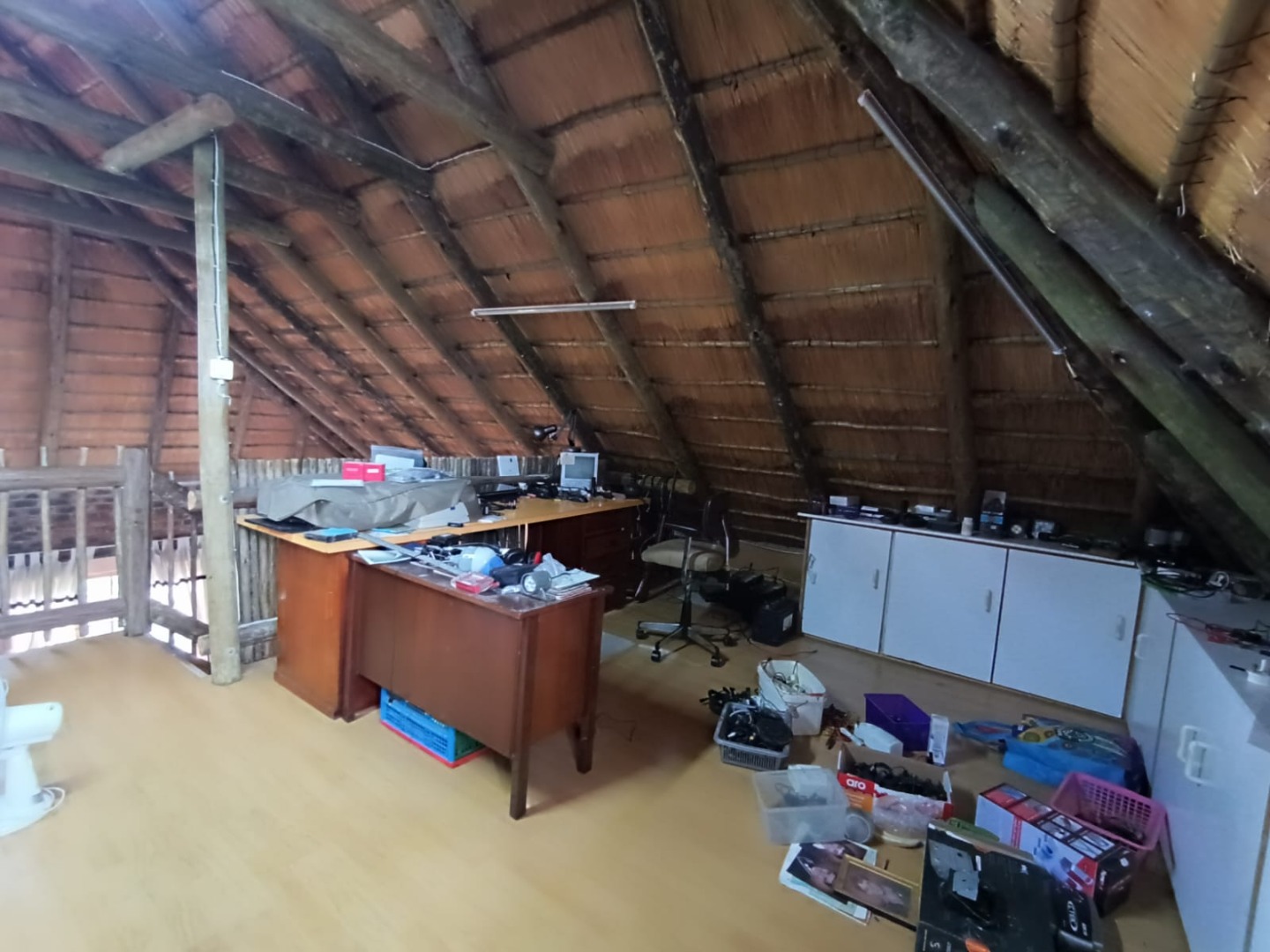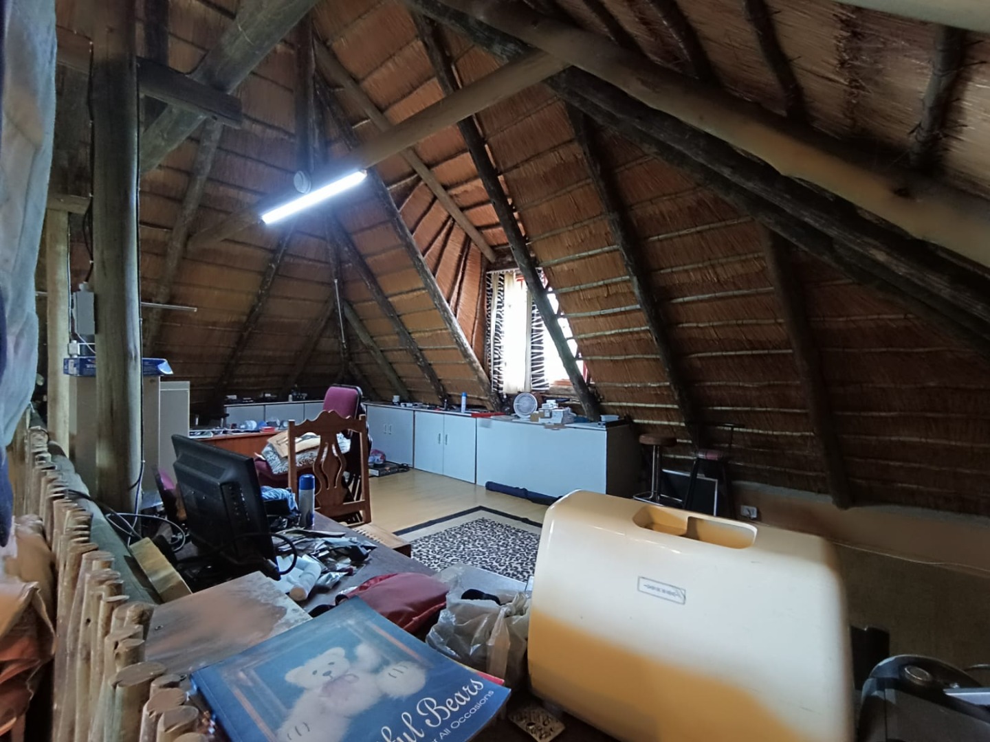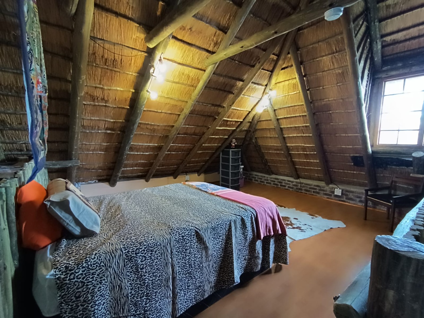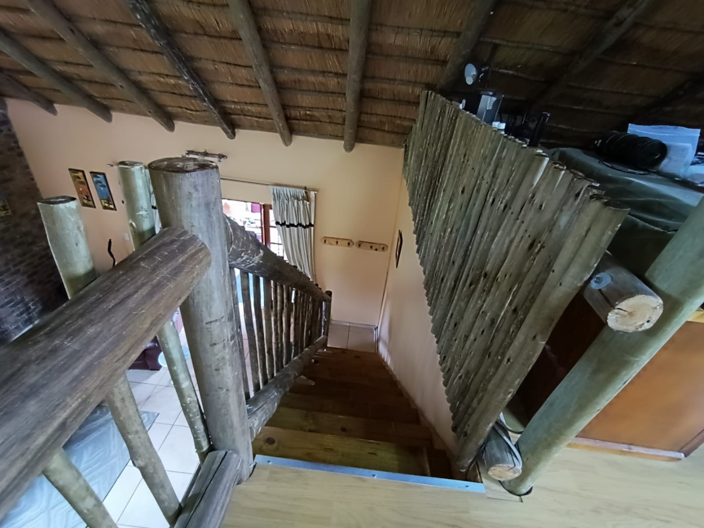 Discover a charming holiday home nestled in the tranquil setting of Oranjeville, offering a unique blend of rustic appeal and comfortable living. This delightful property, set on a generous 1115 sqm erf with a floor size of 285 sqm, immediately captivates with its distinctive thatched roof and sturdy brick exterior, exuding a timeless character that blends seamlessly with the lush natural surroundings.