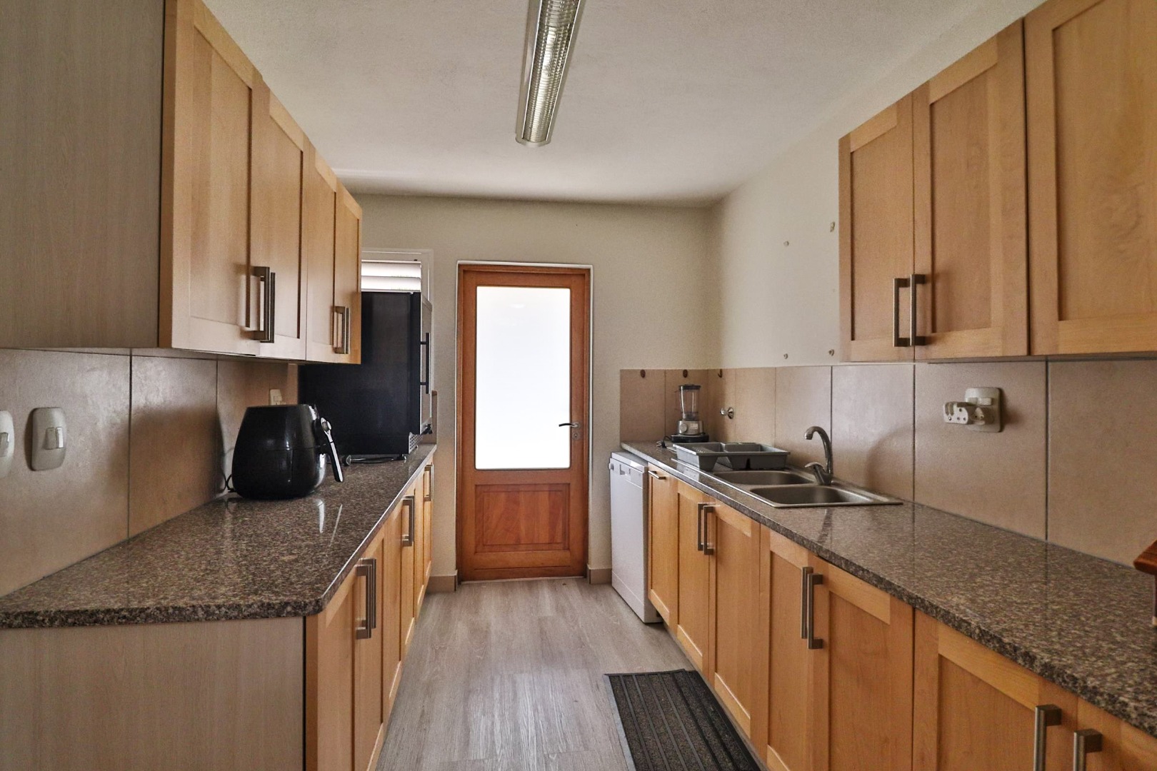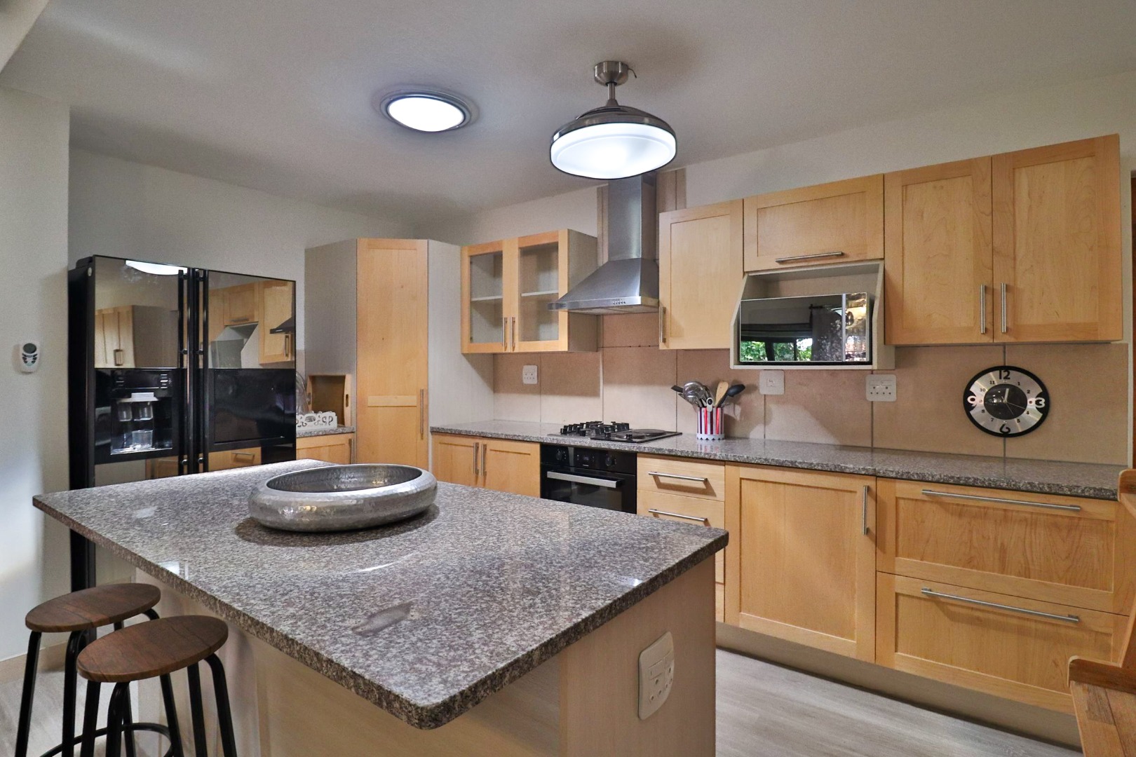 Spacious open plan living area and kitchen, separate scullery, space for double door fridge freezer, gas and electric hob, electric oven, three spacious bedrooms, the main on suite with