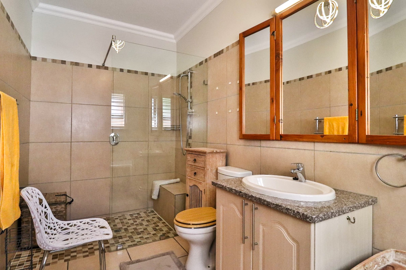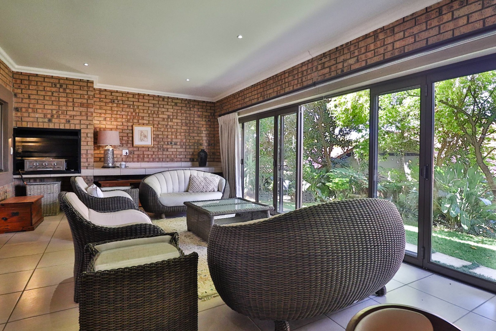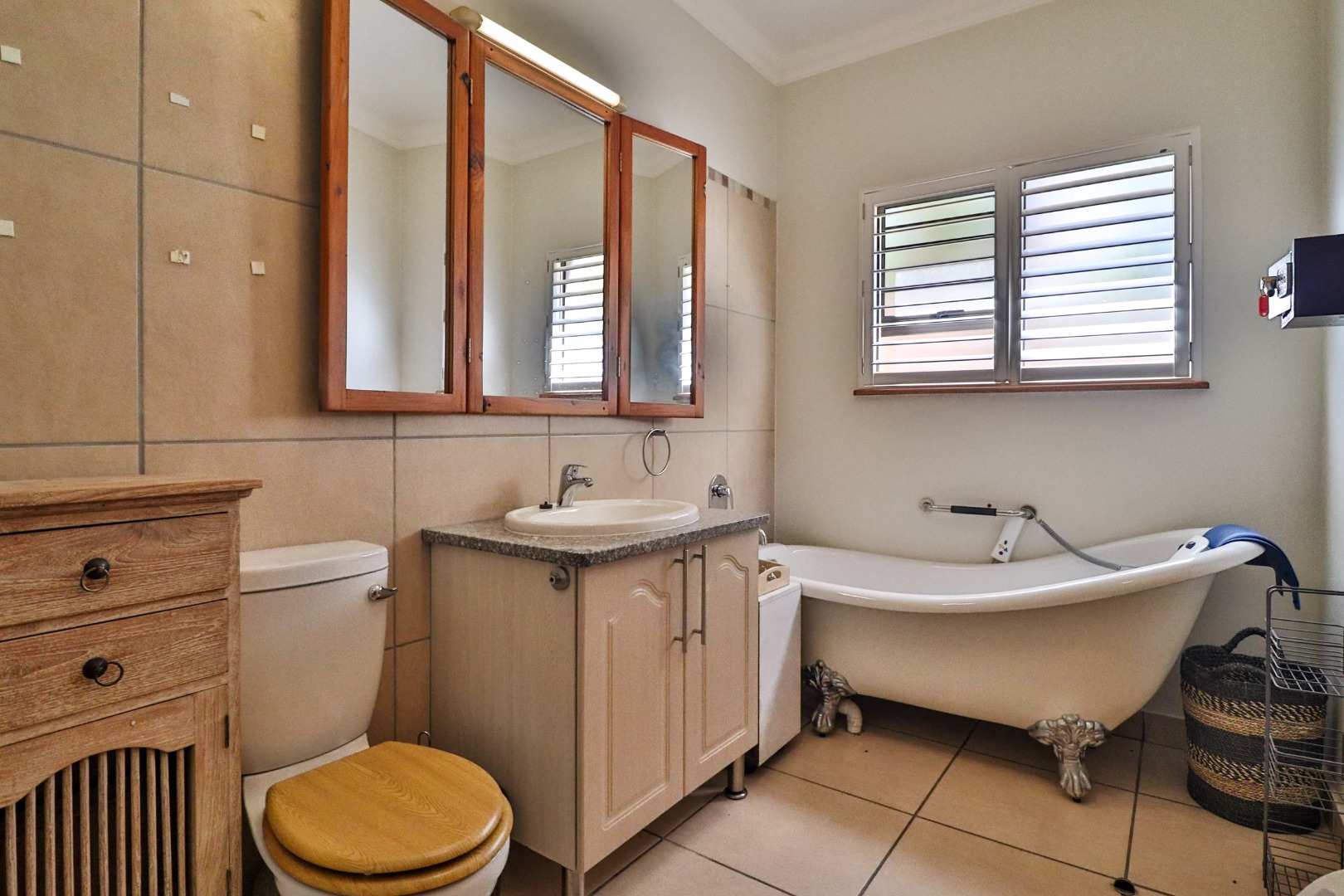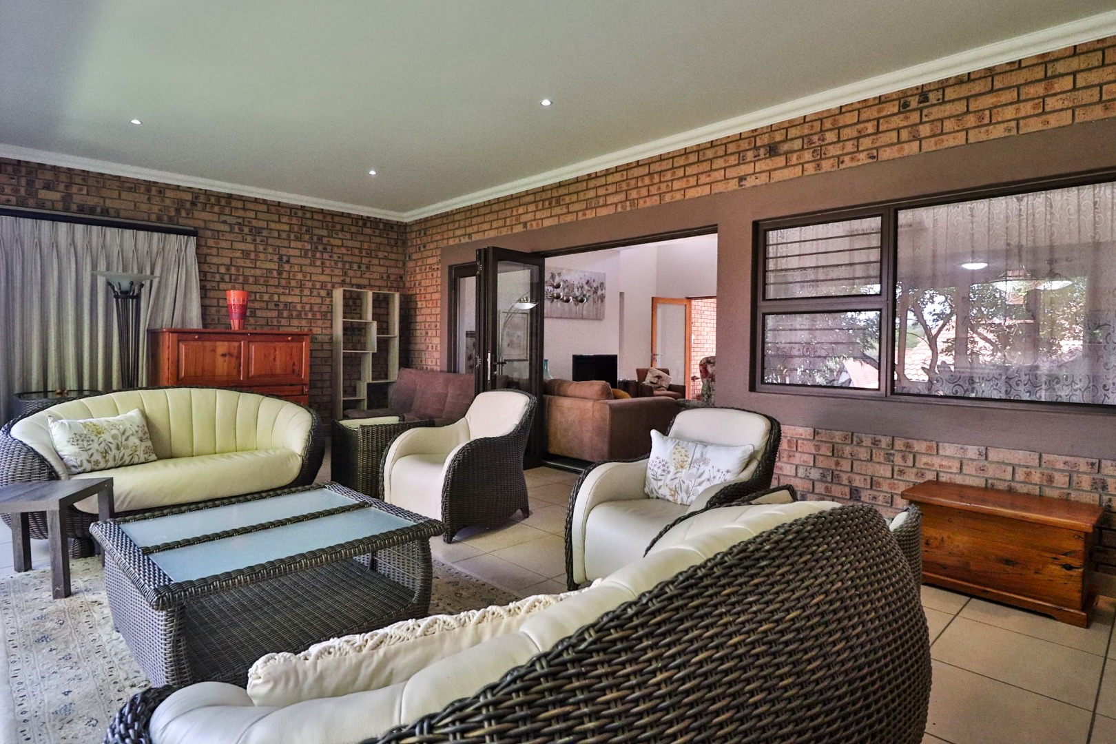 walk in shower and bath, the second bathroom has a bath and shower. The patio is enclosed with stack doors has a gas braai and can accommodate a dining and seating area. The house has a double garage, stunning garden, inverter, aircons and fans, shutters and blinds