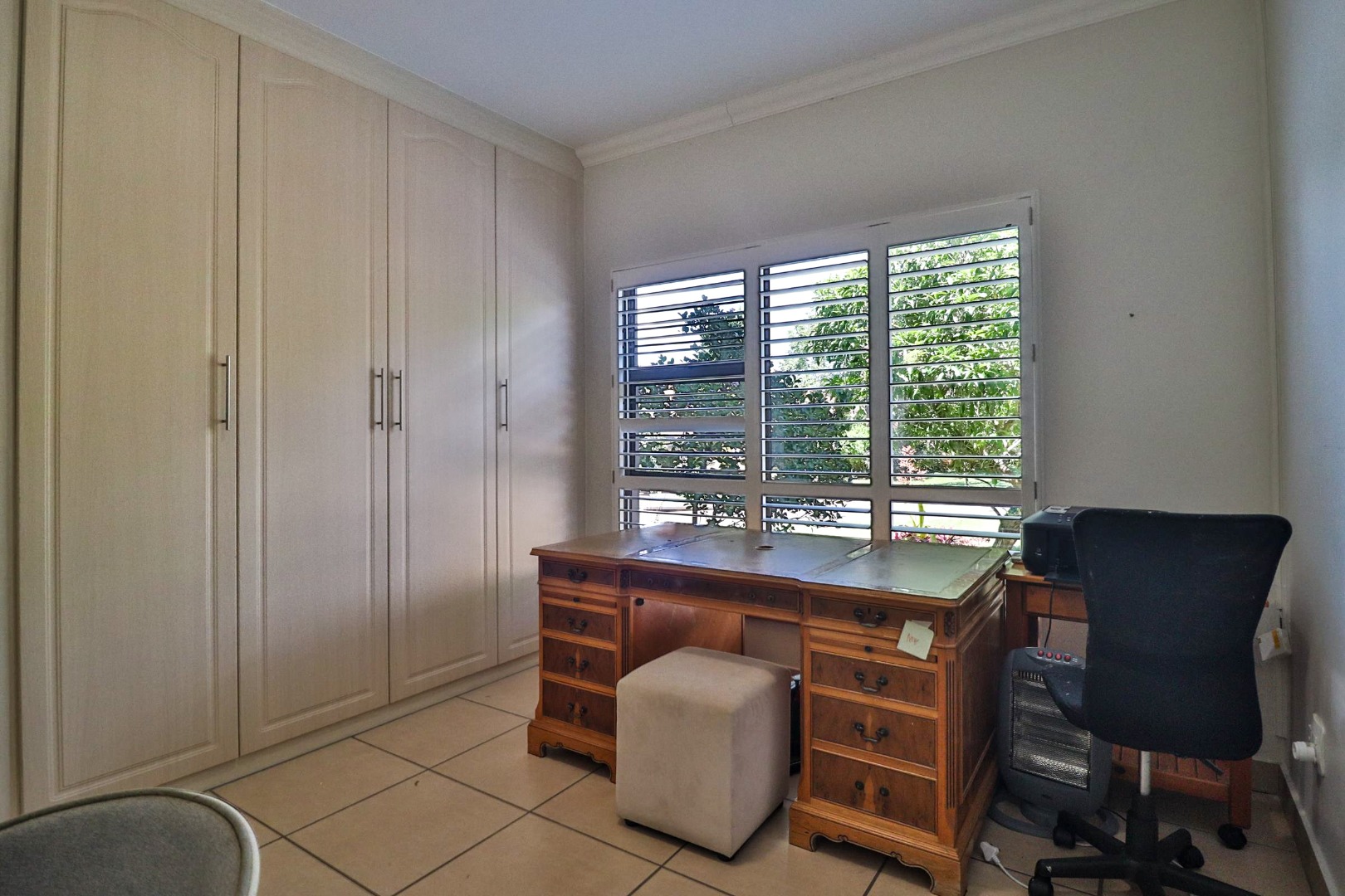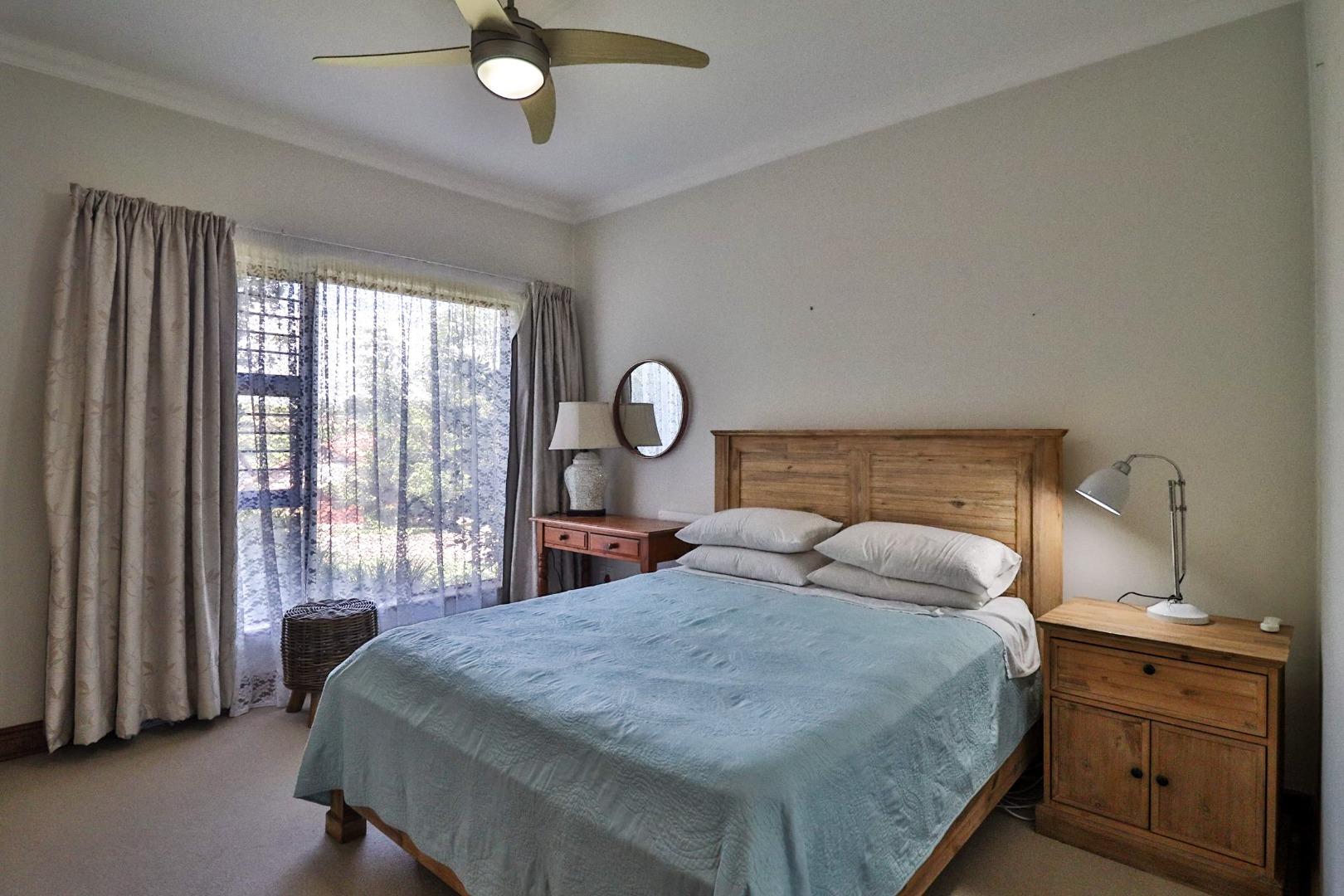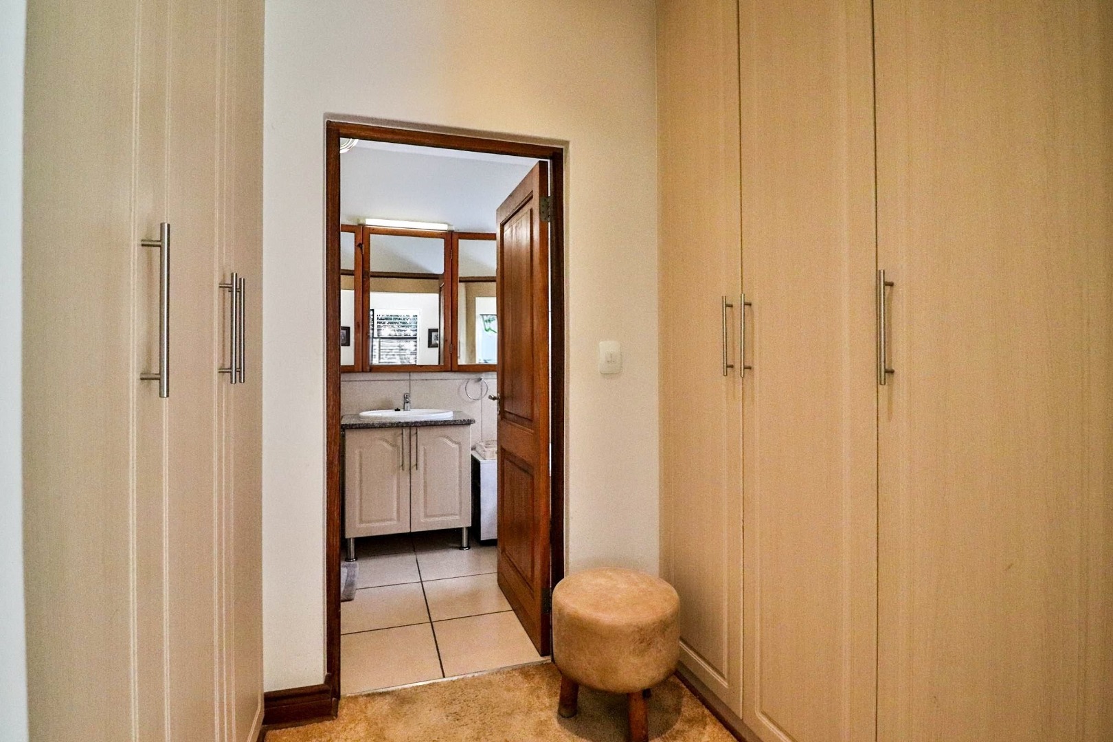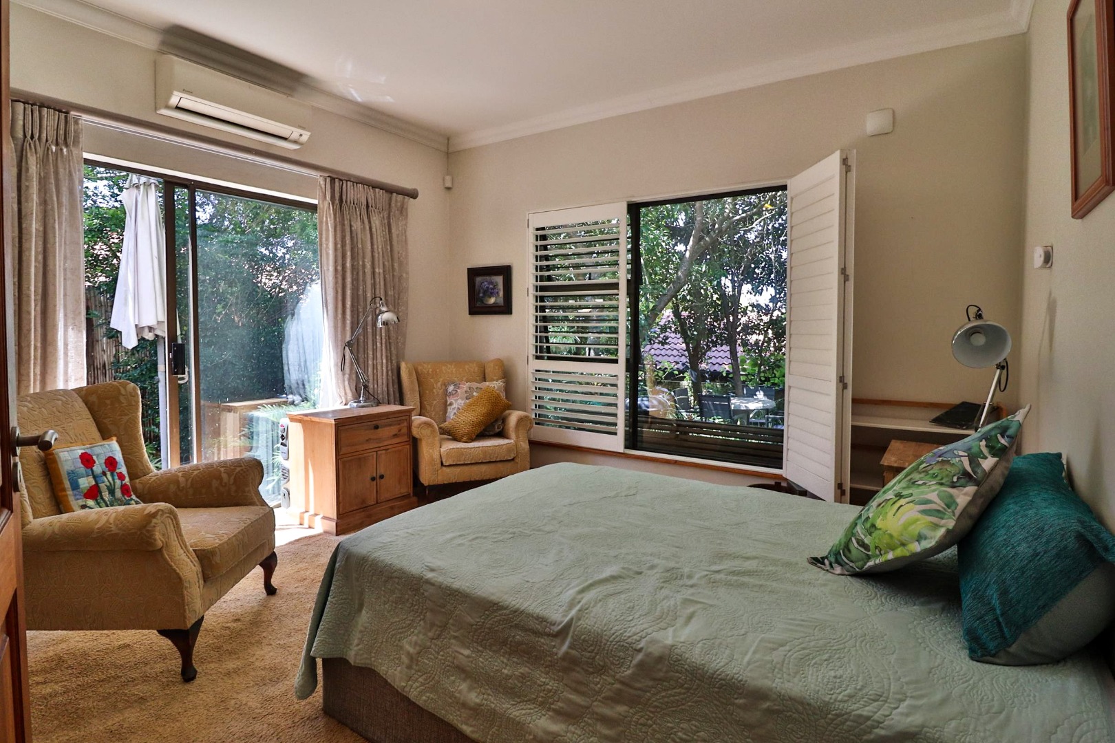 walk in shower and bath, the second bathroom has a bath and shower. The patio is enclosed with stack doors has a gas braai and can accommodate a dining and seating area. The house has a double garage, stunning garden, inverter, aircons and fans, shutters and blinds