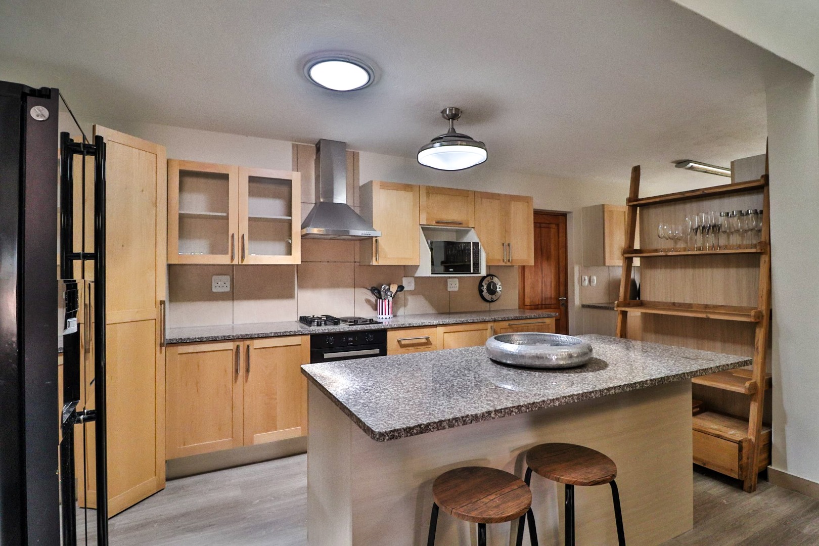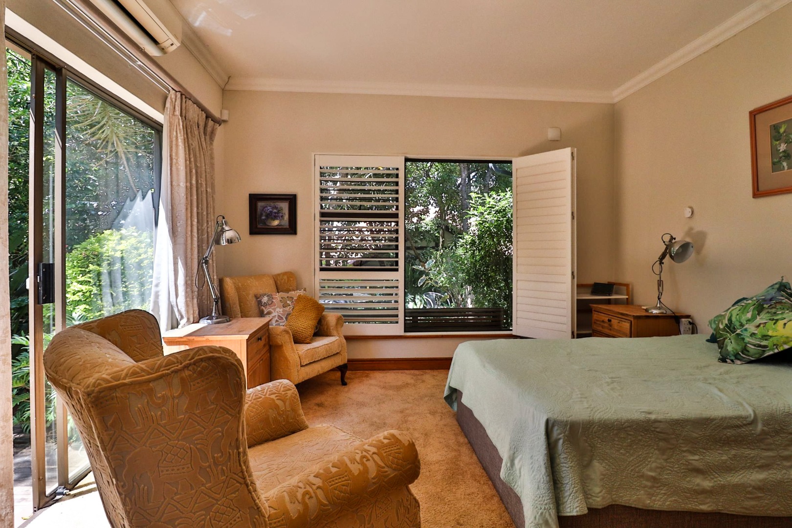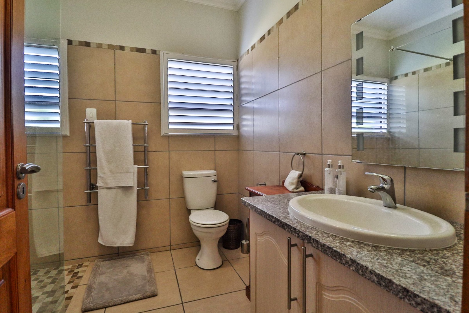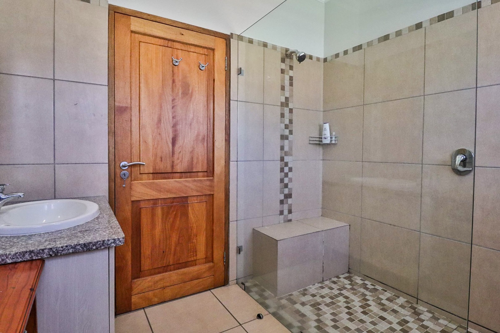 walk in shower and bath, the second bathroom has a bath and shower. The patio is enclosed with stack doors has a gas braai and can accommodate a dining and seating area. The house has a double garage, stunning garden, inverter, aircons and fans, shutters and blinds