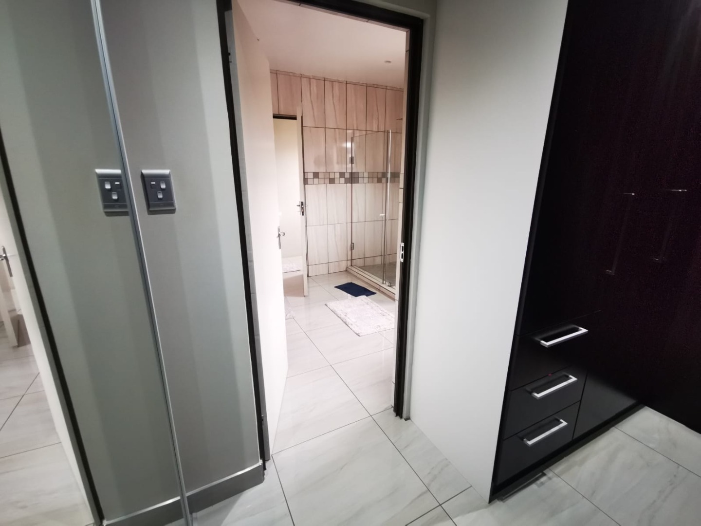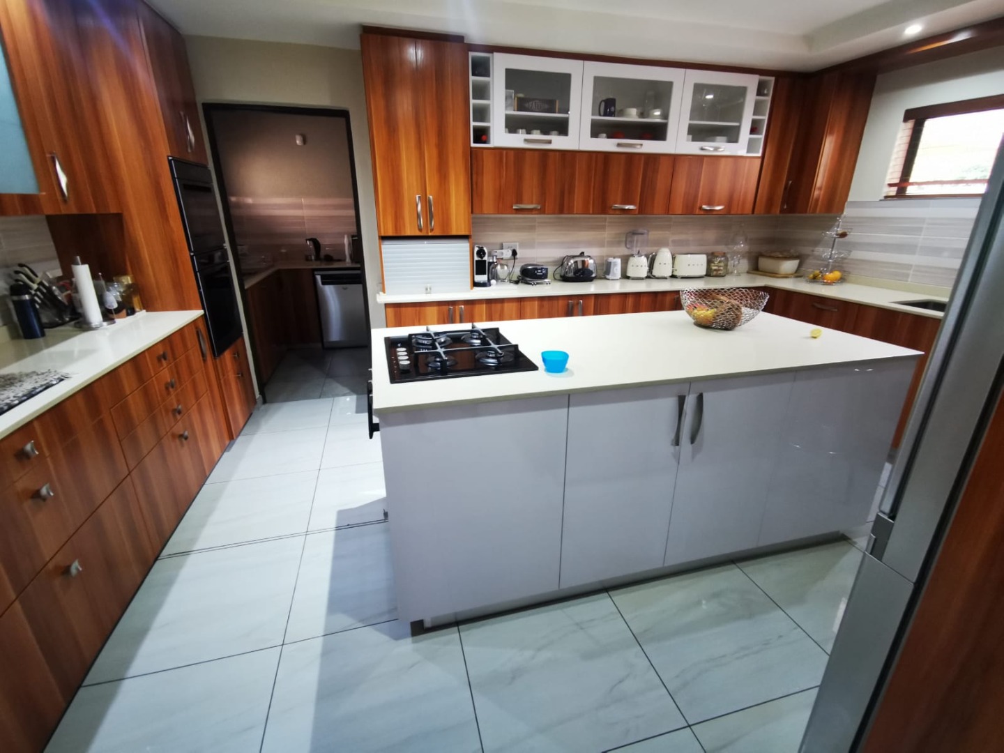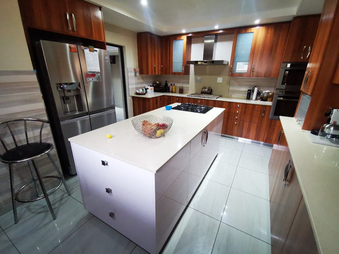 Discover modern living in this exquisite two-story residence, boasting a contemporary architectural design and a generous 473 sqm under roof within the secure Elawini Lifestyle Estate in Nelspruit, South Africa. The property immediately impresses with its distinct exterior, multiple balconies, integrated double garage, and a welcoming paved driveway leading to a well-maintained garden. Step inside to an inviting entrance hall featuring light-colored tiled flooring and a multi-level layout, creating an immediate sense of space. The interior flows seamlessly into a spacious lounge, dining room, and family TV room, all benefiting from neutral walls and recessed lighting. The heart of the home is a modern kitchen, equipped with two-tone cabinetry, a large island with an integrated gas hob, ample storage, and high-end appliances, complemented by a convenient pantry and laundry area. This home offers five comfortable bedrooms, each accompanied by its own en-suite bathroom, ensuring privacy and convenience for all residents. Additional features include a dedicated study and staff quarters. Outdoors, enjoy a private pool, deck, and a built-in braai area, perfect for entertaining. The estate itself provides exceptional lifestyle amenities, including a gym, club house, squash court, and tennis court. Security is paramount with 24-hour security, an alarm system, access gate, and a fully fenced, totally walled perimeter, offering peace of mind. The property also includes air conditioning, satellite connectivity, and ADSL. Elawini Lifestyle Estate is renowned for its secure and vibrant community, providing an ideal setting for families seeking an active and tranquil lifestyle. Key Features: * 5 Bedrooms, 5 En-suite Bathrooms * Modern Kitchen with Gas Hob * Private Pool & Deck * Integrated Double Garage (3 parking spaces) * Study, Staff Quarters & Laundry * Air Conditioning & Balconies * Built-in Braai & Garden * 24-Hour Security Estate with Club House, Gym, Squash & Tennis Courts