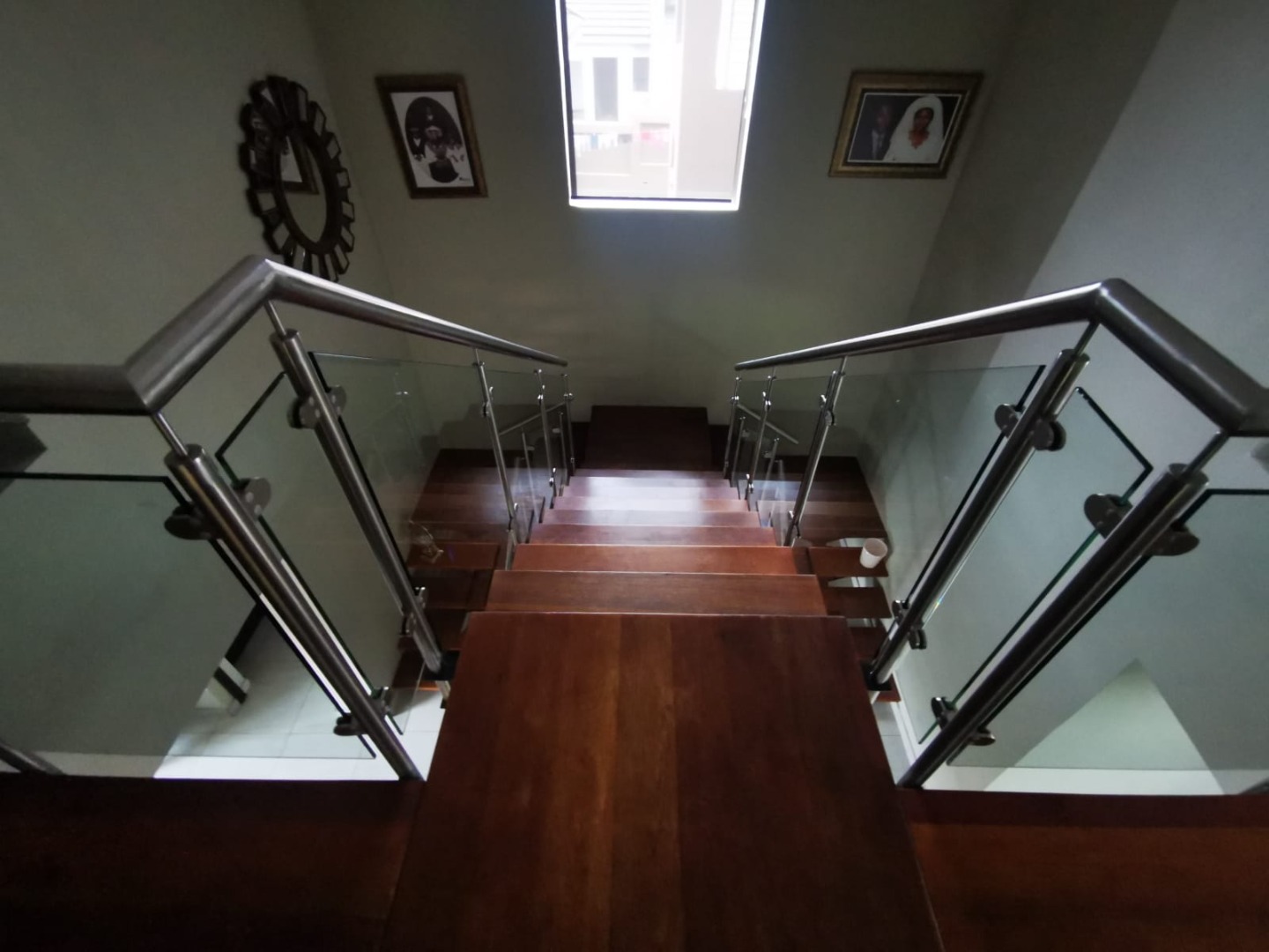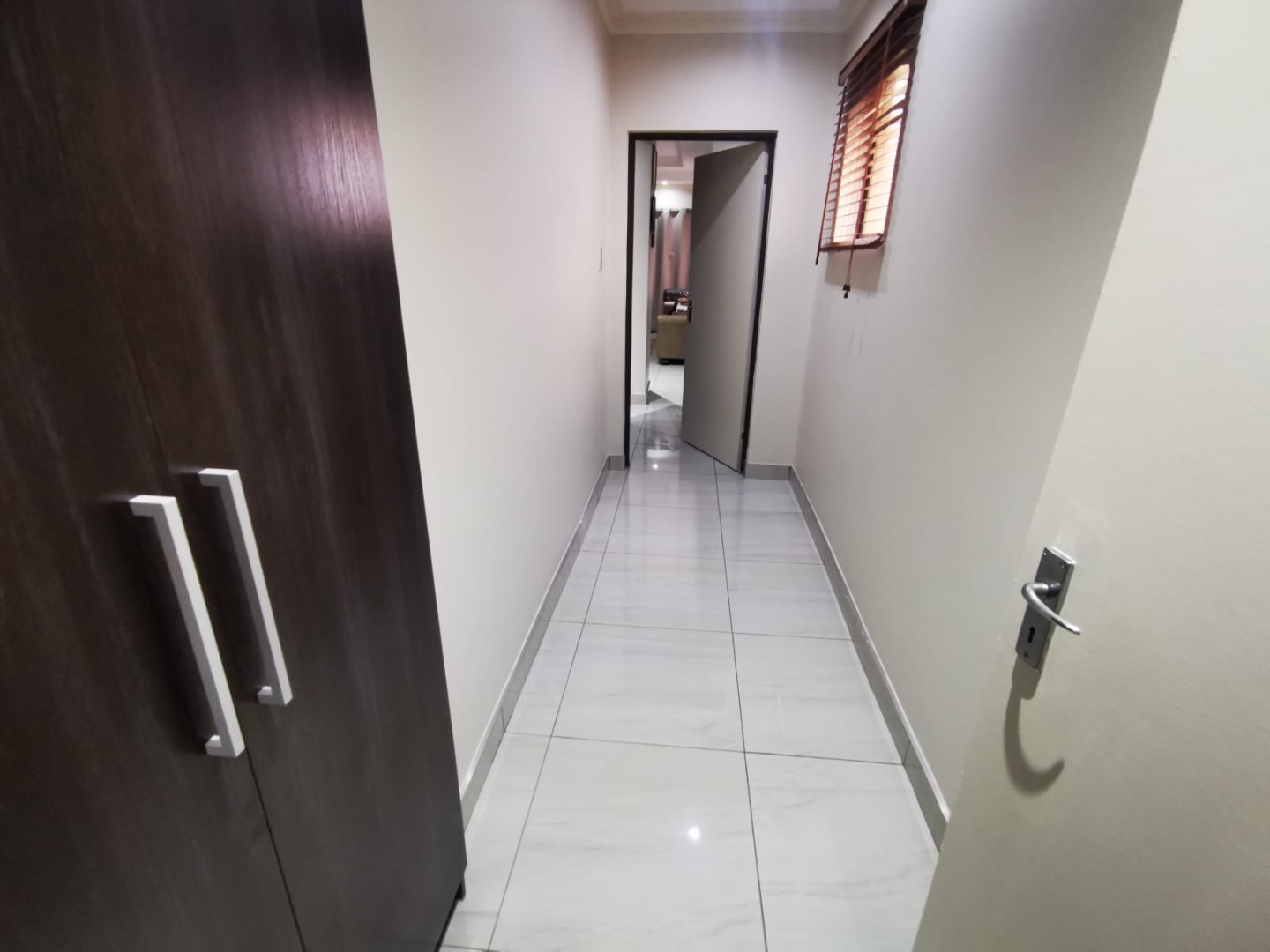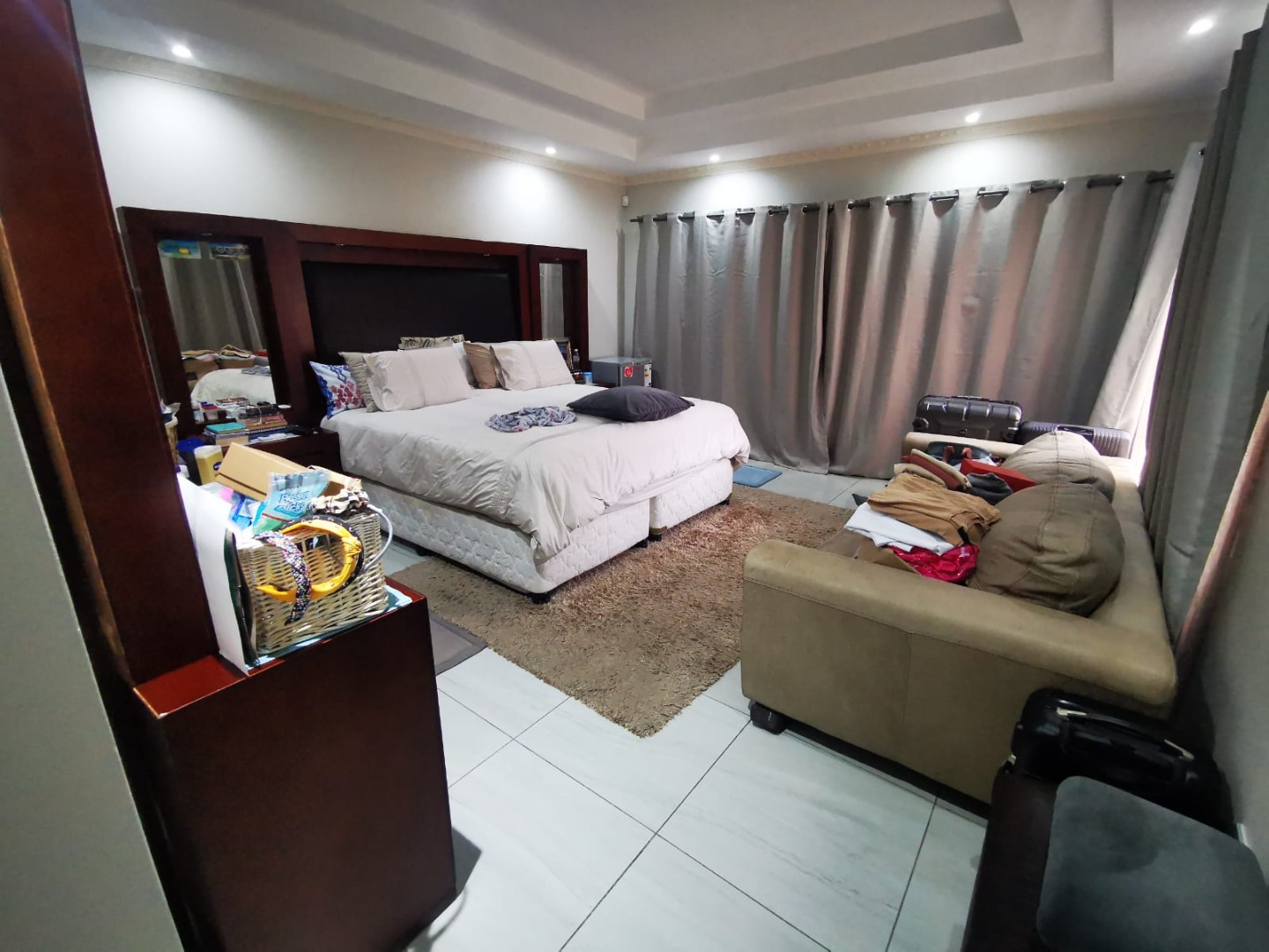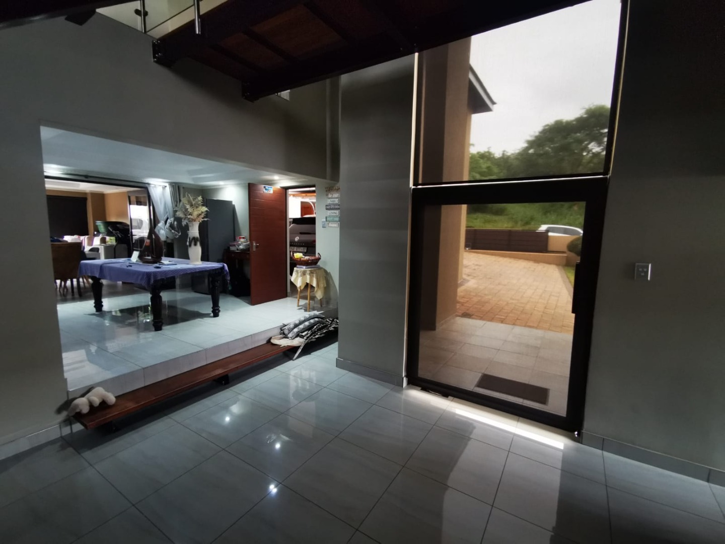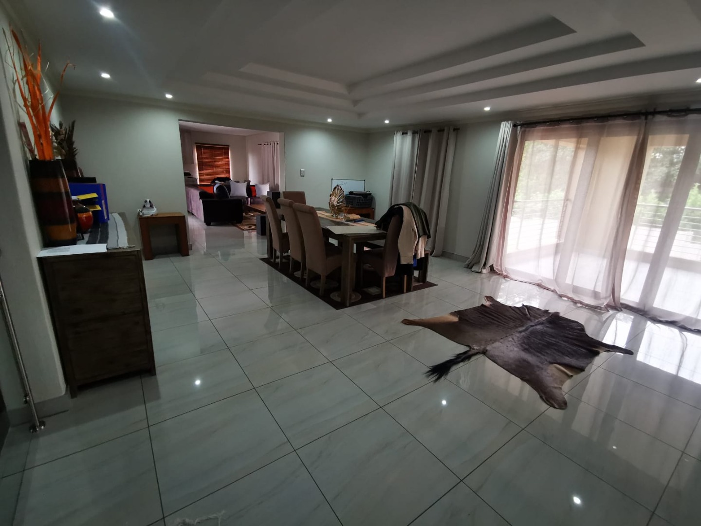 Discover modern living in this exquisite two-story residence, boasting a contemporary architectural design and a generous 473 sqm under roof within the secure Elawini Lifestyle Estate in Nelspruit, South Africa. The property immediately impresses with its distinct exterior, multiple balconies, integrated double garage, and a welcoming paved driveway leading to a well-maintained garden. Step inside to an inviting entrance hall featuring light-colored tiled flooring and a multi-level layout, creating an immediate sense of space. The interior flows seamlessly into a spacious lounge, dining room, and family TV room, all benefiting from neutral walls and recessed lighting. The heart of the home is a modern kitchen, equipped with two-tone cabinetry, a large island with an integrated gas hob, ample storage, and high-end appliances, complemented by a convenient pantry and laundry area. This home offers five comfortable bedrooms, each accompanied by its own en-suite bathroom, ensuring privacy and convenience for all residents. Additional features include a dedicated study and staff quarters. Outdoors, enjoy a private pool, deck, and a built-in braai area, perfect for entertaining. The estate itself provides exceptional lifestyle amenities, including a gym, club house, squash court, and tennis court. Security is paramount with 24-hour security, an alarm system, access gate, and a fully fenced, totally walled perimeter, offering peace of mind. The property also includes air conditioning, satellite connectivity, and ADSL. Elawini Lifestyle Estate is renowned for its secure and vibrant community, providing an ideal setting for families seeking an active and tranquil lifestyle. Key Features: * 5 Bedrooms, 5 En-suite Bathrooms * Modern Kitchen with Gas Hob * Private Pool & Deck * Integrated Double Garage (3 parking spaces) * Study, Staff Quarters & Laundry * Air Conditioning & Balconies * Built-in Braai & Garden * 24-Hour Security Estate with Club House, Gym, Squash & Tennis Courts