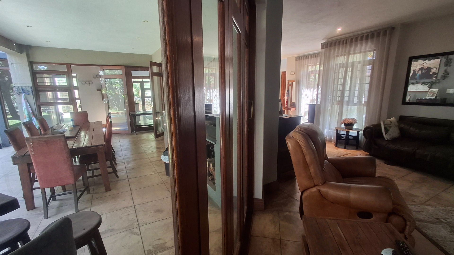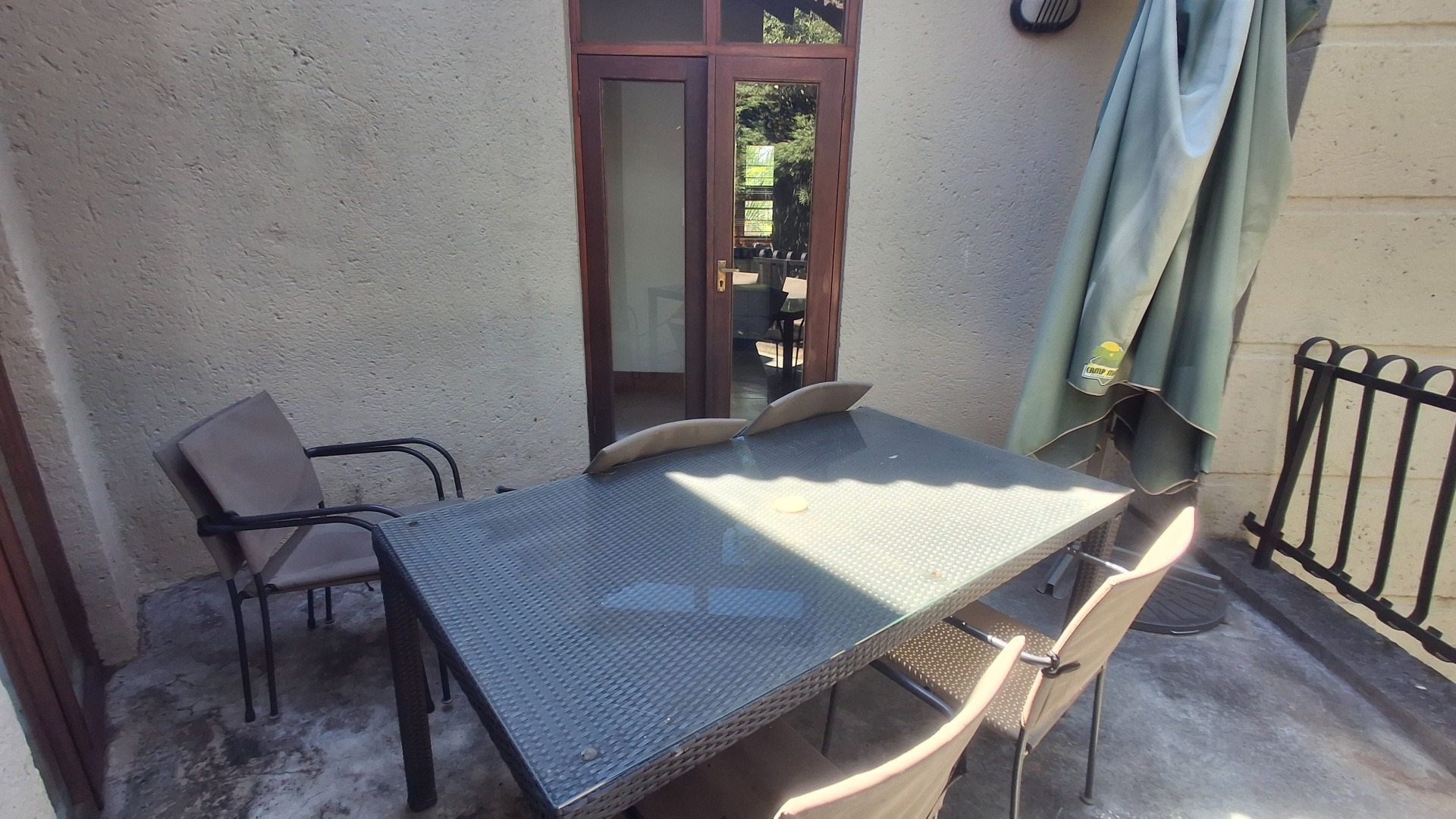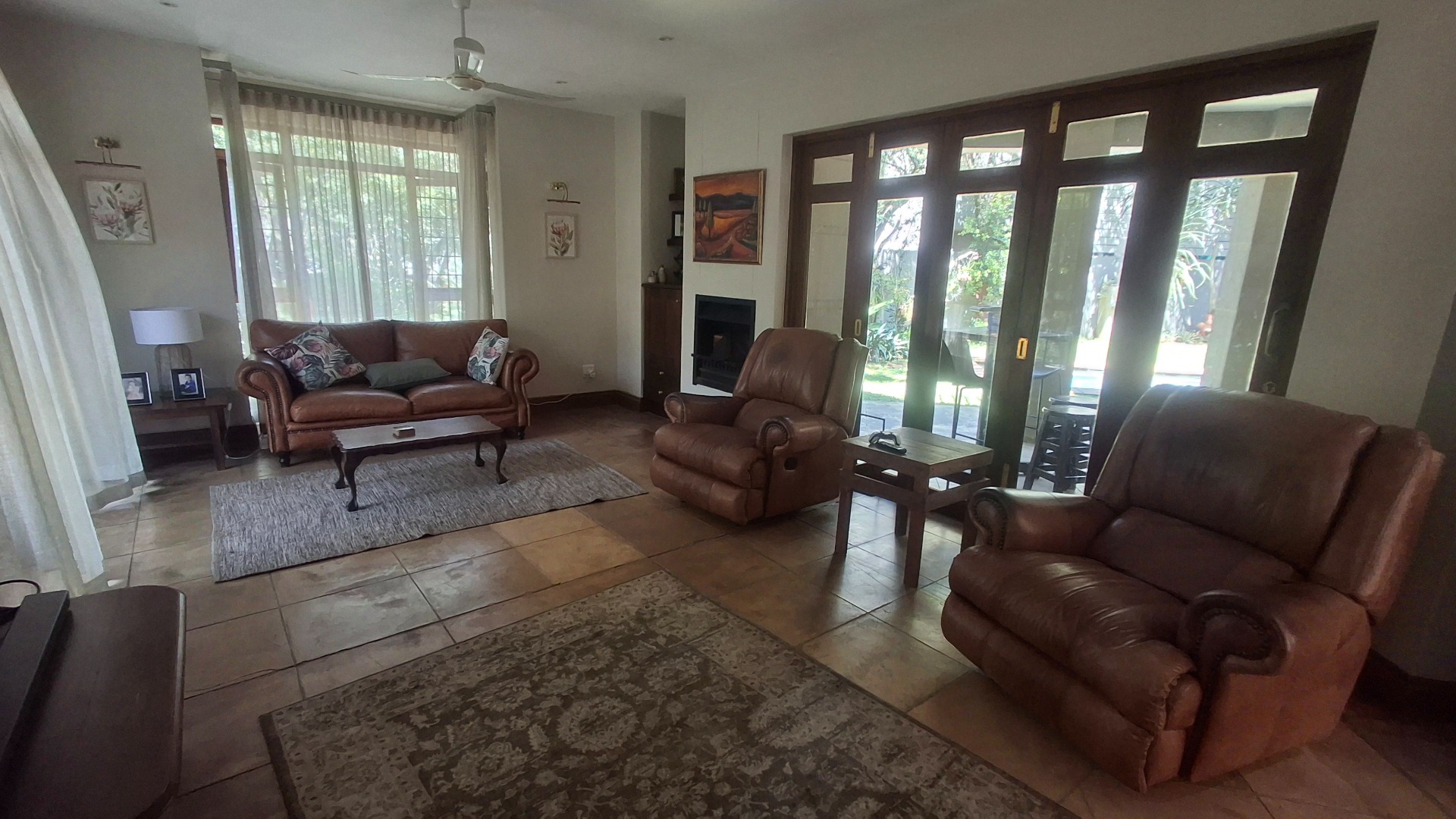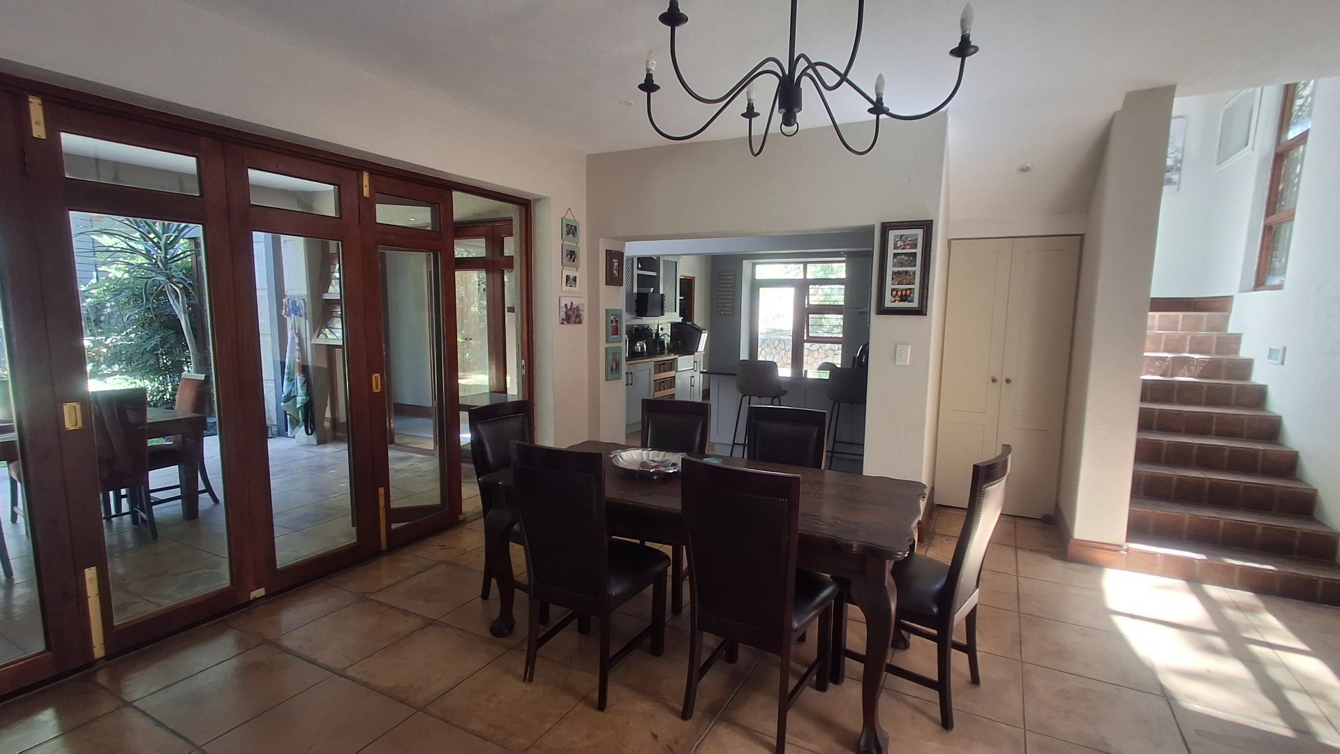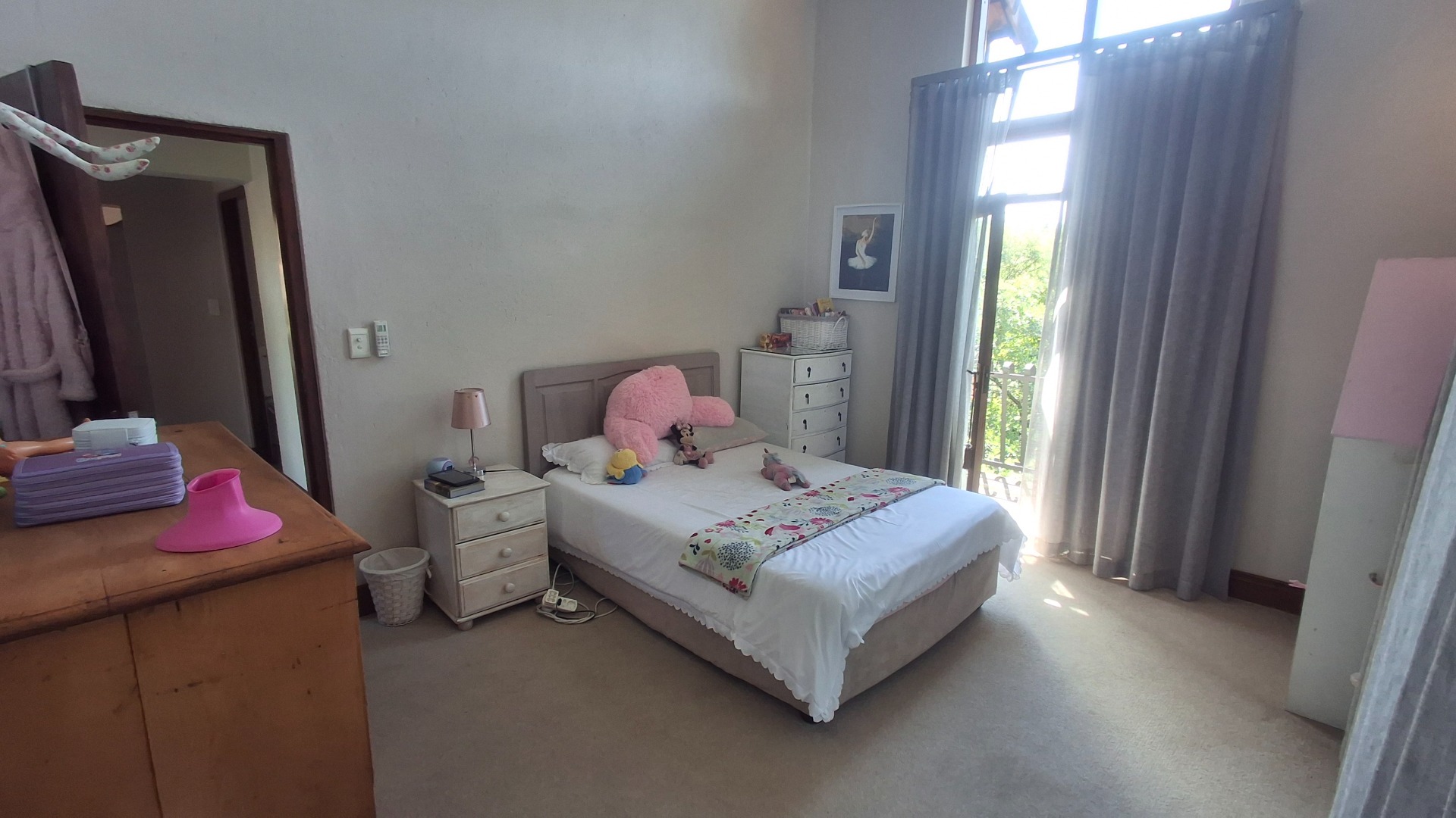 Outdoor living is a true pleasure with a private swimming pool set within a large, established garden, offering a tranquil retreat. Multiple balconies and a spacious covered patio, complete with a built-in braai, provide ideal settings for outdoor dining and entertaining. The property also includes two garages and three additional parking spaces, catering to all vehicle needs.