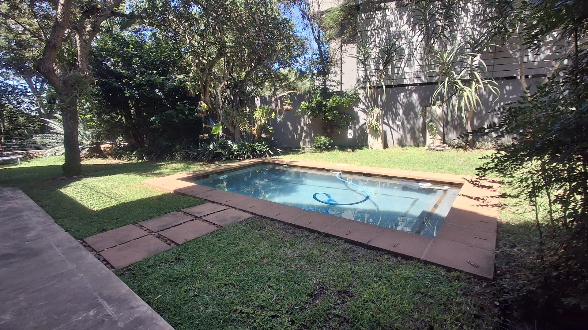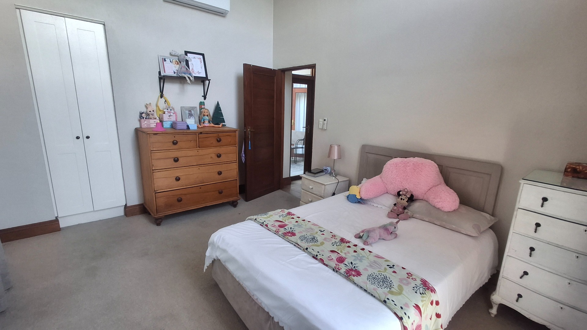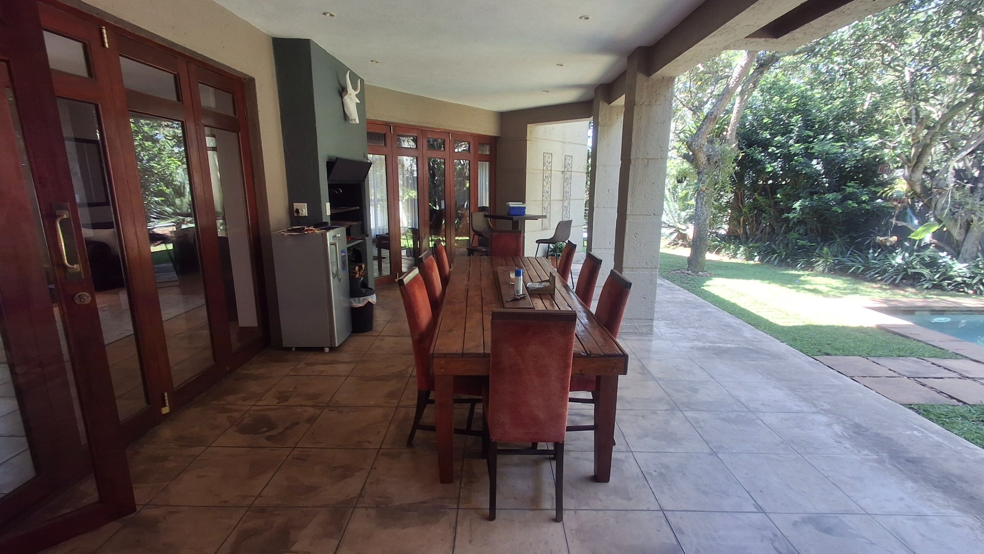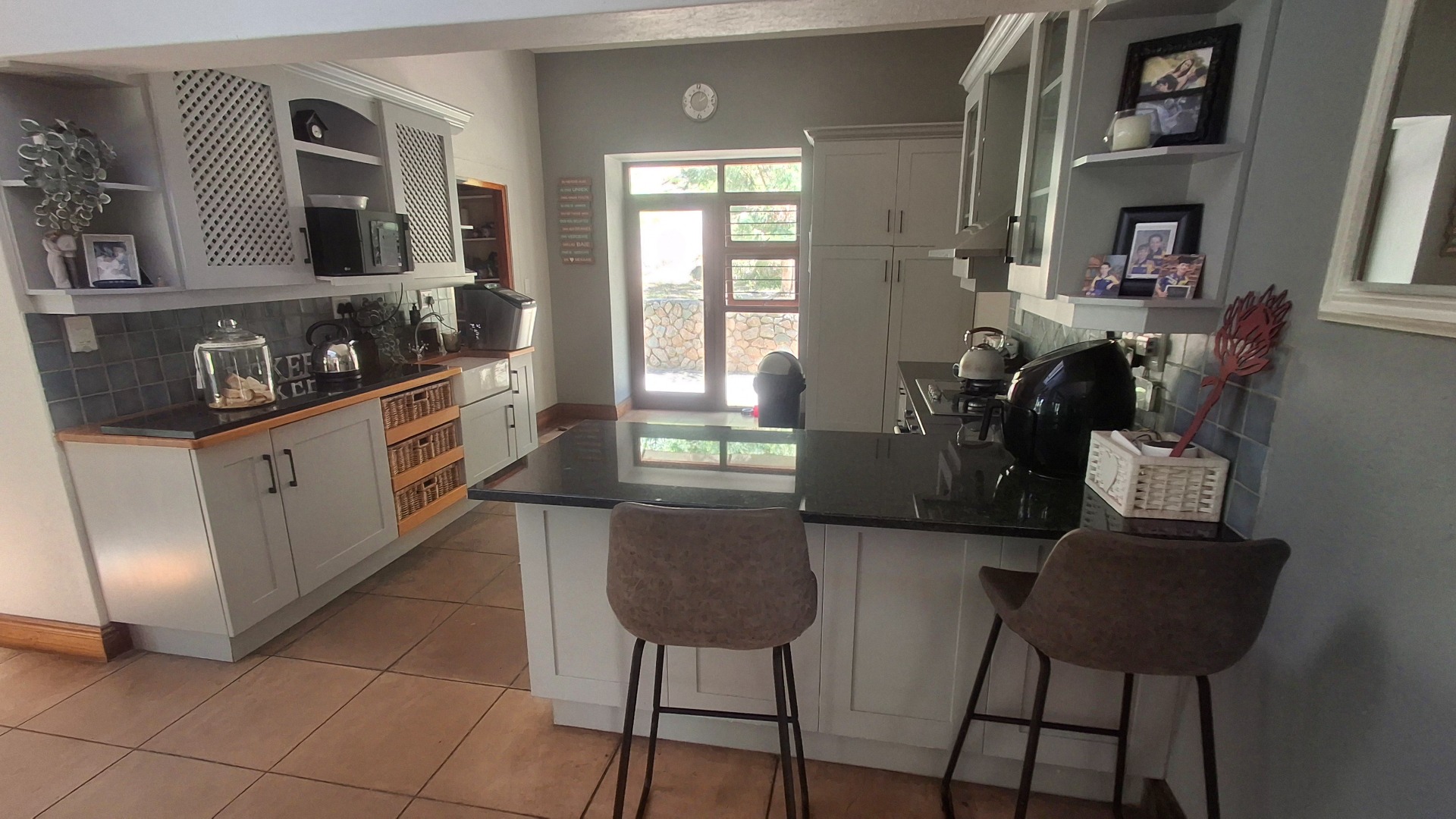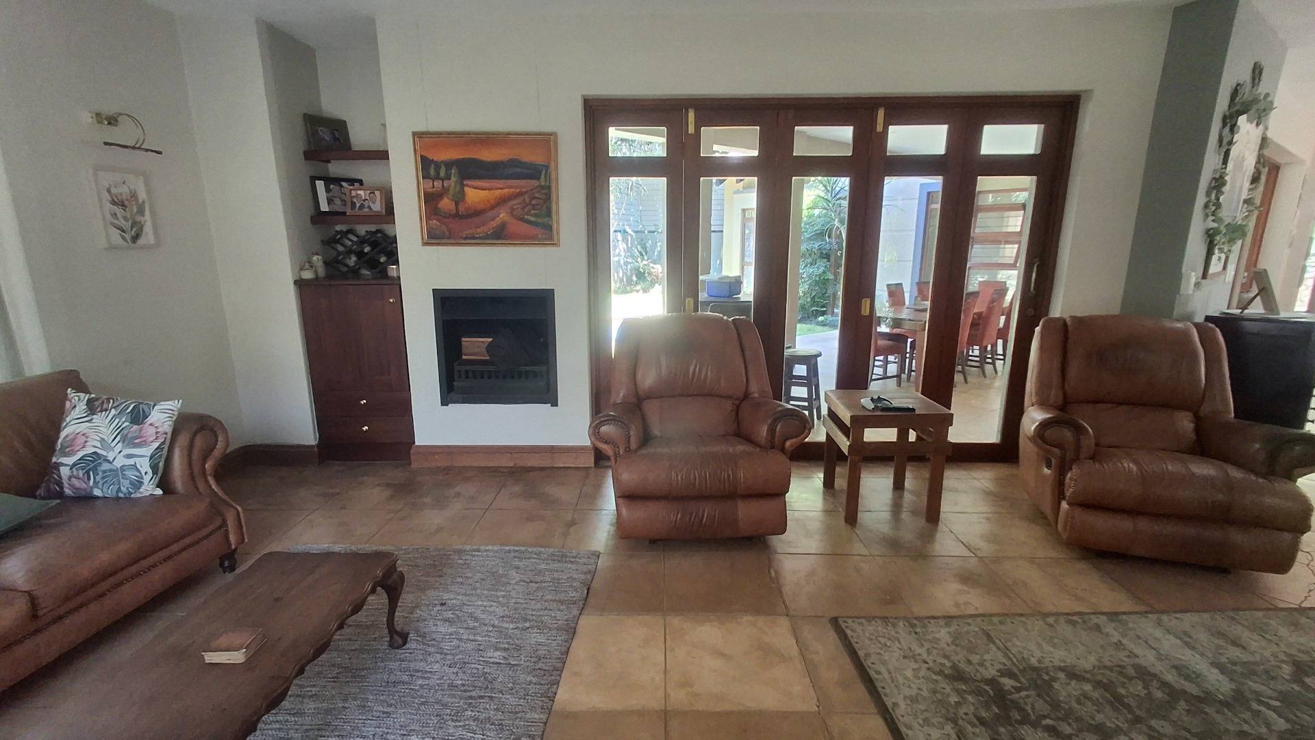 Outdoor living is a true pleasure with a private swimming pool set within a large, established garden, offering a tranquil retreat. Multiple balconies and a spacious covered patio, complete with a built-in braai, provide ideal settings for outdoor dining and entertaining. The property also includes two garages and three additional parking spaces, catering to all vehicle needs.