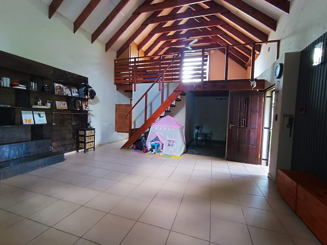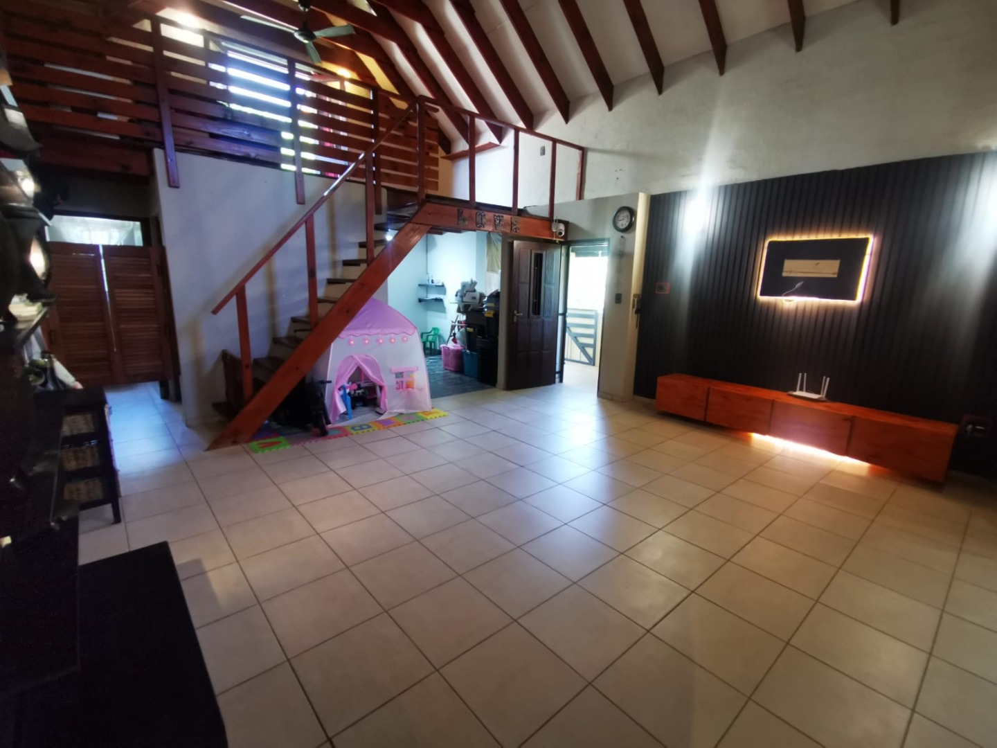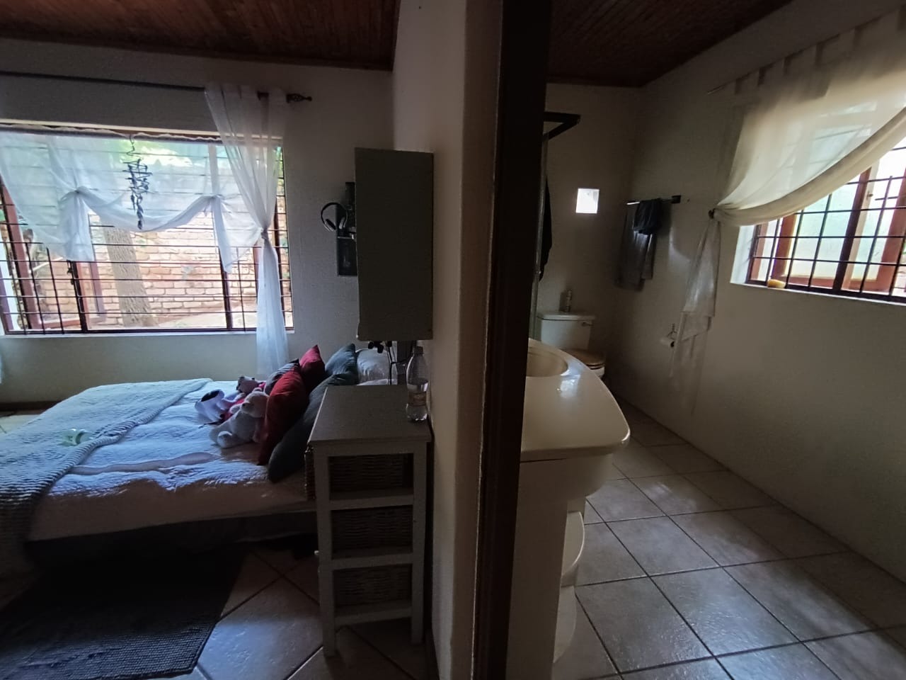 This distinguished three-bedroom residence, situated in the suburban enclave of Nelspruit Ext 27, offers a refined living experience. The property features a large open-plan layout that seamlessly integrates a lounge, dining room, and a well-appointed kitchen with a gas hob and mobile island. A dedicated study provides an ideal workspace. a braai room inside, which can have multiple uses, as the current owner explains. The interior boasts a unique multi-level design, including a mezzanine with a vaulted wooden ceiling offering verdant views. Outdoors, a meticulously maintained garden with a small pergola provides an exceptional setting for entertaining. Additional amenities include two bathrooms, one full en-suite bathroom, another full bathroom with the toilet separate, two garages, two additional parking spaces in front of the double garage, ample storage, and fibre connectivity. Security is enhanced with burglar bars and CCTV cameras that can be used as an intercom system as well. Pets are permitted.