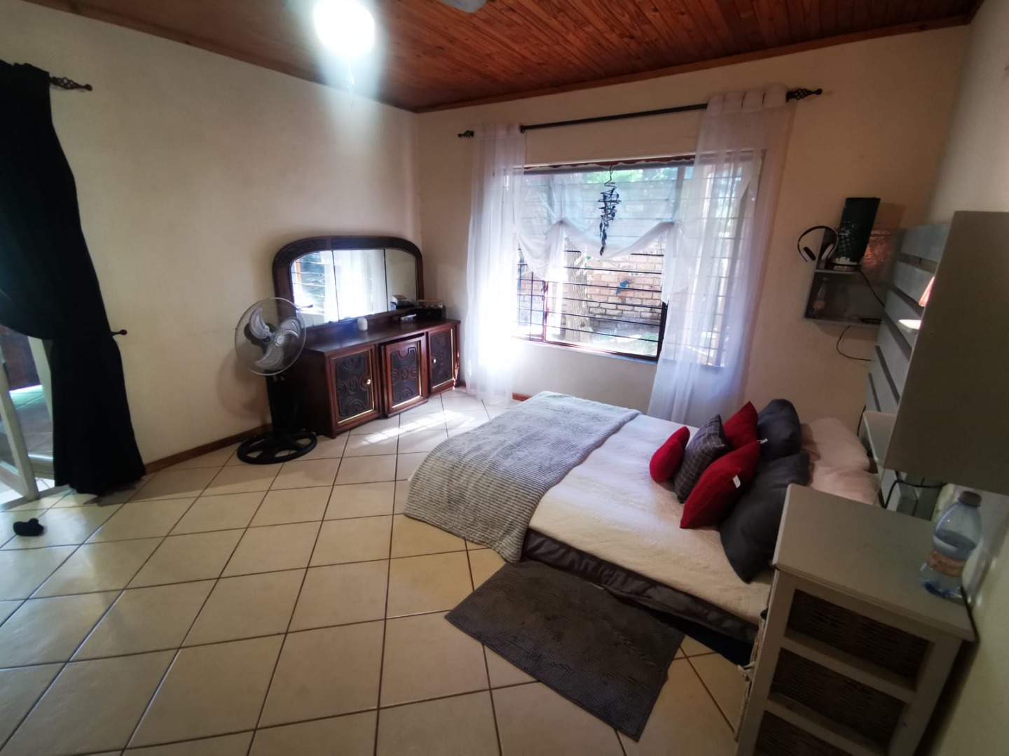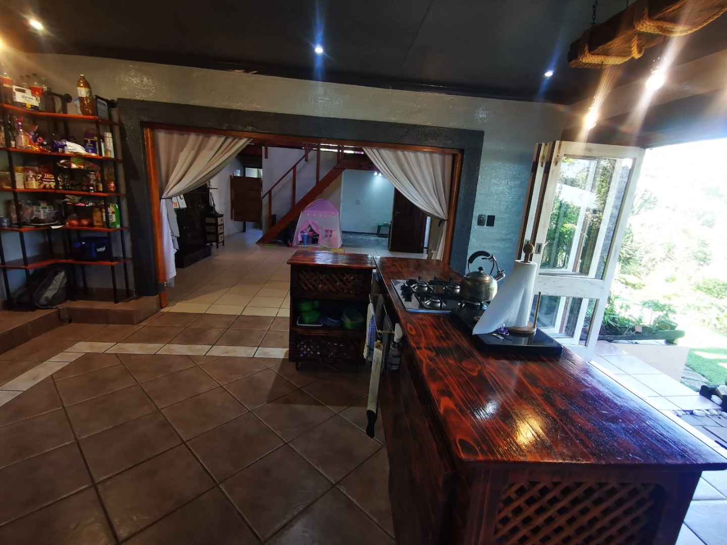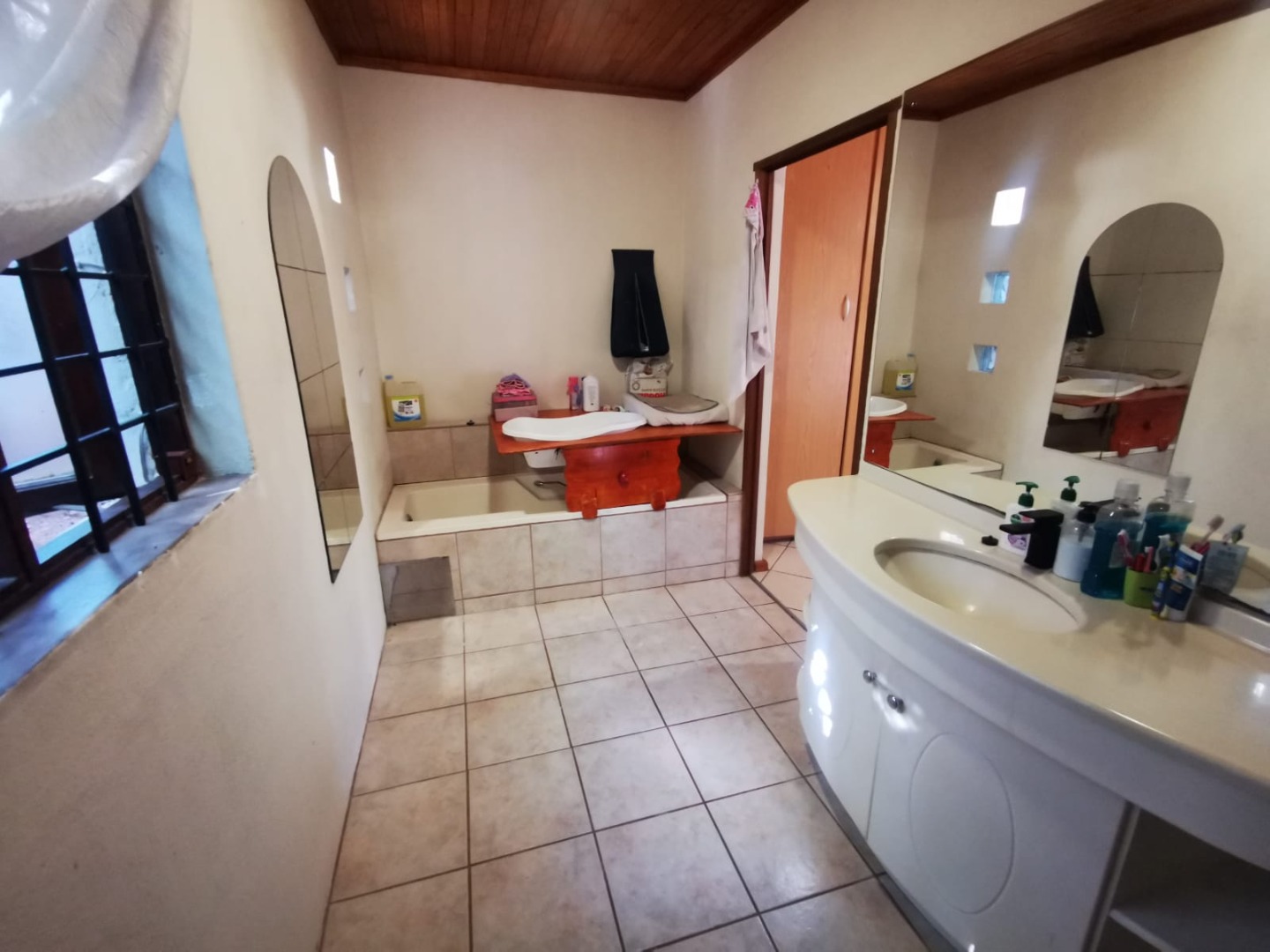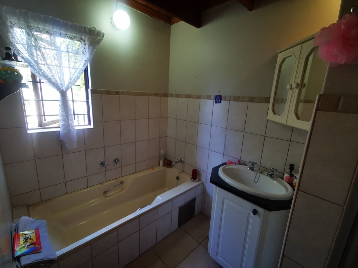 This distinguished three-bedroom residence, situated in the suburban enclave of Nelspruit Ext 27, offers a refined living experience. The property features a large open-plan layout that seamlessly integrates a lounge, dining room, and a well-appointed kitchen with a gas hob and mobile island. A dedicated study provides an ideal workspace. a braai room inside, which can have multiple uses, as the current owner explains. The interior boasts a unique multi-level design, including a mezzanine with a vaulted wooden ceiling offering verdant views. Outdoors, a meticulously maintained garden with a small pergola provides an exceptional setting for entertaining. Additional amenities include two bathrooms, one full en-suite bathroom, another full bathroom with the toilet separate, two garages, two additional parking spaces in front of the double garage, ample storage, and fibre connectivity. Security is enhanced with burglar bars and CCTV cameras that can be used as an intercom system as well. Pets are permitted.