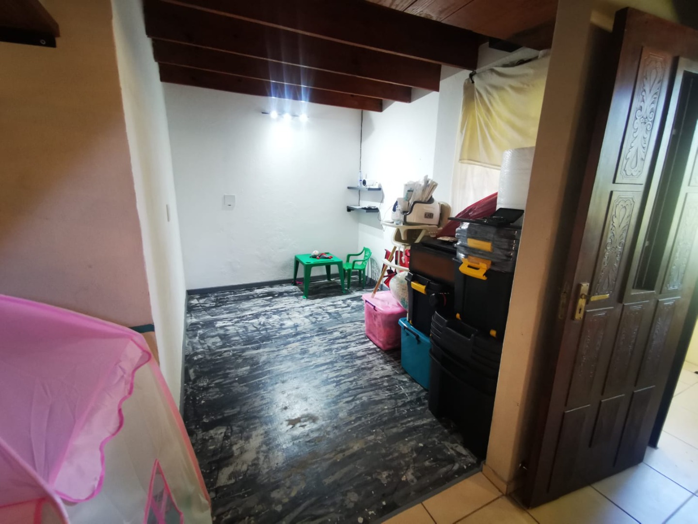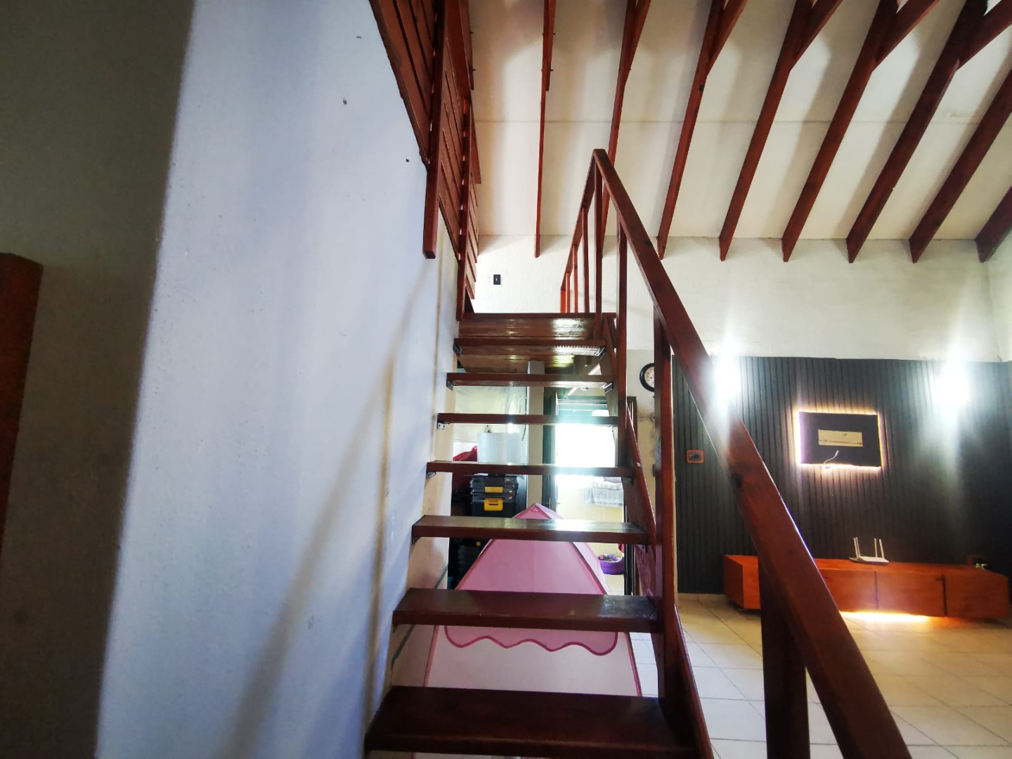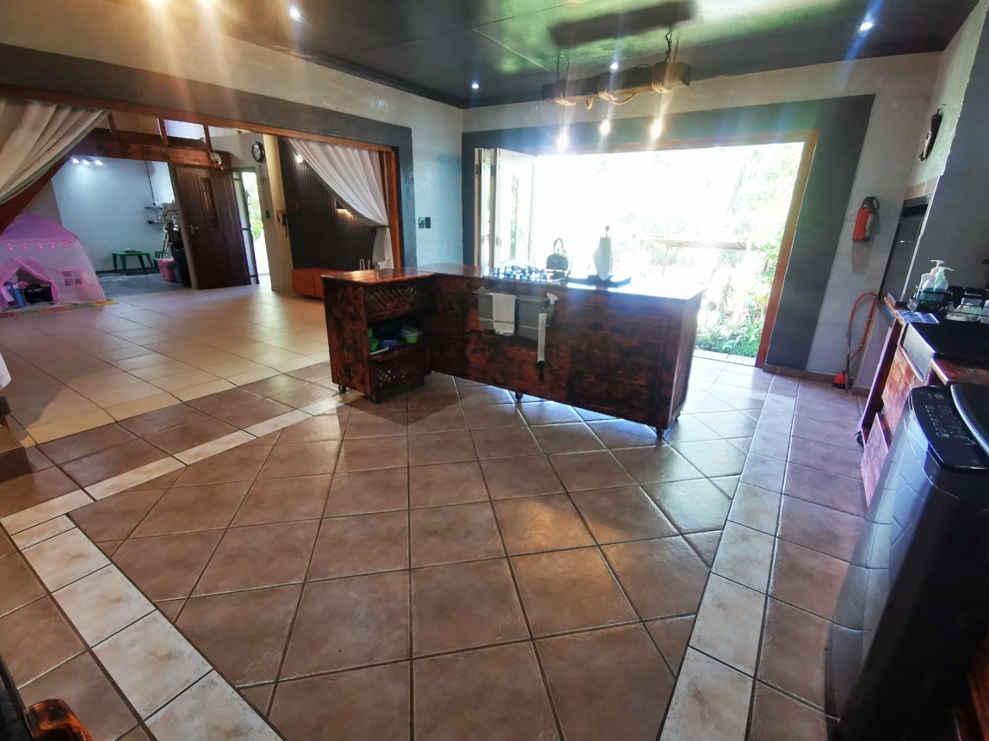 This distinguished three-bedroom residence, situated in the suburban enclave of Nelspruit Ext 27, offers a refined living experience. The property features a large open-plan layout that seamlessly integrates a lounge, dining room, and a well-appointed kitchen with a gas hob and mobile island. A dedicated study provides an ideal workspace. a braai room inside, which can have multiple uses, as the current owner explains. The interior boasts a unique multi-level design, including a mezzanine with a vaulted wooden ceiling offering verdant views. Outdoors, a meticulously maintained garden with a small pergola provides an exceptional setting for entertaining. Additional amenities include two bathrooms, one full en-suite bathroom, another full bathroom with the toilet separate, two garages, two additional parking spaces in front of the double garage, ample storage, and fibre connectivity. Security is enhanced with burglar bars and CCTV cameras that can be used as an intercom system as well. Pets are permitted.