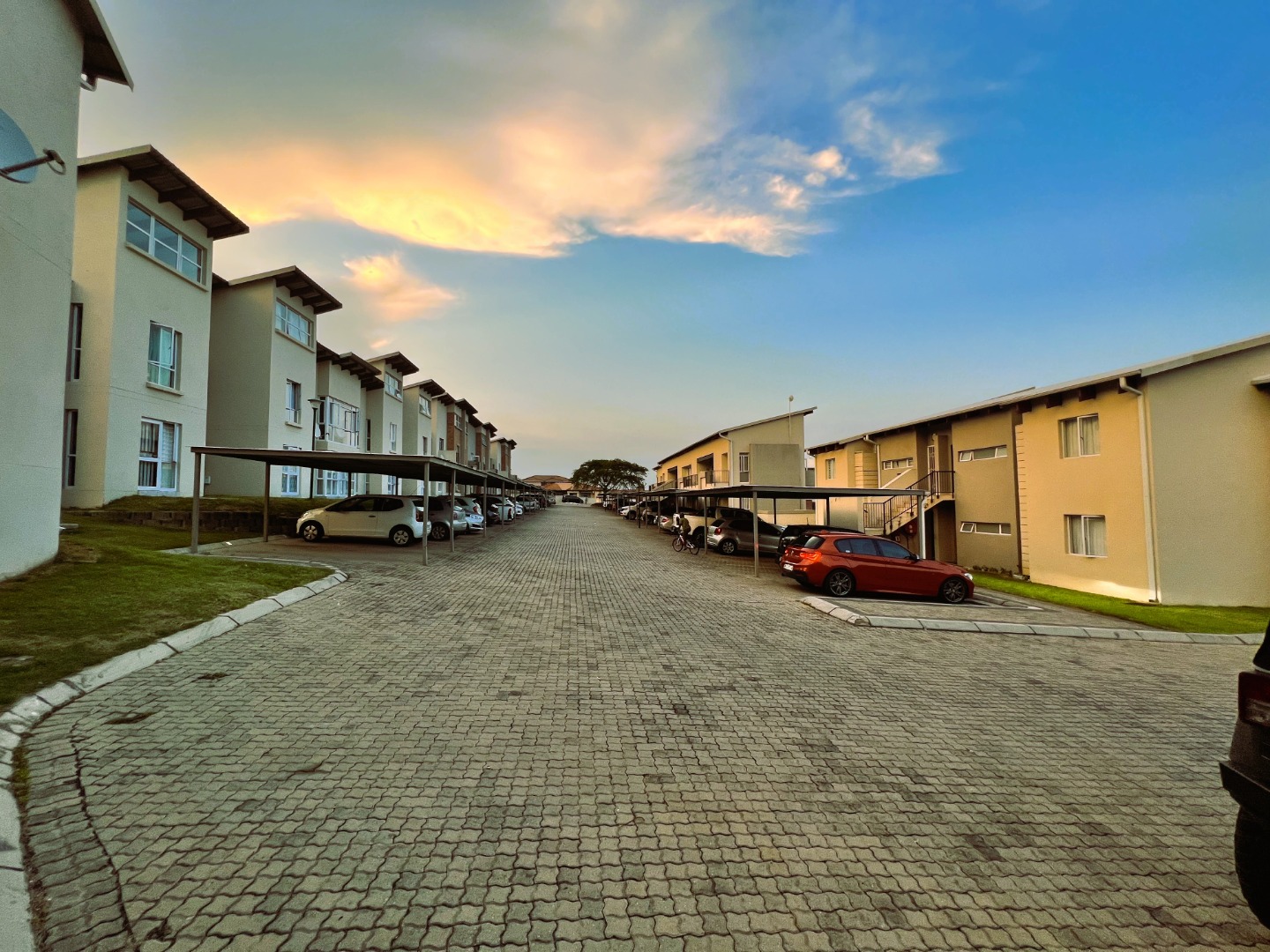 A notable feature of this apartment is the inclusion of a balcony, providing residents with a private outdoor retreat. From here, one can enjoy scenic views of the distant mountains, adding a tranquil backdrop to urban living. The property benefits from one dedicated parking bay, ensuring secure and convenient vehicle storage within the complex. The paved areas throughout the development contribute to its neat and organised appearance.