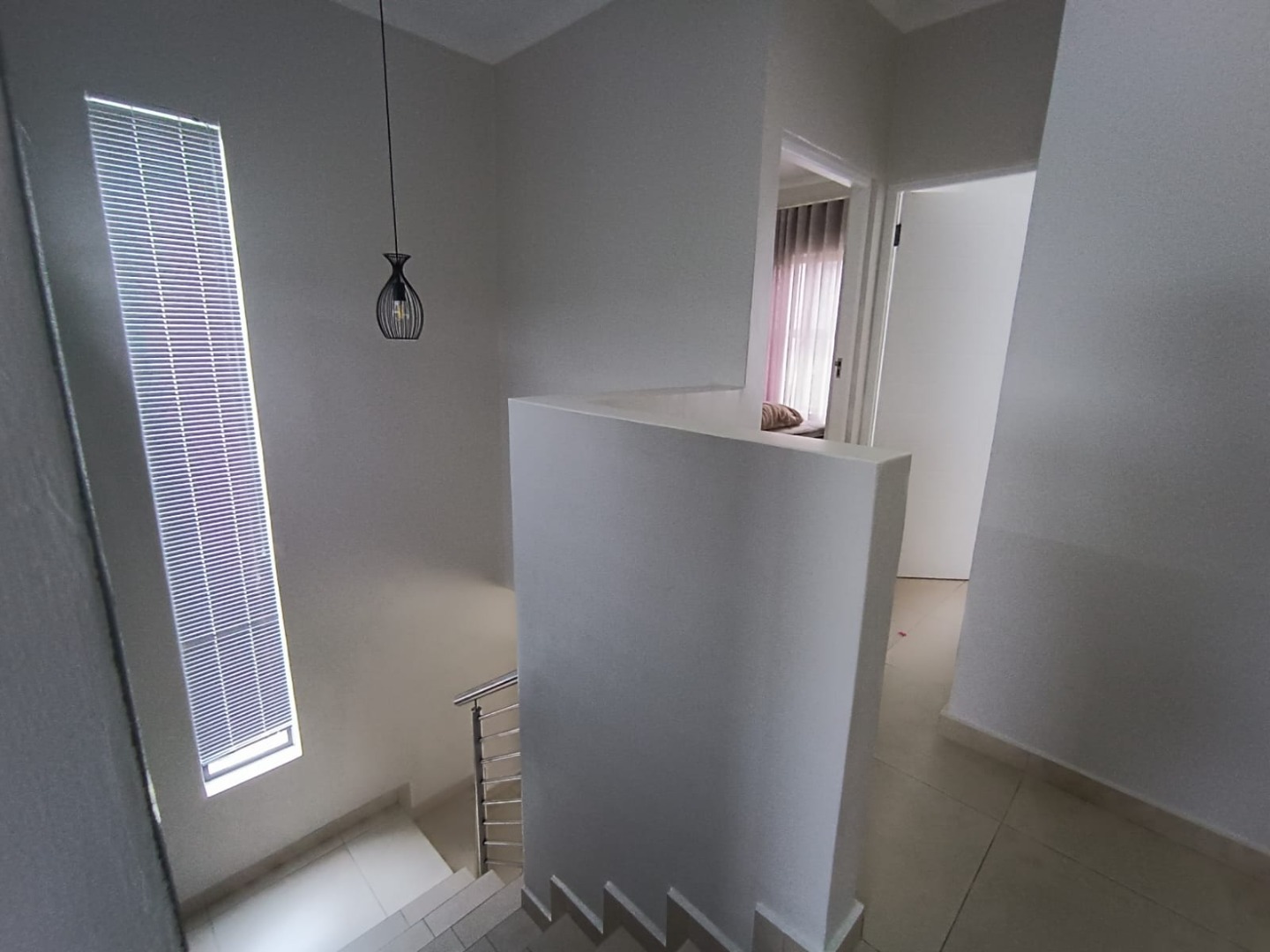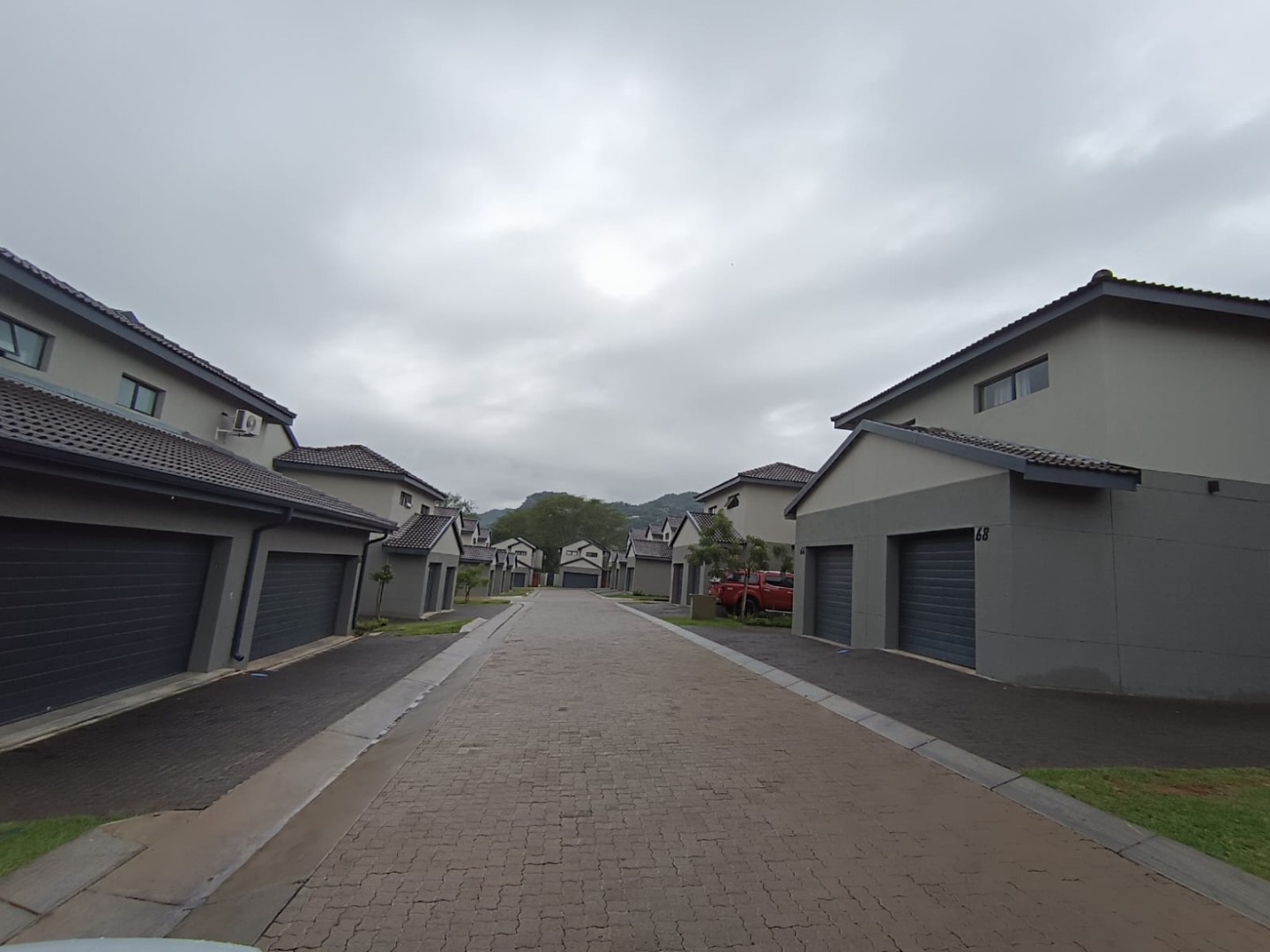 Discover an exquisite modern townhouse nestled within a prestigious complex in Nelspruit Ext 37, offering a sophisticated lifestyle in the heart of Nelspruit, South Africa. This residence immediately captivates with its contemporary architectural lines, featuring a light grey exterior complemented by striking black-framed windows and sliding doors, exuding an undeniable kerb appeal.