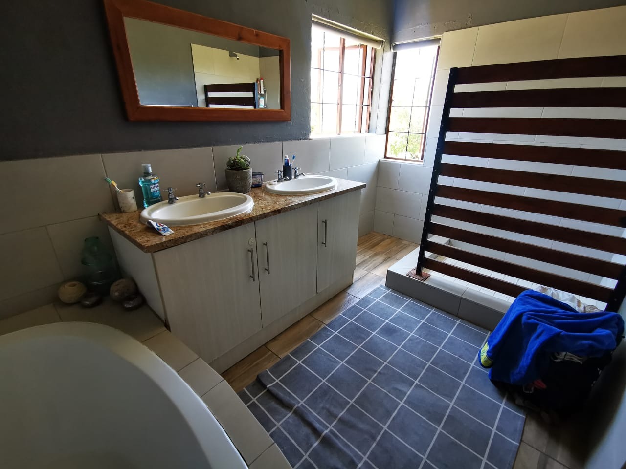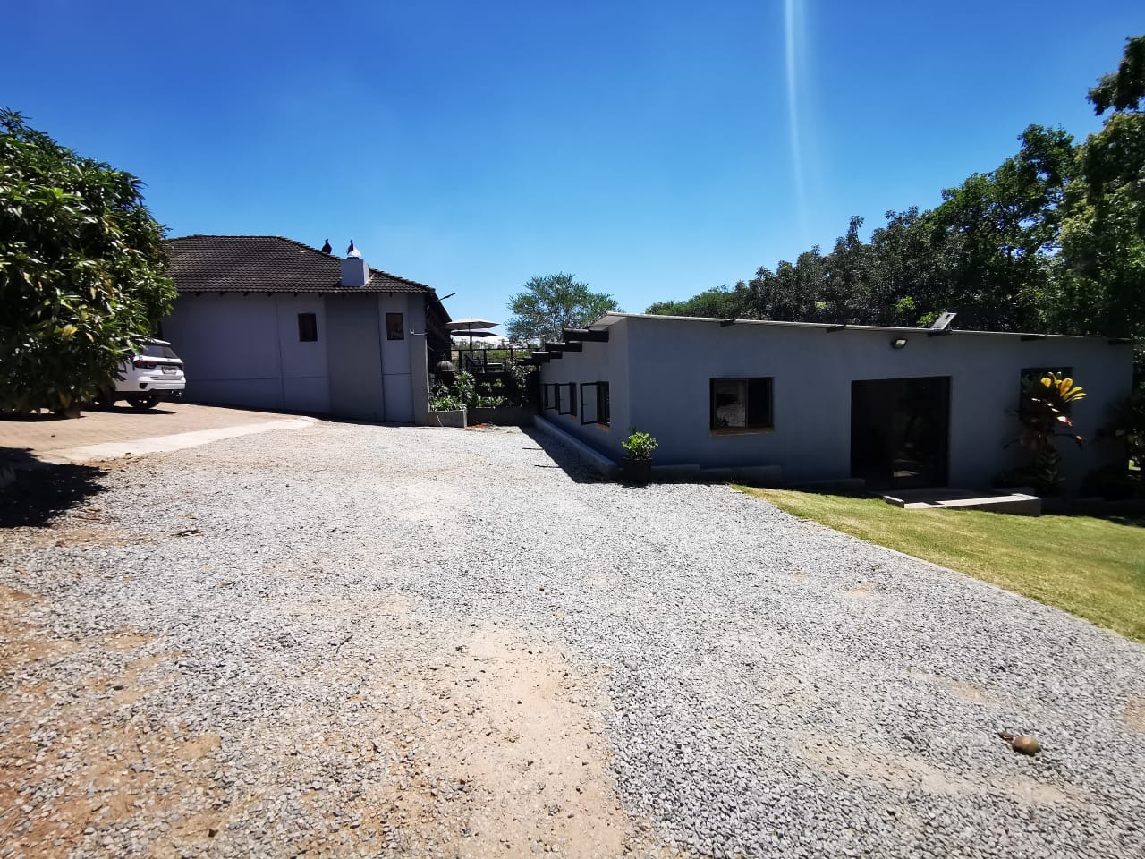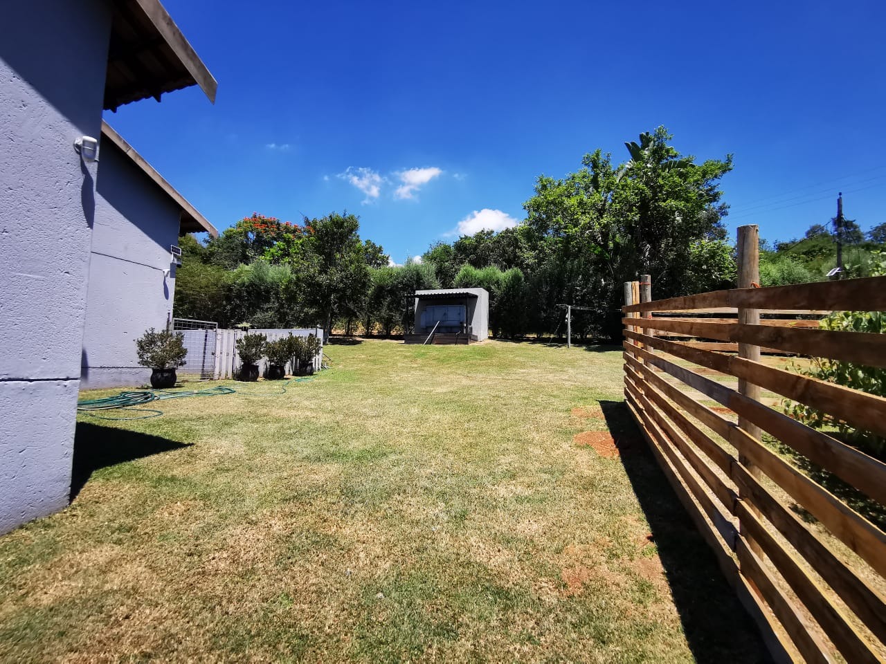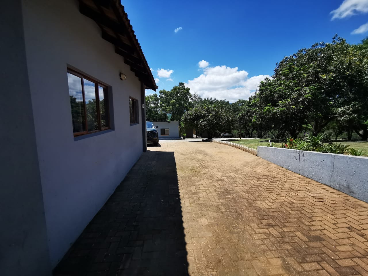 Discover an expansive lifestyle farm opportunity in Nelspruit Rural, offering a substantial 2.22-hectare erf. This property presents a unique blend of spacious living and versatile functionality, set amidst mature trees and a serene environment. The main residence, complemented by additional structures, features a welcoming grey/blue exterior with terracotta-colored roof tiles, exuding a classic charm.