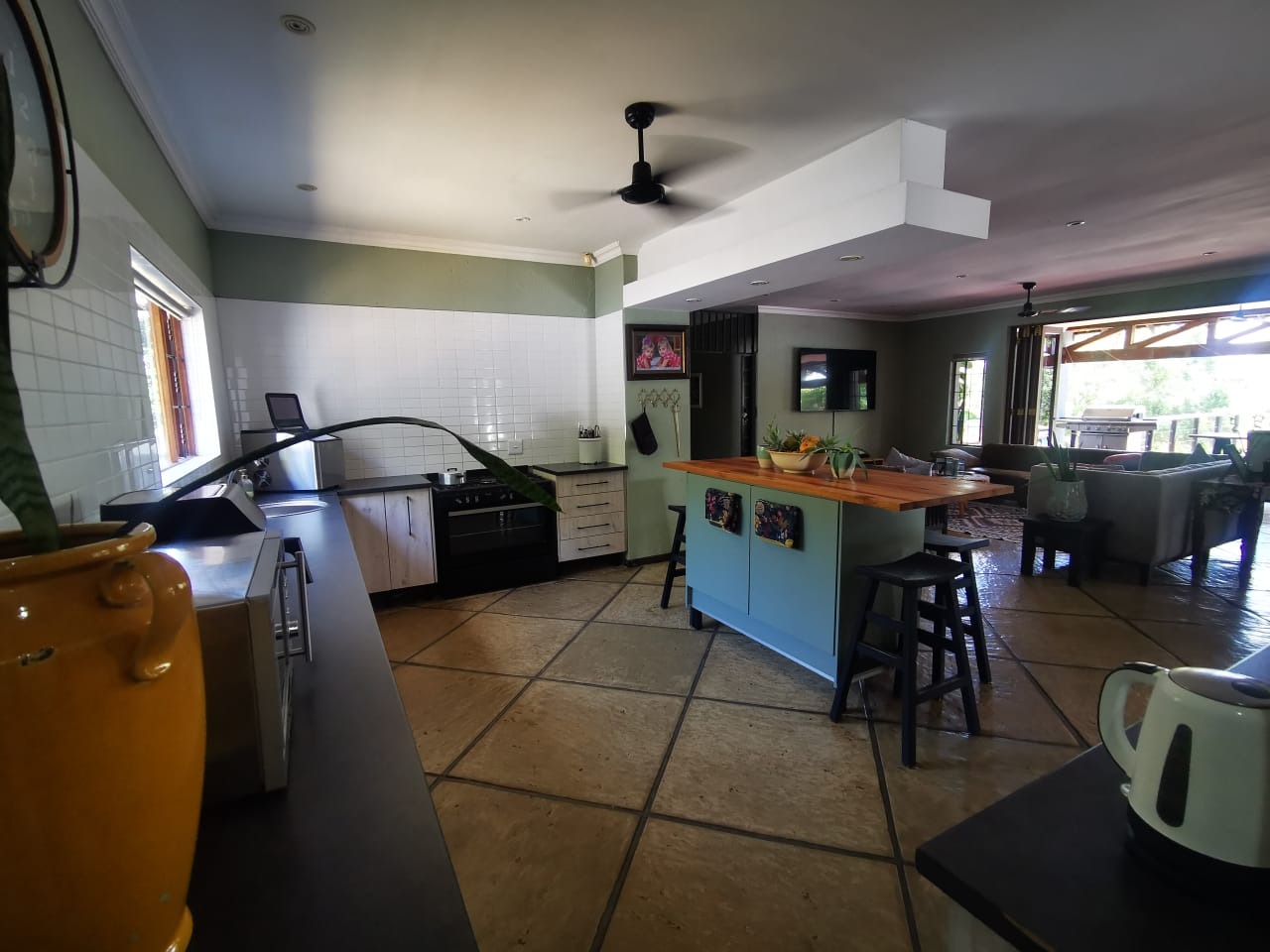 Inside, the property boasts an impressive3-bed, 2 Air B and B, 3 offices and five bathrooms, including three en-suite facilities and a convenient guest toilet, ensuring ample accommodation for a large family or multiple occupants. The layout includes three well-appointed kitchens, a dedicated dining room, a comfortable lounge, and an additional family TV room, providing diverse living spaces. An open-plan design enhances the flow, while a pantry and study add to the home's practicality. Air conditioning is installed for comfort.