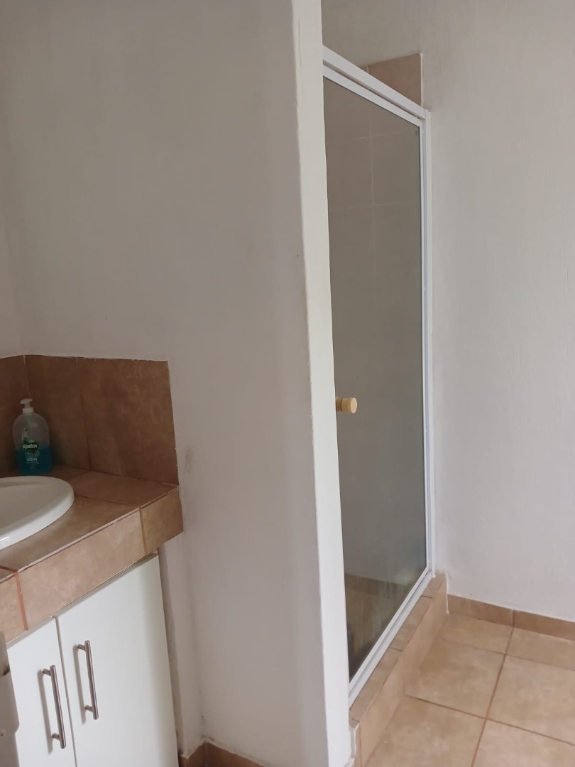 This residence offers three comfortable bedrooms, each featuring extensive built-in wardrobes for optimal storage. There are two bathrooms, with one being an ensuite, plus an additional guest toilet for convenience. The bathrooms are functional, featuring modern glass shower enclosures and practical tiled surfaces.