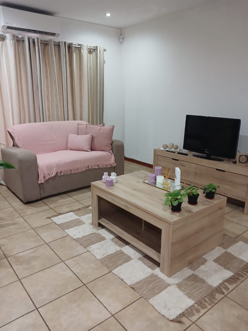 Discover this modern family home situated in the desirable suburban complex of Riverside Park, Nelspruit. The property boasts a contemporary architectural style with clean lines and modern black-framed windows, creating an inviting kerb appeal. An entrance hall leads into the open-plan living areas, featuring a comfortable lounge and dining room, enhanced by air conditioning for year-round comfort and recessed lighting. The space is designed for seamless flow and modern living.