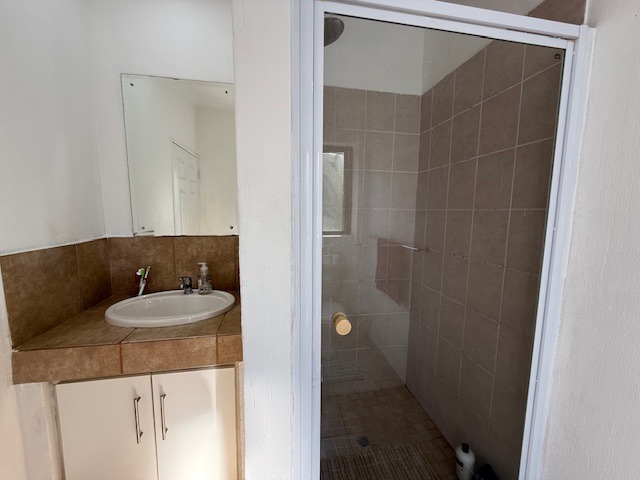 This residence offers three comfortable bedrooms, each featuring extensive built-in wardrobes for optimal storage. There are two bathrooms, with one being an ensuite, plus an additional guest toilet for convenience. The bathrooms are functional, featuring modern glass shower enclosures and practical tiled surfaces.