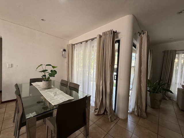 Discover this modern family home situated in the desirable suburban complex of Riverside Park, Nelspruit. The property boasts a contemporary architectural style with clean lines and modern black-framed windows, creating an inviting kerb appeal. An entrance hall leads into the open-plan living areas, featuring a comfortable lounge and dining room, enhanced by air conditioning for year-round comfort and recessed lighting. The space is designed for seamless flow and modern living.