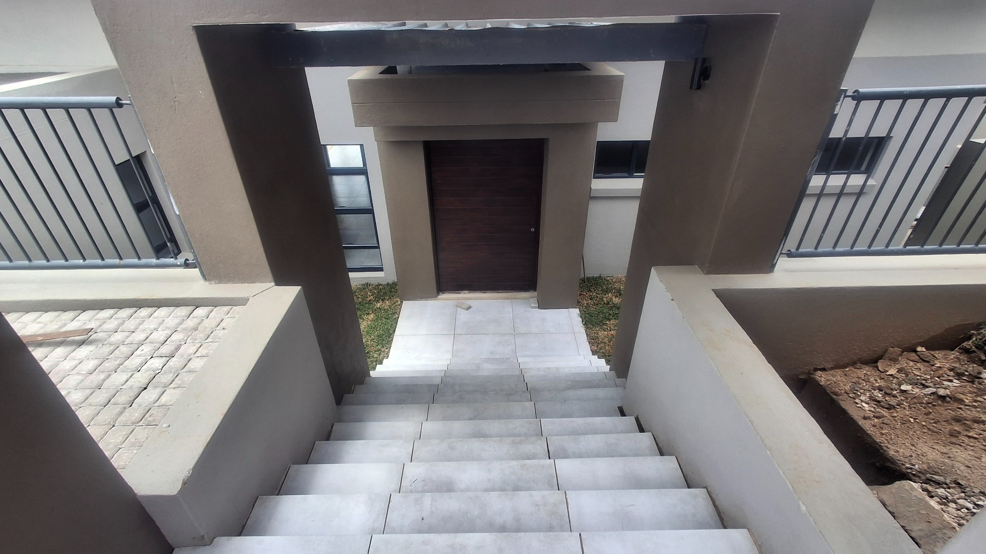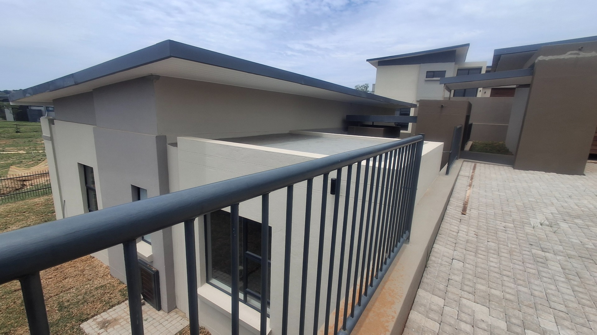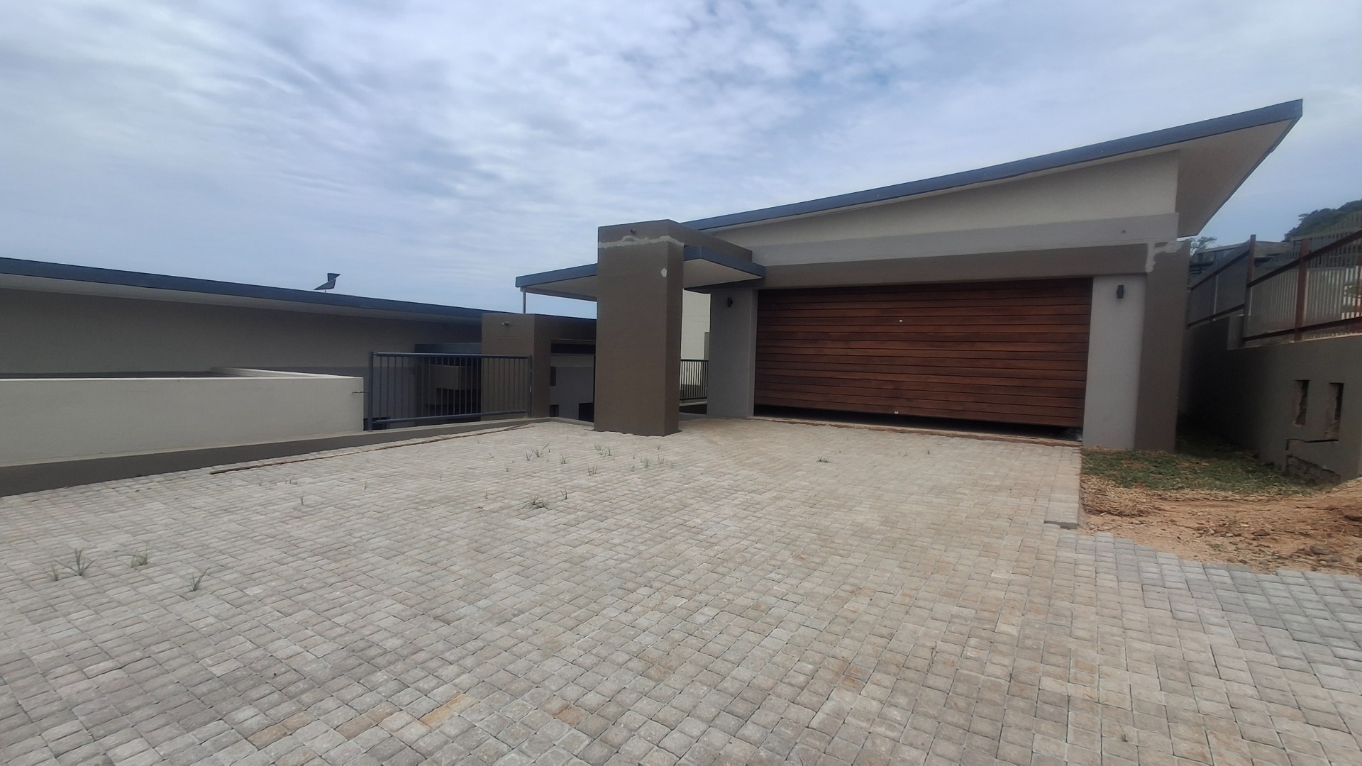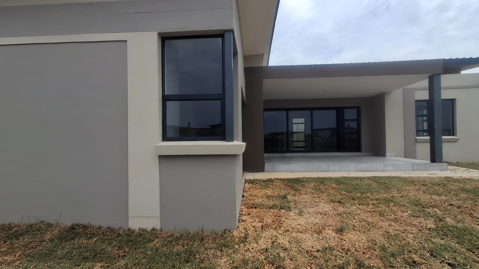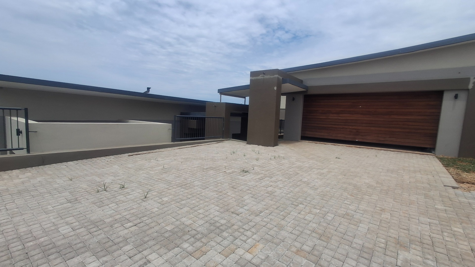 Discover contemporary living in this newly built 3-bedroom, 2-bathroom home situated within a secure estate in Sonheuwel Ext 1, Nelspruit. The property boasts a modern architectural design with clean lines, a stylish sloped roof, and a neutral colour palette, offering excellent kerb appeal. A large garage with an attractive wooden slatted door and an extensive paved driveway provide ample parking for up to four vehicles.