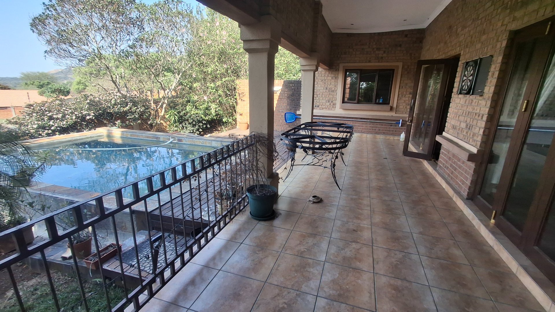 Step further into your private oasis, revealing a sparkling swimming pool embraced by an expansive wooden deck, all set against a backdrop of lush, mature gardens and breathtaking distant scenic views. The property also benefits from a versatile flatlet, offering additional accommodation or income potential. Security is paramount, with 24-hour security, an access gate, electric fencing, and a totally walled perimeter, ensuring peace of mind. Fibre connectivity is also available, catering to modern demands.