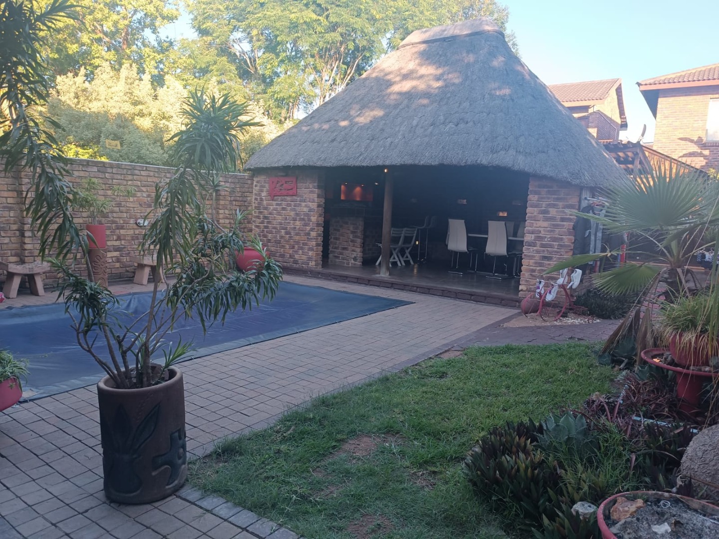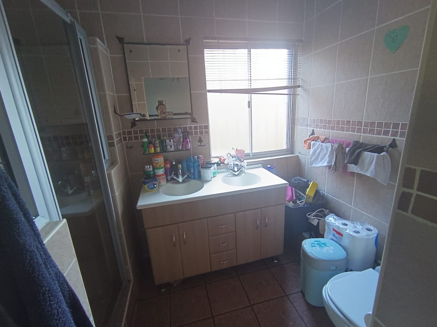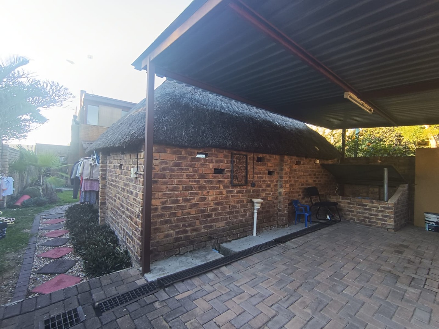 This home offers two cozy bedrooms and two bathrooms, including one en-suite for a bit of extra privacy. The kitchen is super practical with warm wood cabinetry, dark countertops, and tiled floors. You’ll also appreciate the separate laundry area and a convenient guest toilet. And when it comes to outdoor living, you’re in for a treat! There’s a fantastic covered patio with a built-in braai, just waiting for those weekend get-togethers. You’ll also find a covered swimming pool, a thatch-covered lapa for chilling out, and a lovely garden with paving. Plus, there’s a handy Wendy house. With two garages and two additional parking spaces, there’s plenty of room for your vehicles.