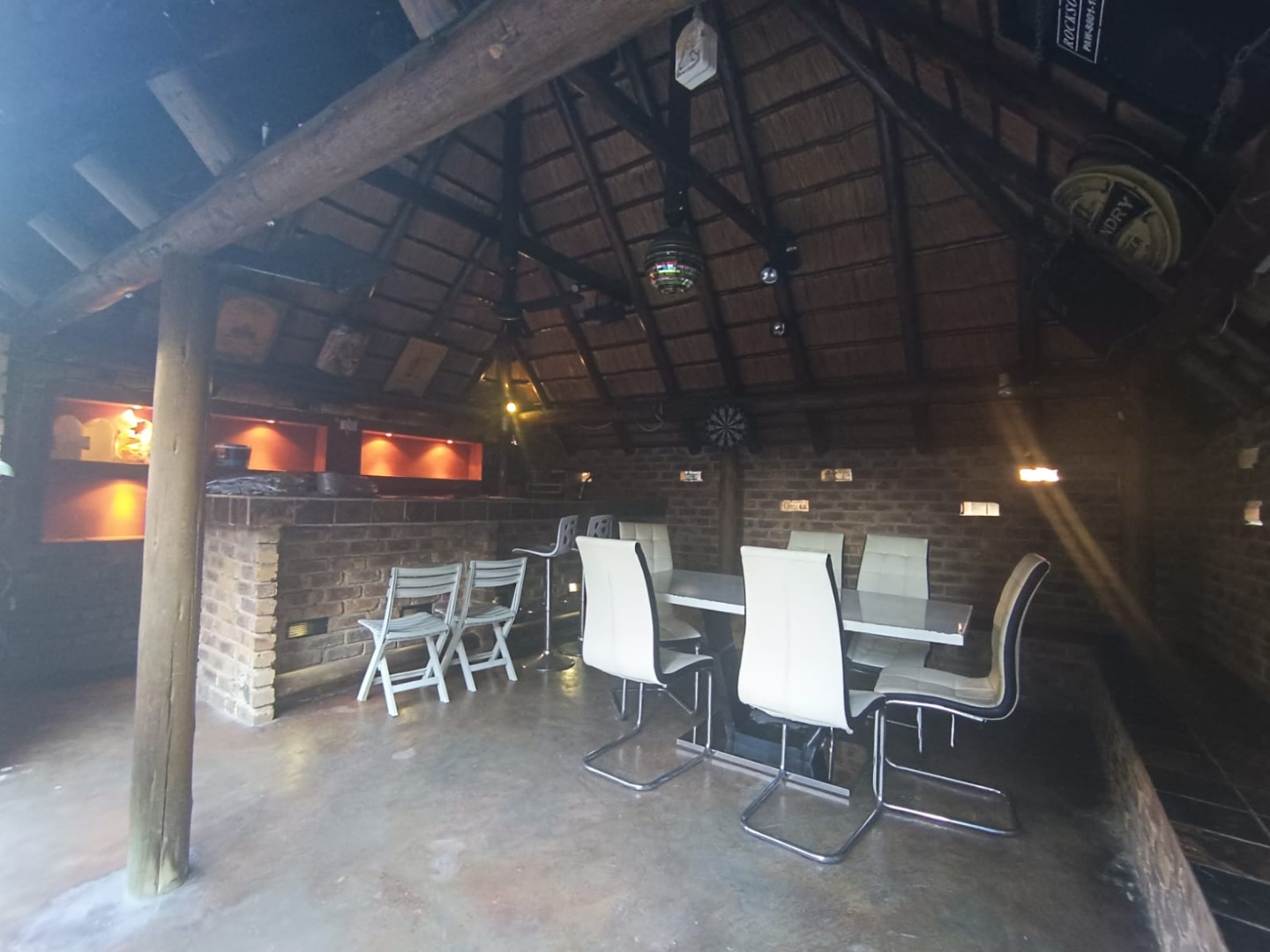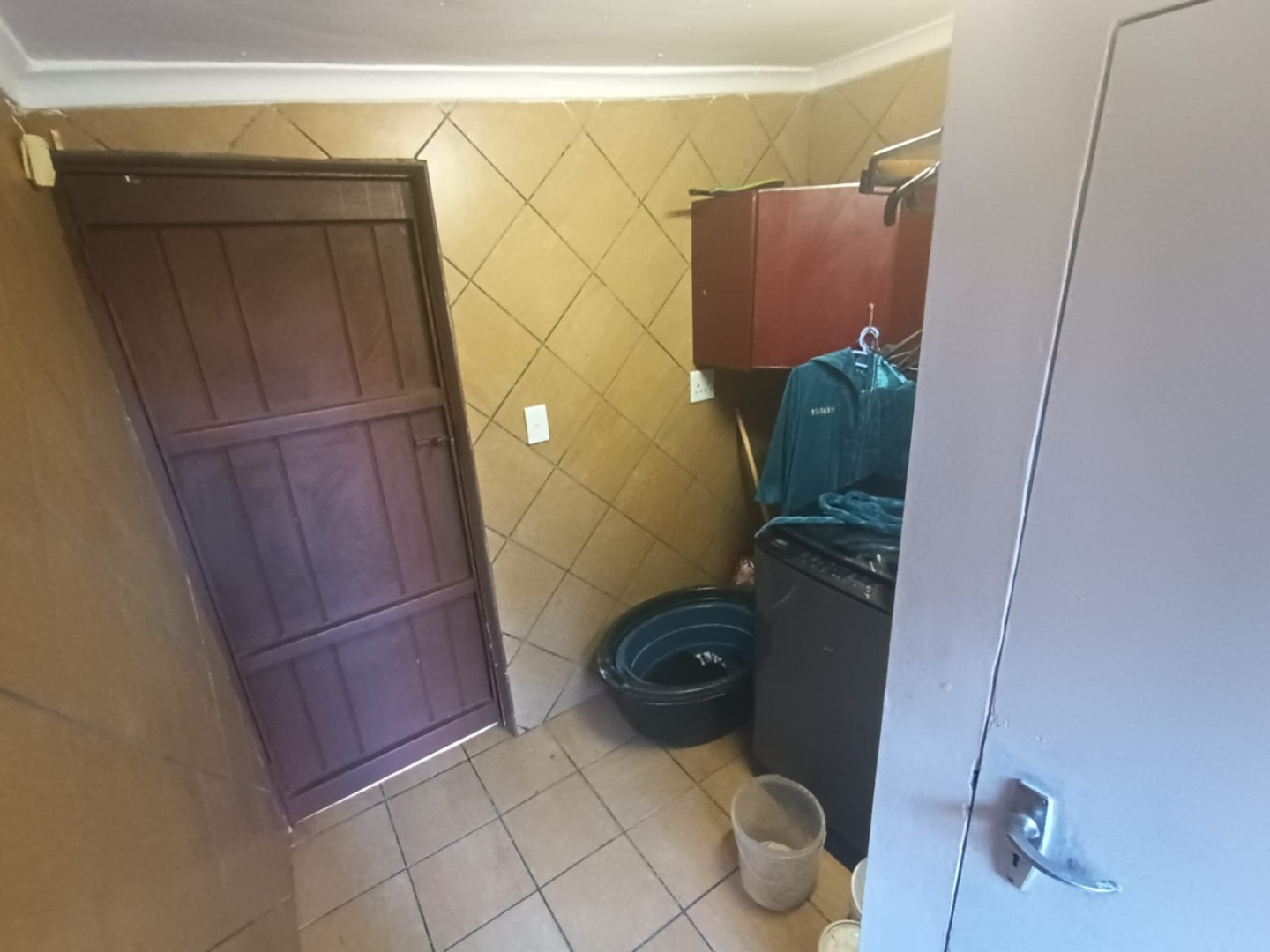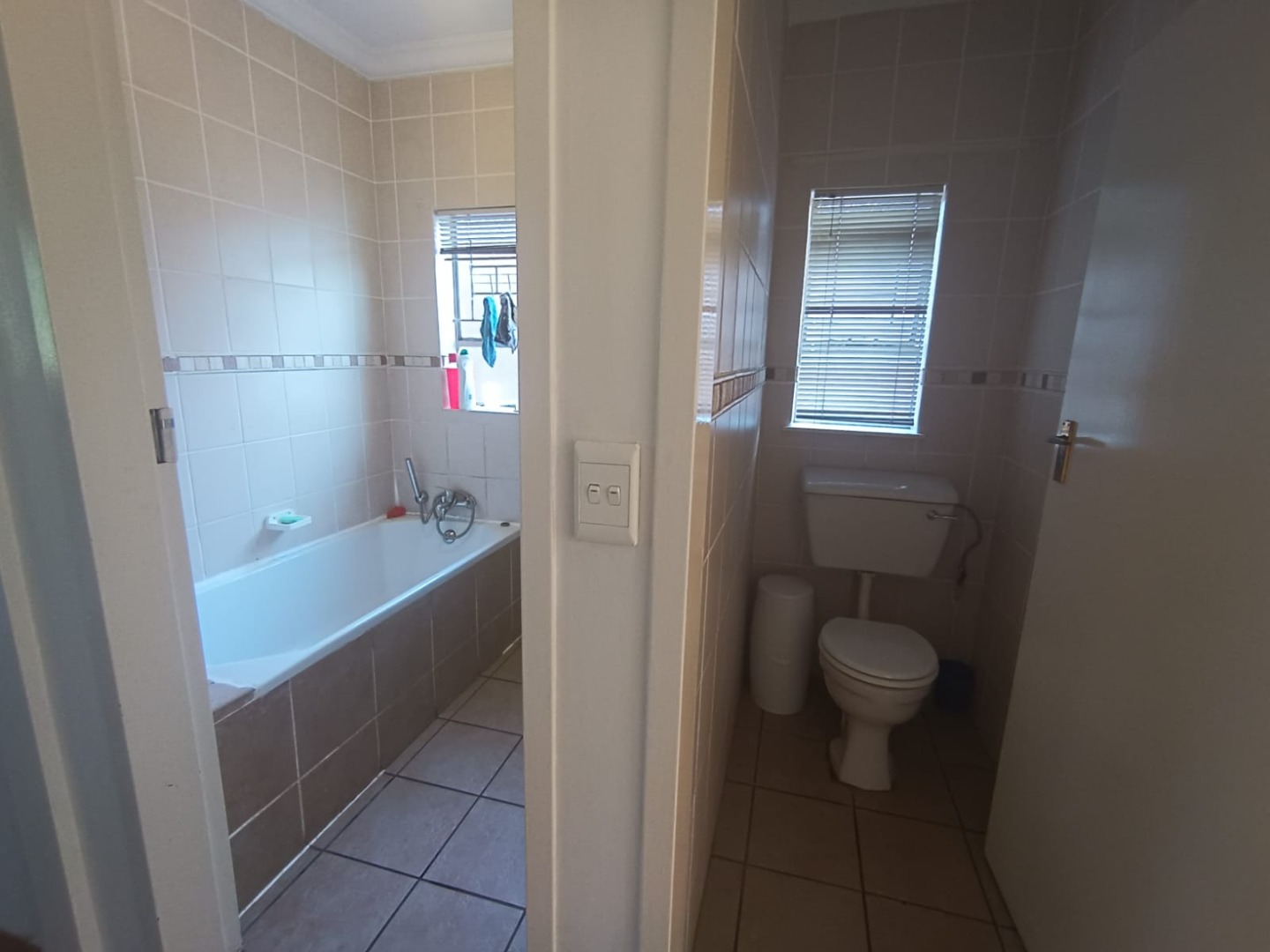 This home offers two cozy bedrooms and two bathrooms, including one en-suite for a bit of extra privacy. The kitchen is super practical with warm wood cabinetry, dark countertops, and tiled floors. You’ll also appreciate the separate laundry area and a convenient guest toilet. And when it comes to outdoor living, you’re in for a treat! There’s a fantastic covered patio with a built-in braai, just waiting for those weekend get-togethers. You’ll also find a covered swimming pool, a thatch-covered lapa for chilling out, and a lovely garden with paving. Plus, there’s a handy Wendy house. With two garages and two additional parking spaces, there’s plenty of room for your vehicles.