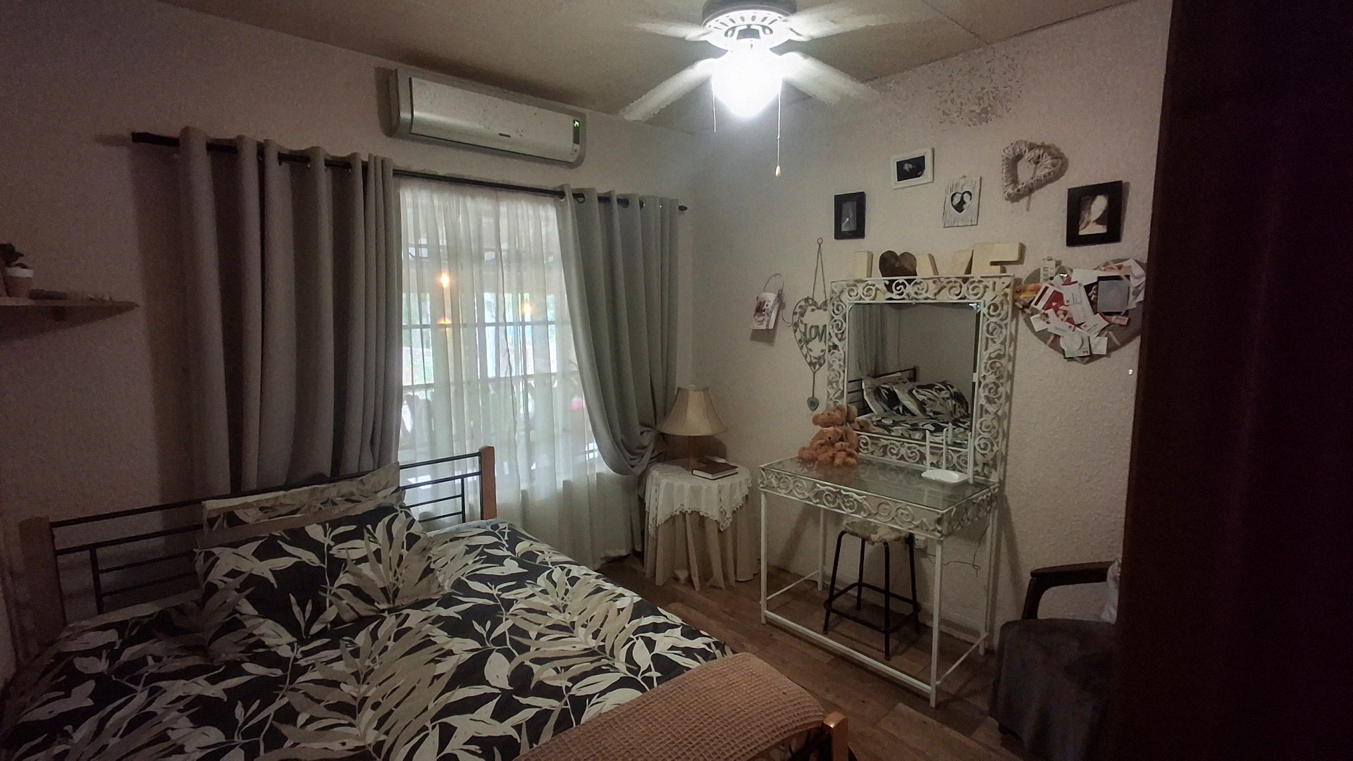 The kitchen cupboards are made from solid rosewood and the installation was done by Mi Hi with durable granite countertops. The kitchen also offers a gas hob and an extractor fan, complemented by a convenient walk-in pantry and tiled floors. The four bedrooms provide comfortable accommodation, while the two bathrooms with guest toilet cater to the needs of a busy household.