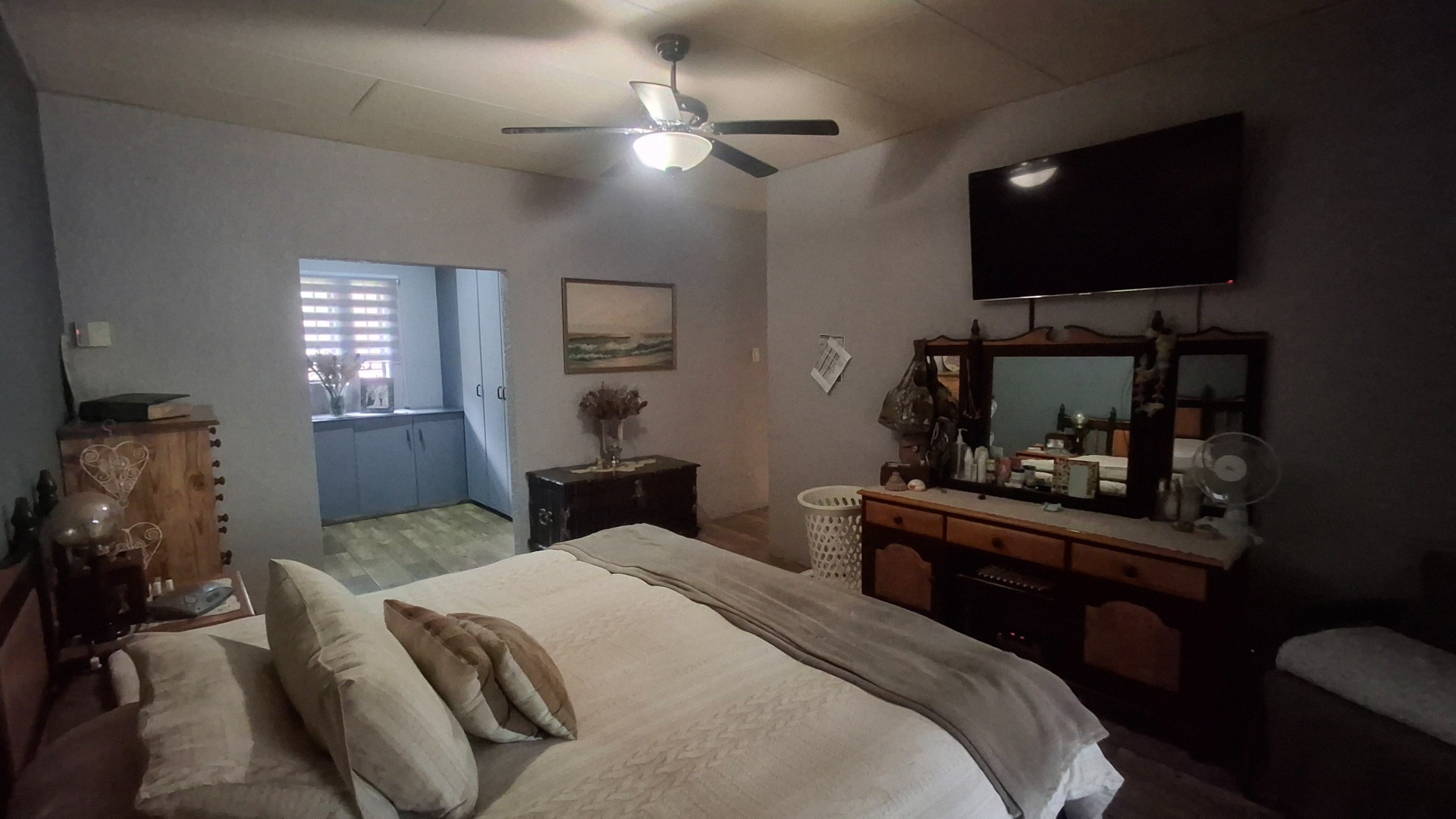 The property also offers an additional registered second dwelling consisting of 2 bedrooms and 2 bathrooms separate from the main house for parents or tenants. The flat also has a lovely open plan kitchen with granite tops and cupboards connecting to the living area. The rooms have built-in-cupboards and tiled floors. Main bedroom has an en-suite shower and basin and the second bathroom consist of bath, basin and toilet. The flat also has private braai area outside.
