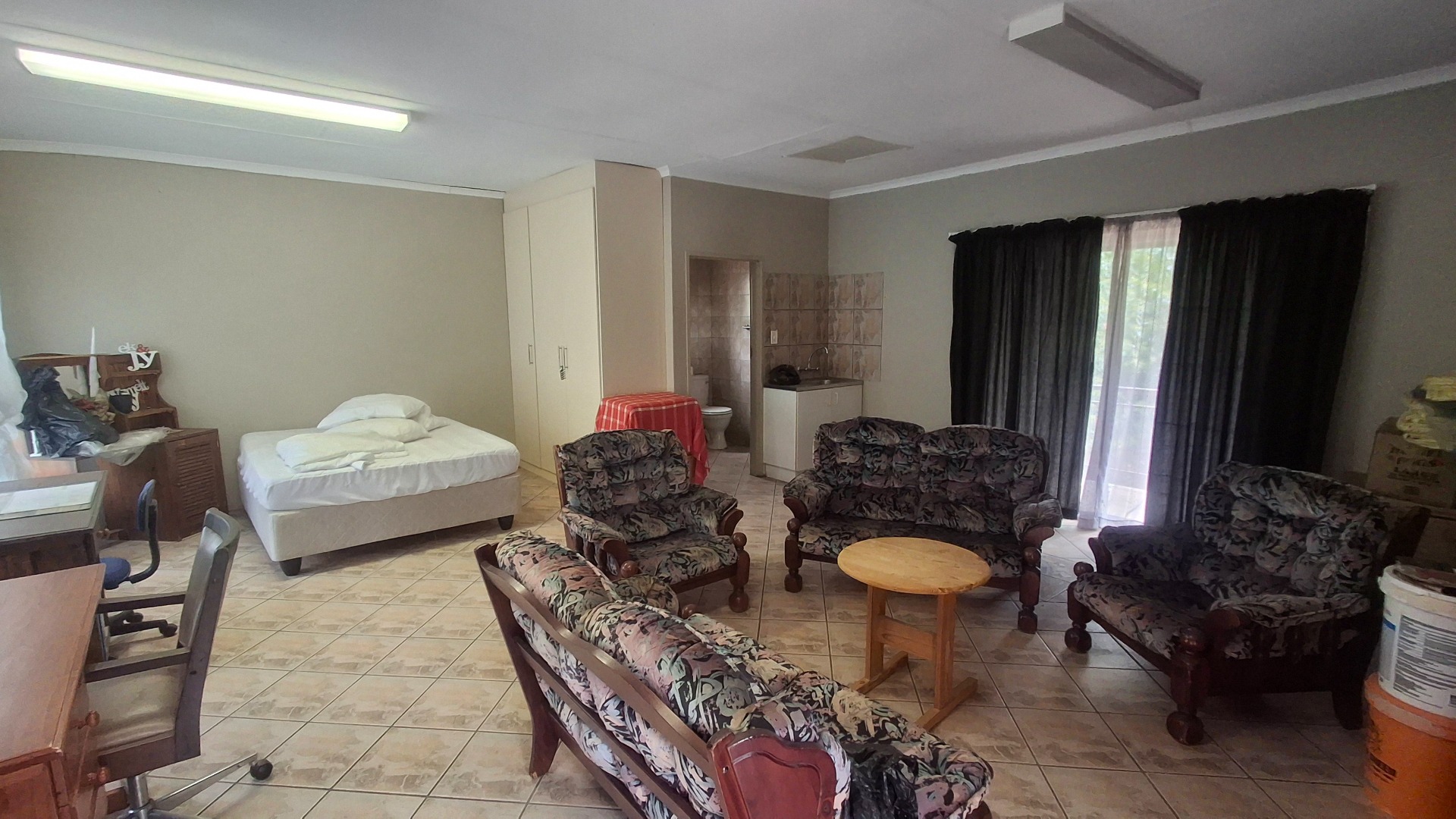 Above the garage is a bachelor flat with open plan room, living area kitchenette and private bathroom.