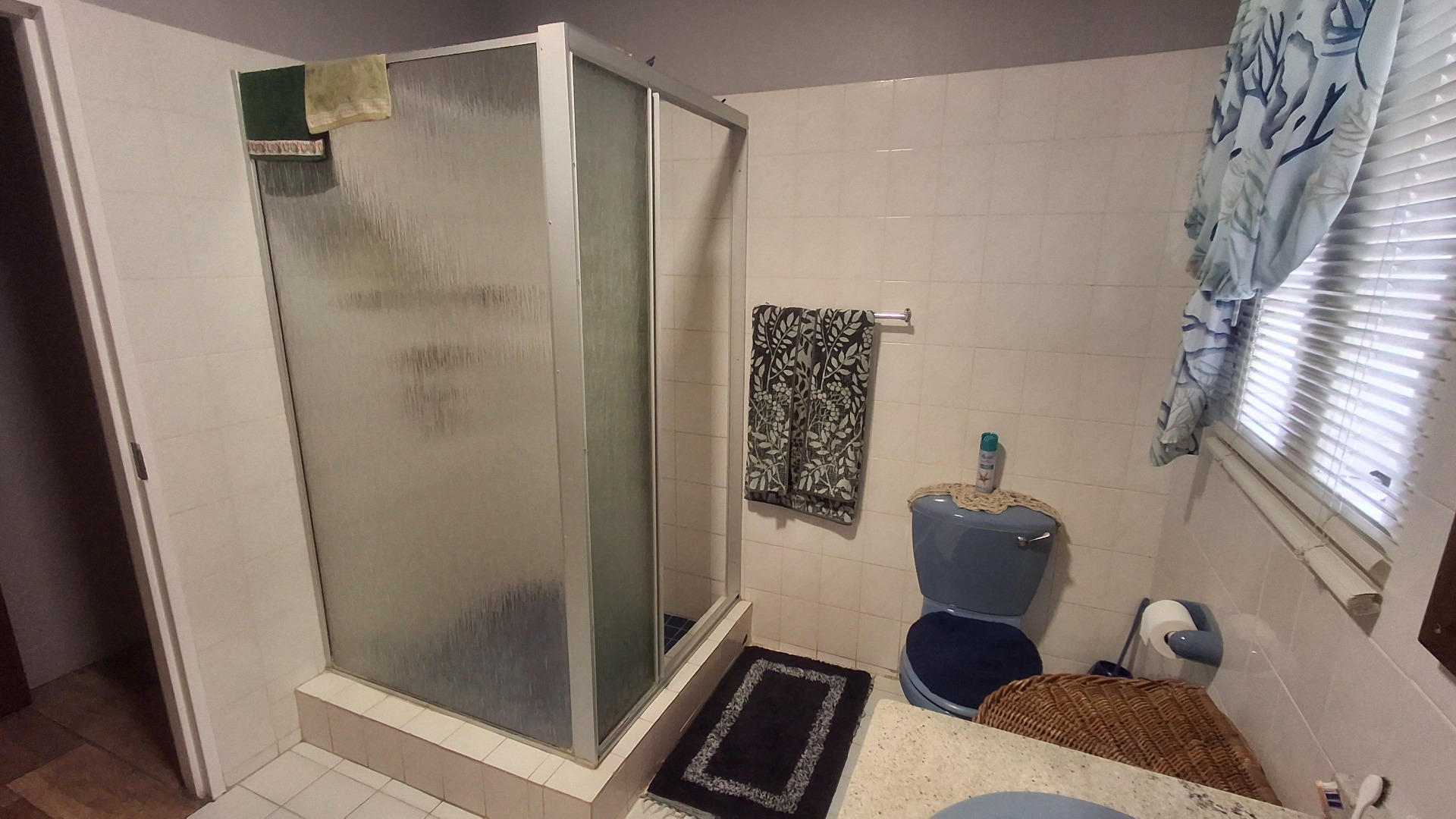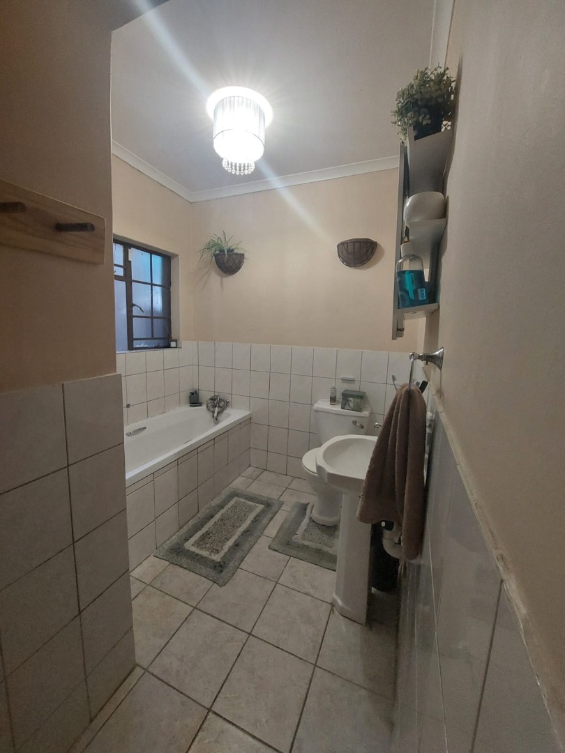 The property also offers an additional registered second dwelling consisting of 2 bedrooms and 2 bathrooms separate from the main house for parents or tenants. The flat also has a lovely open plan kitchen with granite tops and cupboards connecting to the living area. The rooms have built-in-cupboards and tiled floors. Main bedroom has an en-suite shower and basin and the second bathroom consist of bath, basin and toilet. The flat also has private braai area outside.
