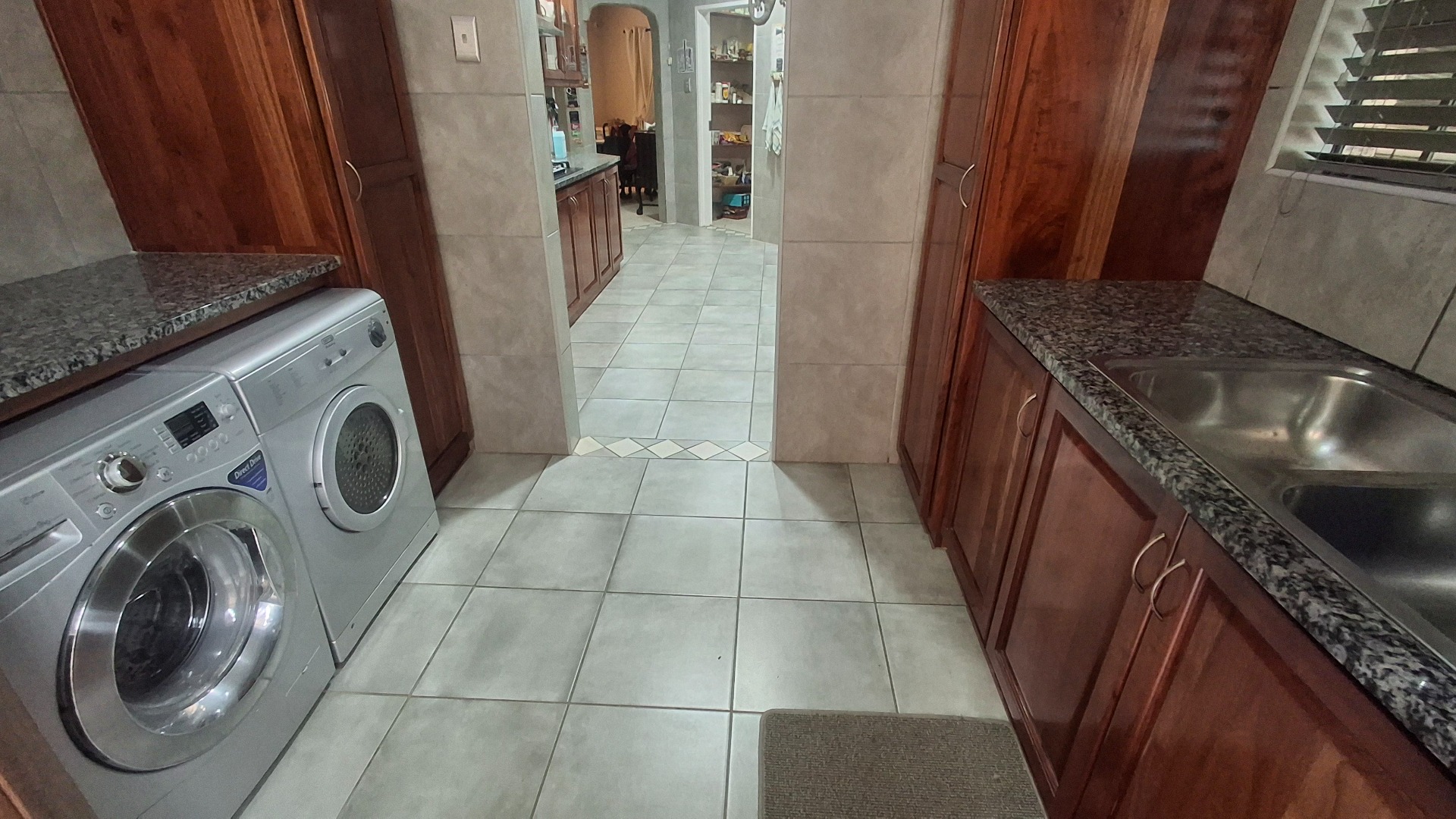 The kitchen cupboards are made from solid rosewood and the installation was done by Mi Hi with durable granite countertops. The kitchen also offers a gas hob and an extractor fan, complemented by a convenient walk-in pantry and tiled floors. The four bedrooms provide comfortable accommodation, while the two bathrooms with guest toilet cater to the needs of a busy household.