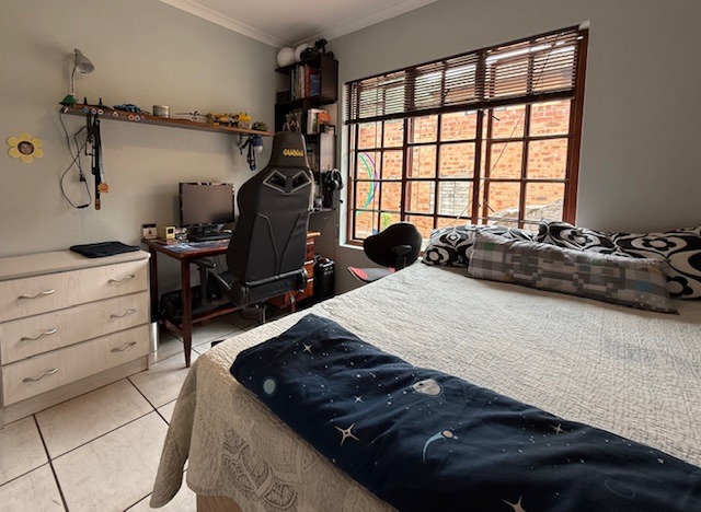 The home offers three spacious bedrooms and two well-appointed bathrooms. As you enter, a dedicated office space welcomes you, providing a perfect work-from-home environment. Ceiling fans and air conditioners throughout the property ensure year-round comfort. An inverter, batteries, and solar panels contribute to energy efficiency, making this home both sustainable and economical.