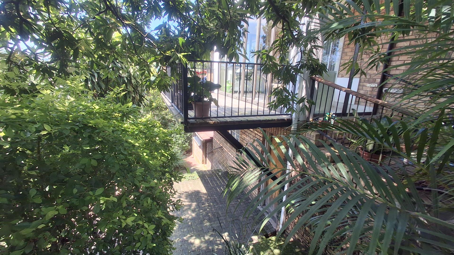 Two of the three bedrooms is complemented by an en-suite bathroom, providing privacy and convenience. The home extends its living space outdoors with an expansive enclosed sunroom/patio, complete with a built-in counter and braai area, perfect for year-round entertaining. Adjacent to this, a spacious wooden deck offers breathtaking green views of the lush surroundings, creating a serene retreat. The established garden benefits from an irrigation system, and pets are welcome.