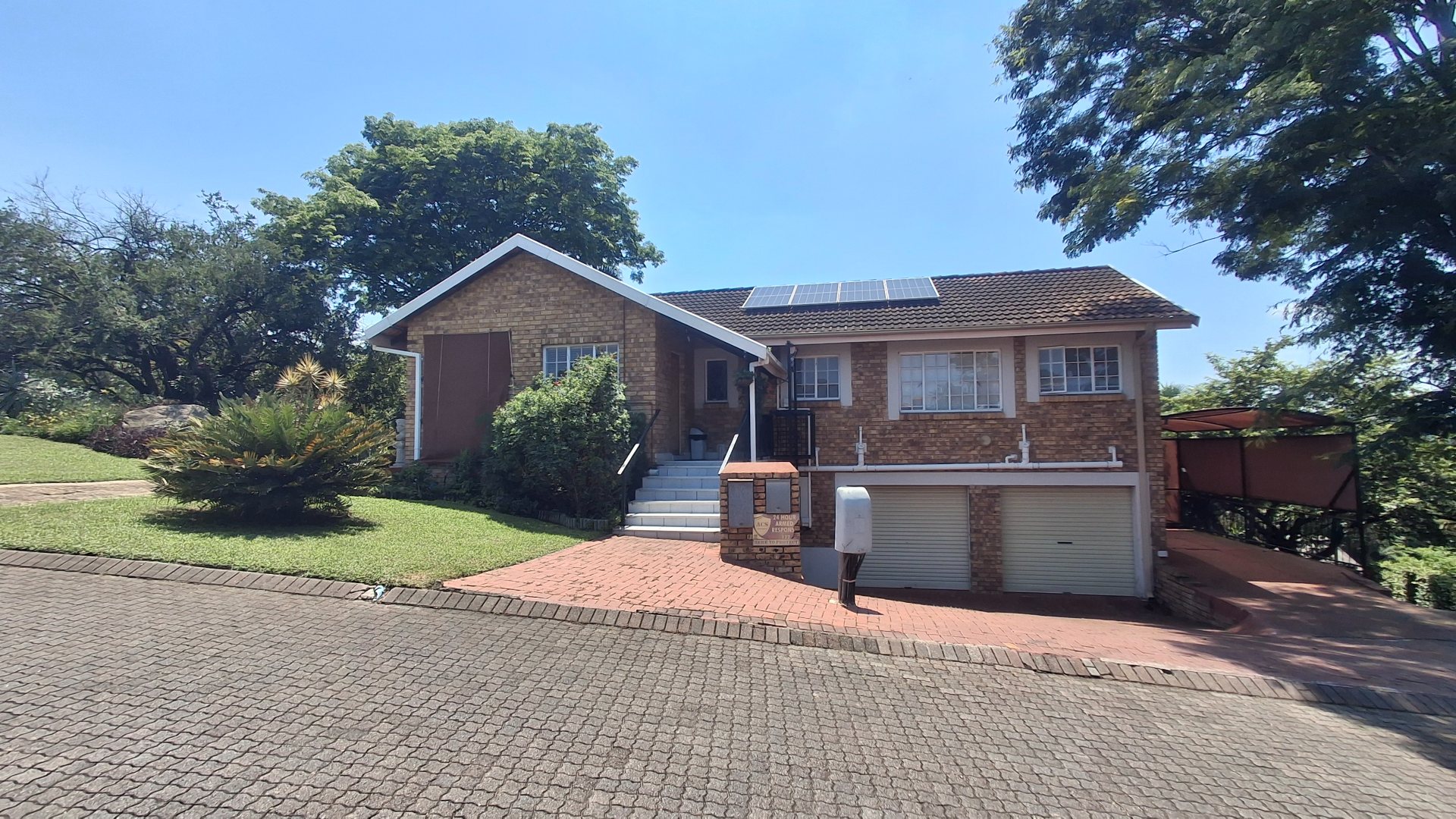 Discover this inviting 3-bedroom, 2-bathroom family home nestled within the tranquil Acacia View complex in West Acres Ext 6, Nelspruit. Boasting a floor size of 185 sqm on a 563 sqm erf, this two-story brick residence presents a well-maintained exterior with a tiled roof, mature landscaping, and a double garage providing ample parking for up to four vehicles. The property features modern energy solutions, including solar panels and a battery inverter, ensuring efficiency and reduced utility costs.