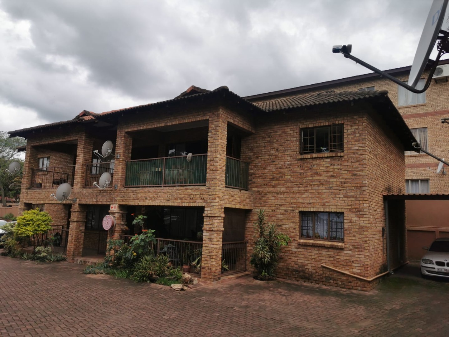 Discover comfortable complex living in this inviting 2-bedroom, 2-bathroom unit located in West Acres, Nelspruit. This 86 sqm property, featuring a durable face brick exterior, offers a practical and secure residential sale opportunity. The building presents a neat kerb appeal with its multi-story design, multiple balconies, and a paved courtyard, complemented by visible covered parking.